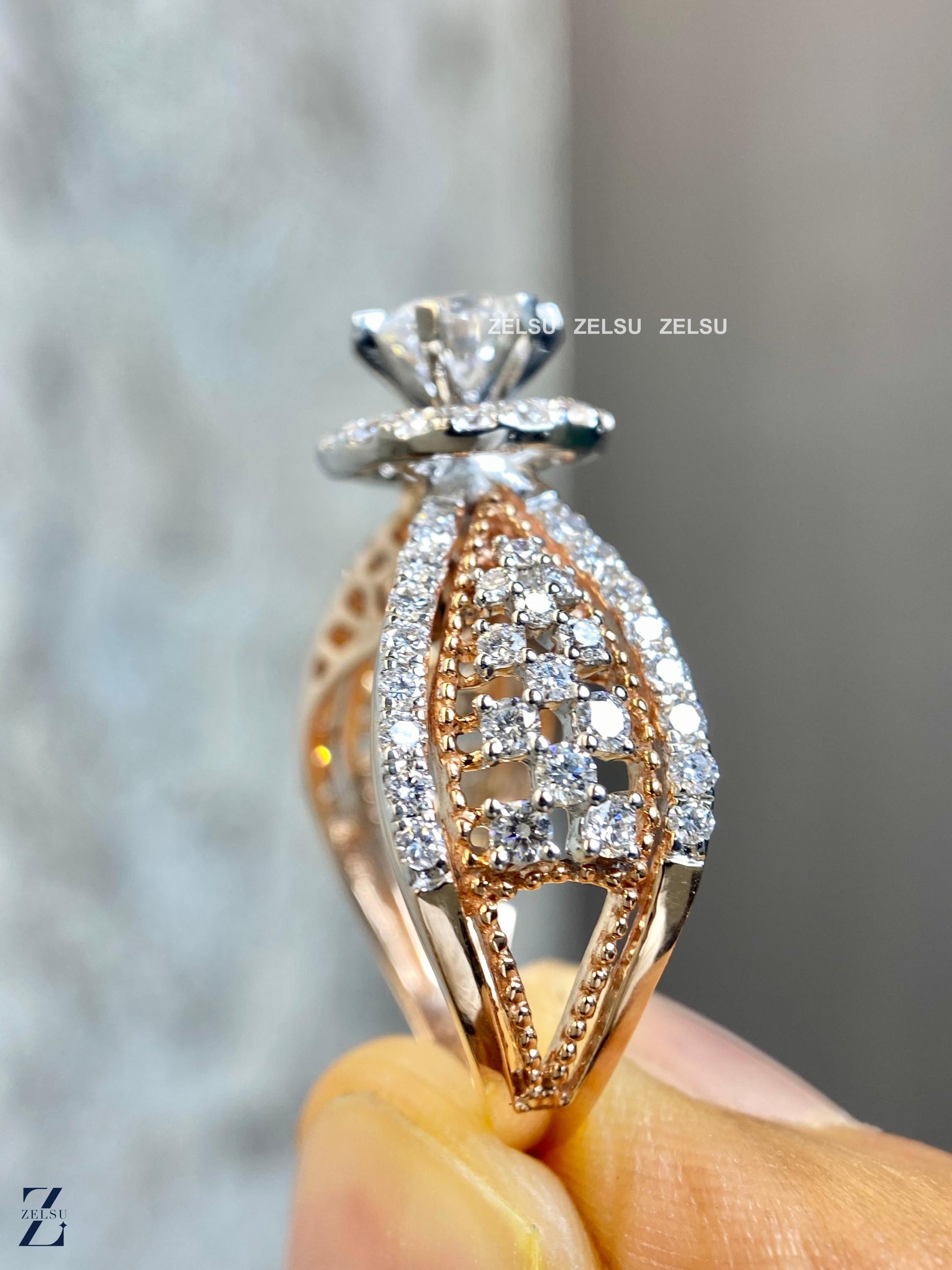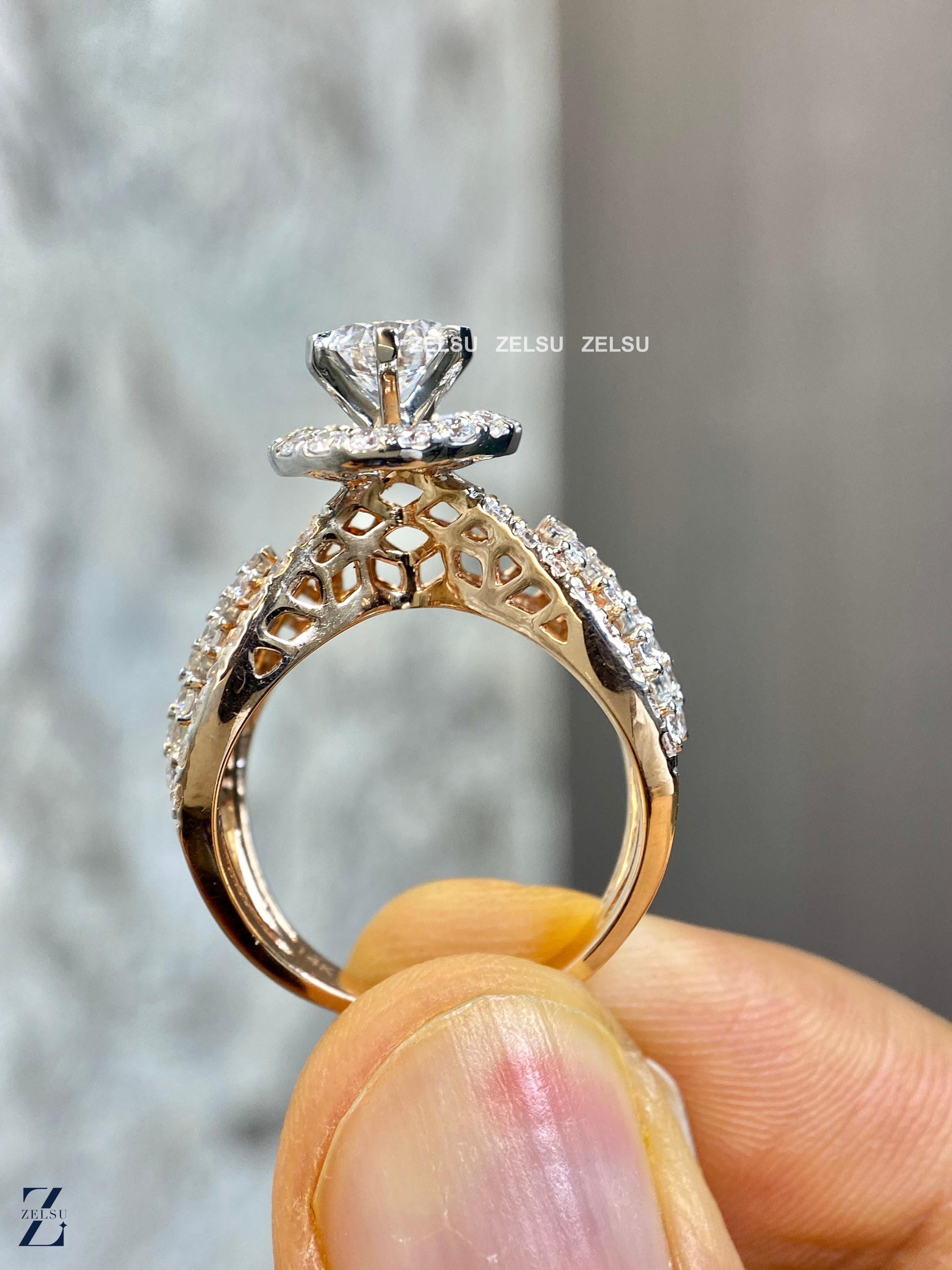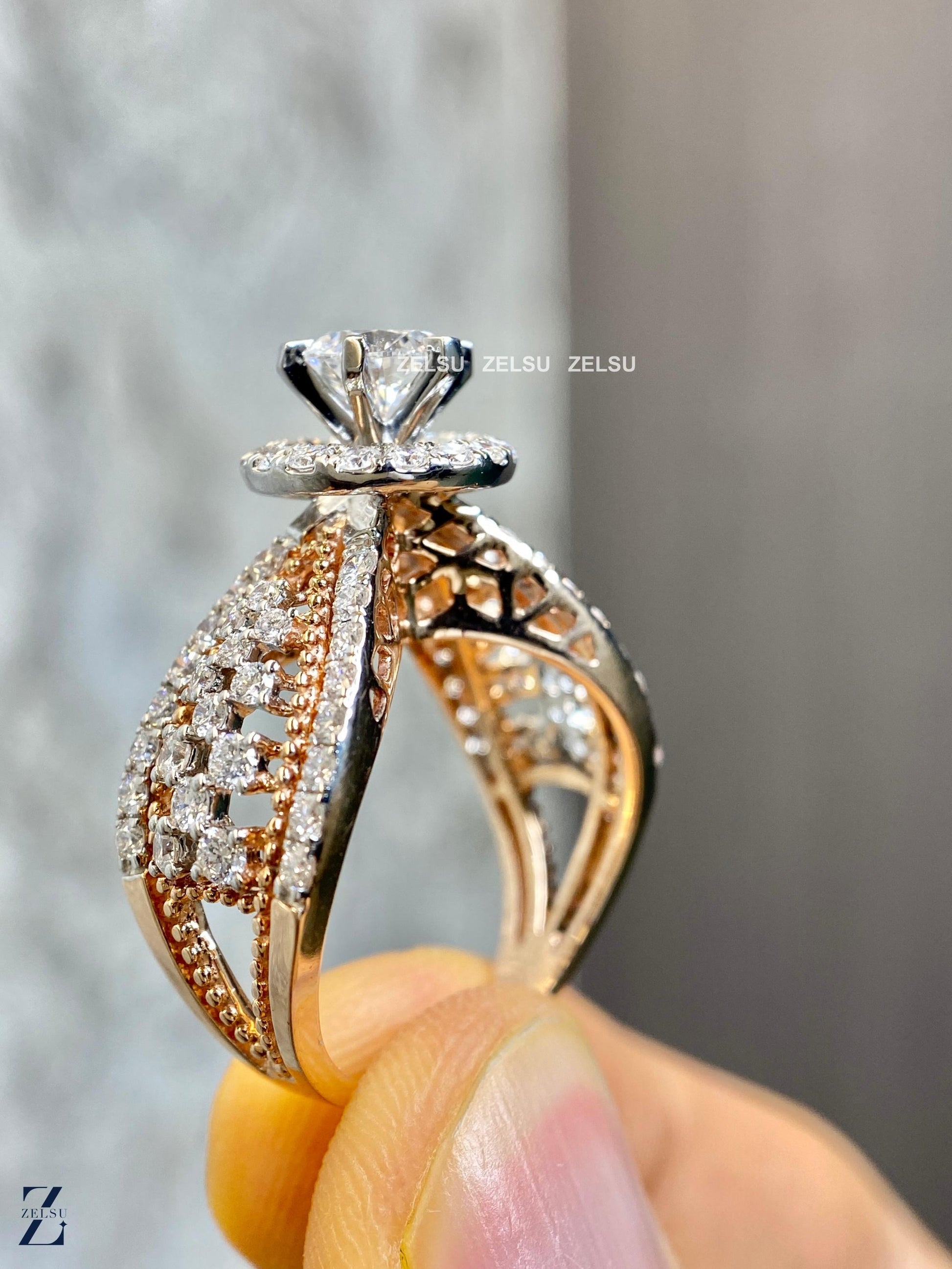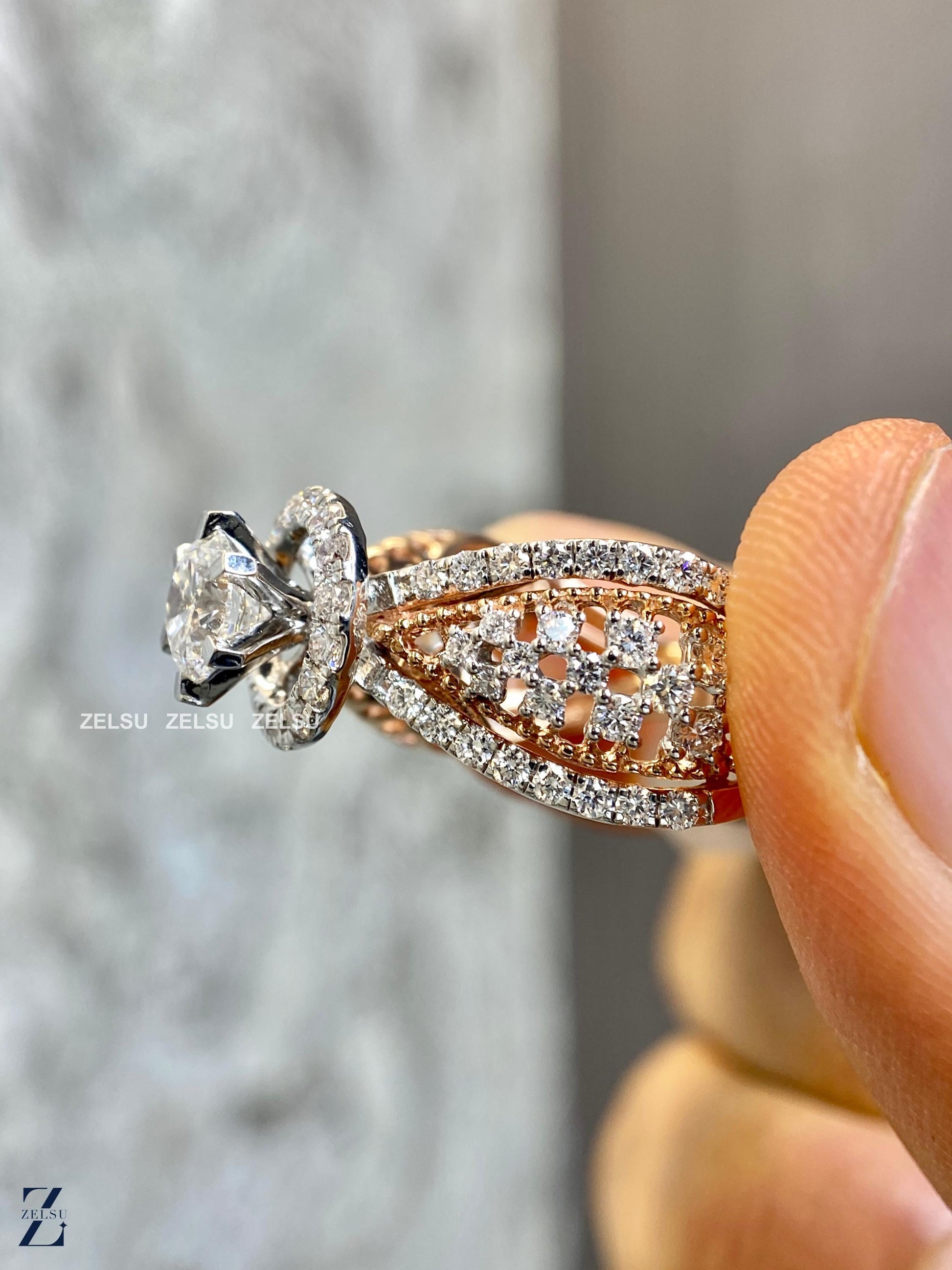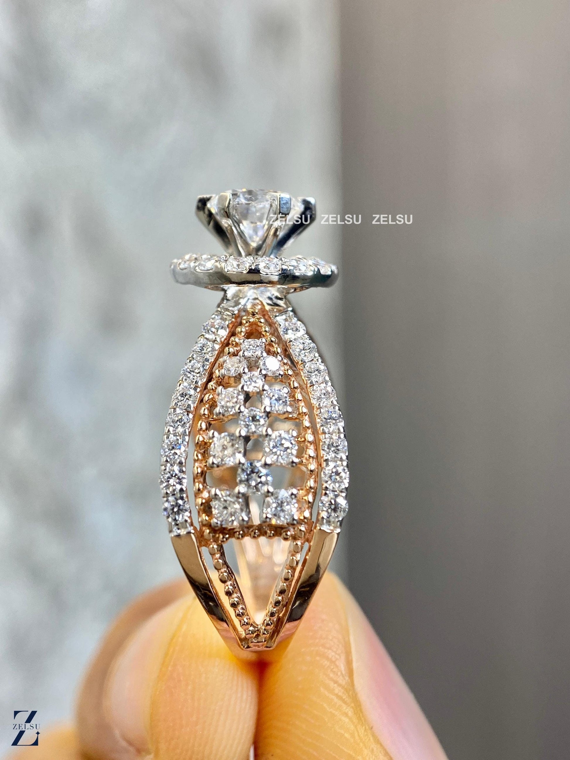 0.80 CT Art Deco Engagement Ring, Lab Grown Diamond Ring, Round Cut Wedding Ring Gift for Her, Antique Ring ,14K Rose Gold Ring, Halo Ring, Lab grown diamond, art deco ring, wedding ring, engagement ring, rose gold ring, antique ring, Halo diamond ring, round cut diamond, round cut ring, 6-prong set ring, zelsu diamond, bling ring, Lab-Grown Diamond Jewelry By Zelsu Diamond, Handmade Fine Jewelry for Women, Artisan Jewelry By Zelsu Diamond