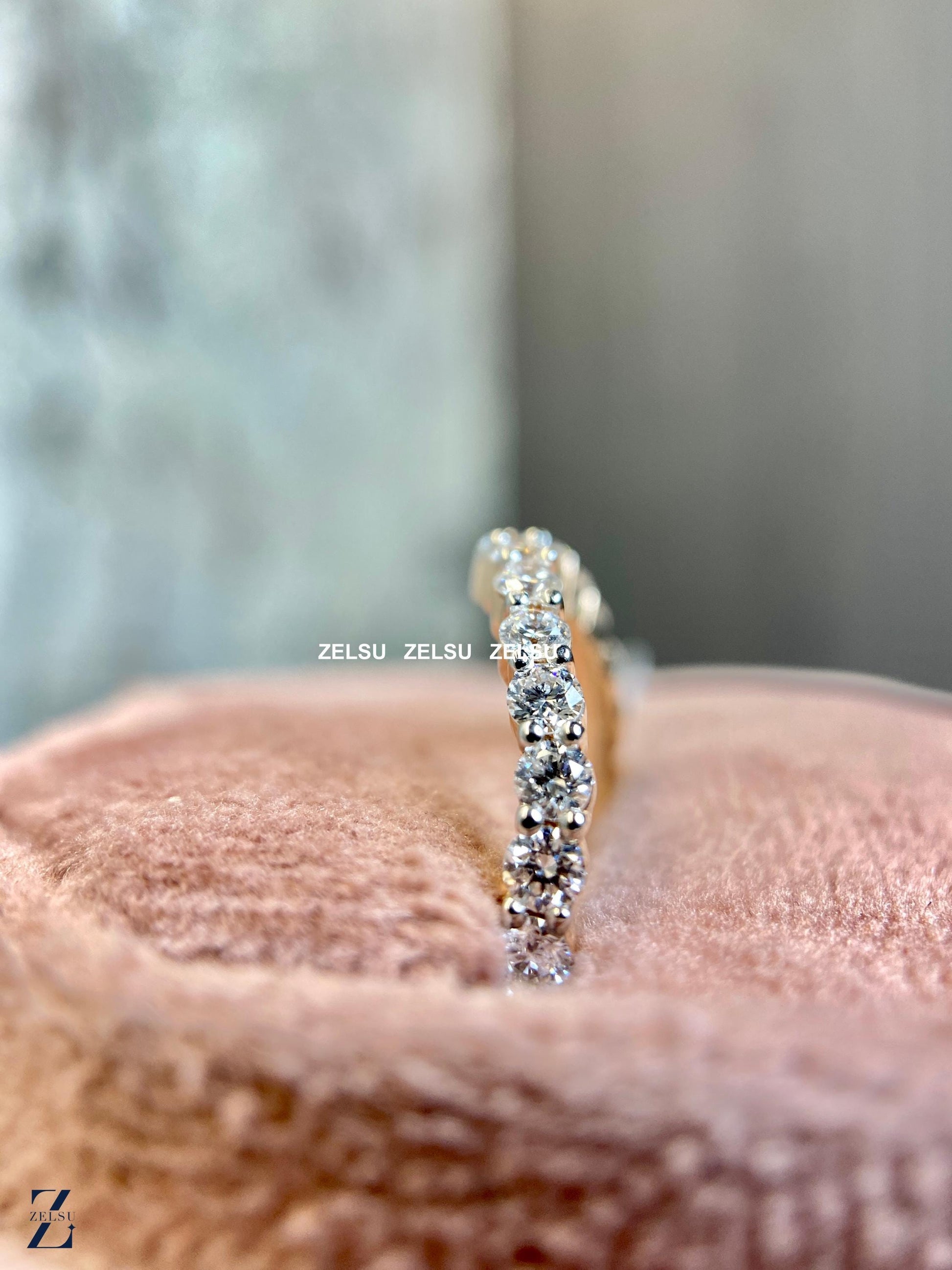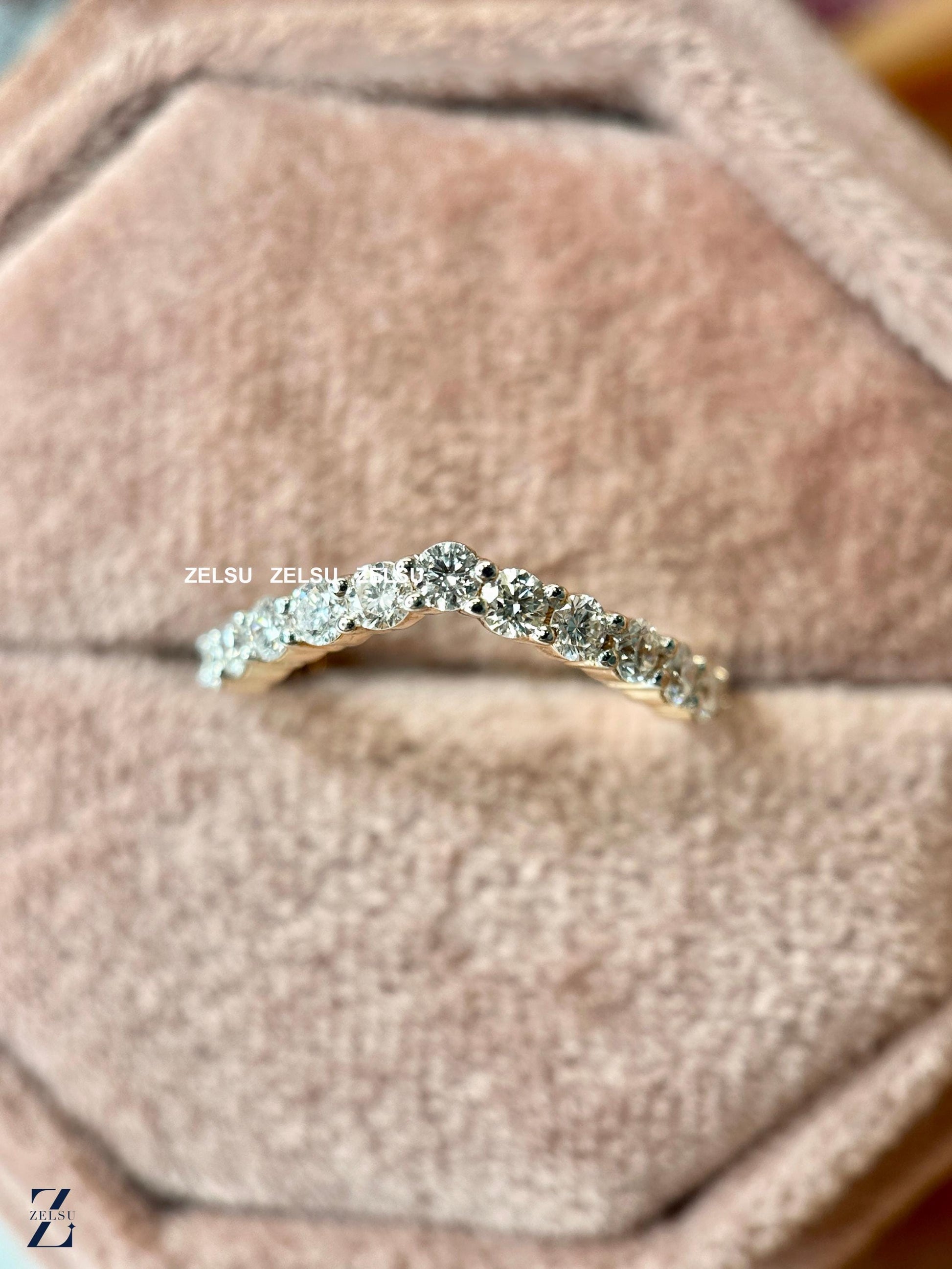 0.30 CT Round Cut Curved Wedding Band, Vintage Inspired Engagement Ring, 10K Gold Band, Full Eternity Lab Grown Band, Promise Ring, Vintage Ring, diamond ring, lab created ring, lab grown band, lab grown diamond, eternity band, round cut diamond, round cut ring, curved wedding band, zelsu diamond, promise ring, vintage lab grown, Lab-Grown Diamond Jewelry By Zelsu Diamond, Handmade Fine Jewelry for Women, Artisan Jewelry By Zelsu Diamond