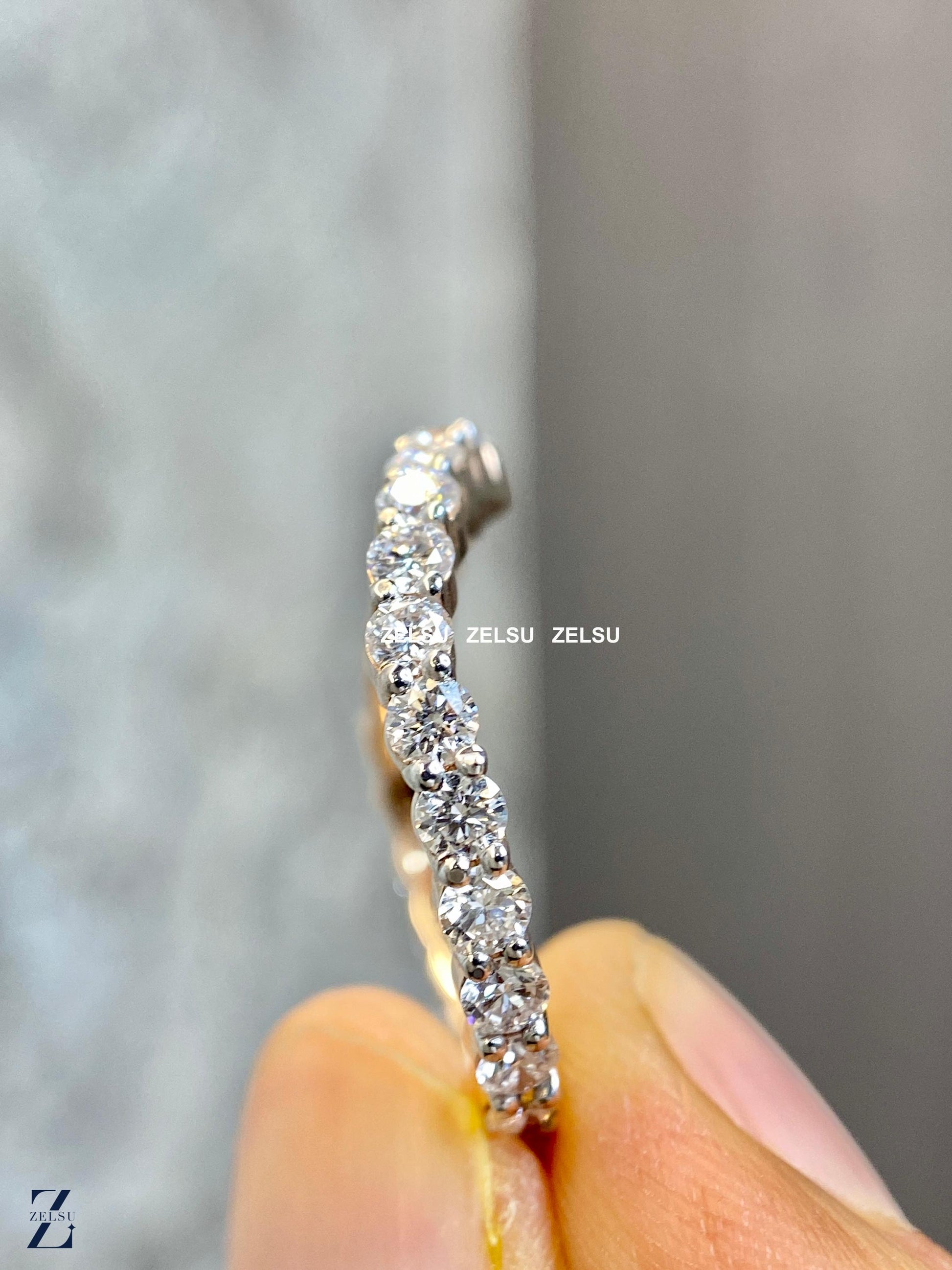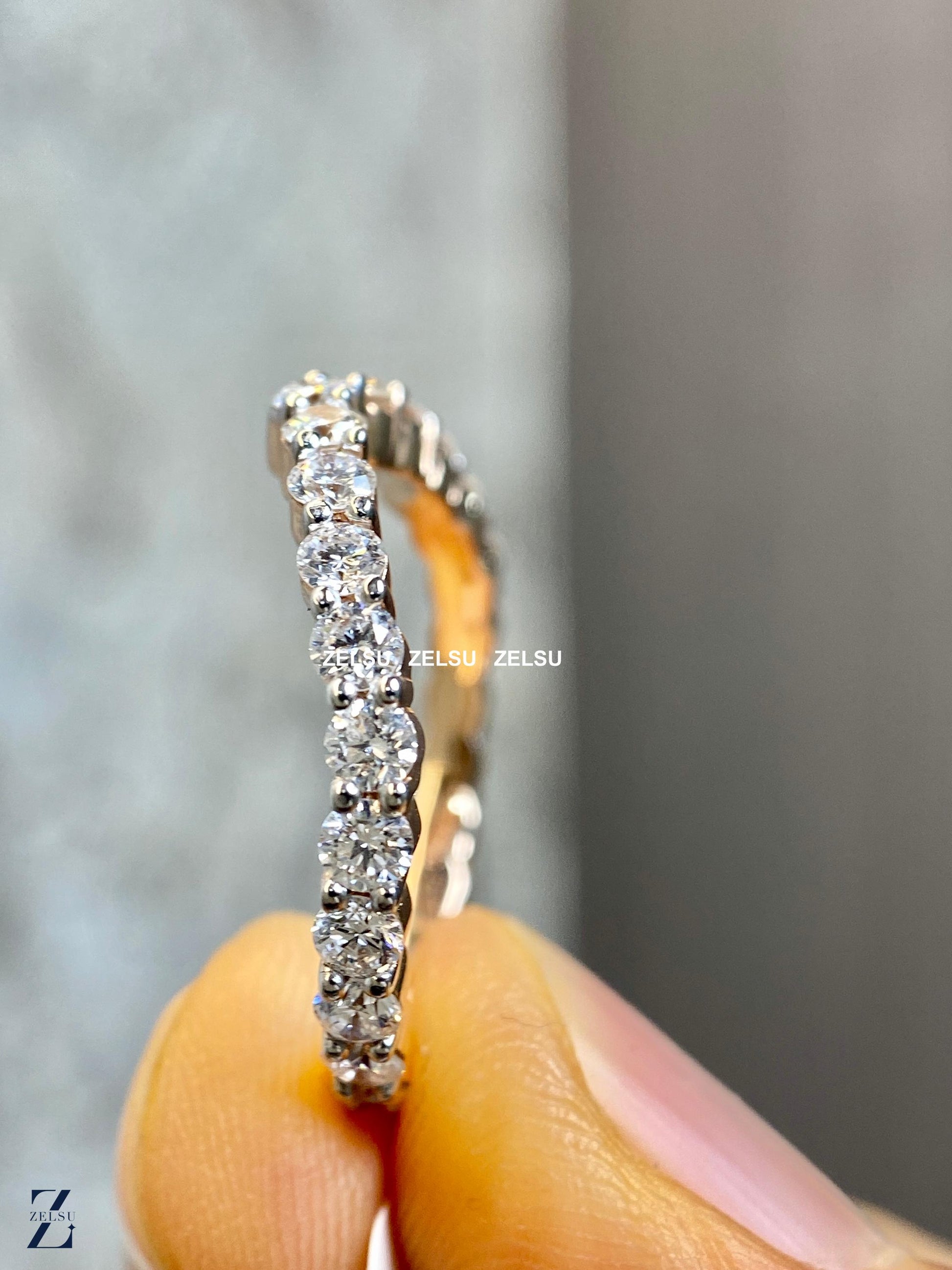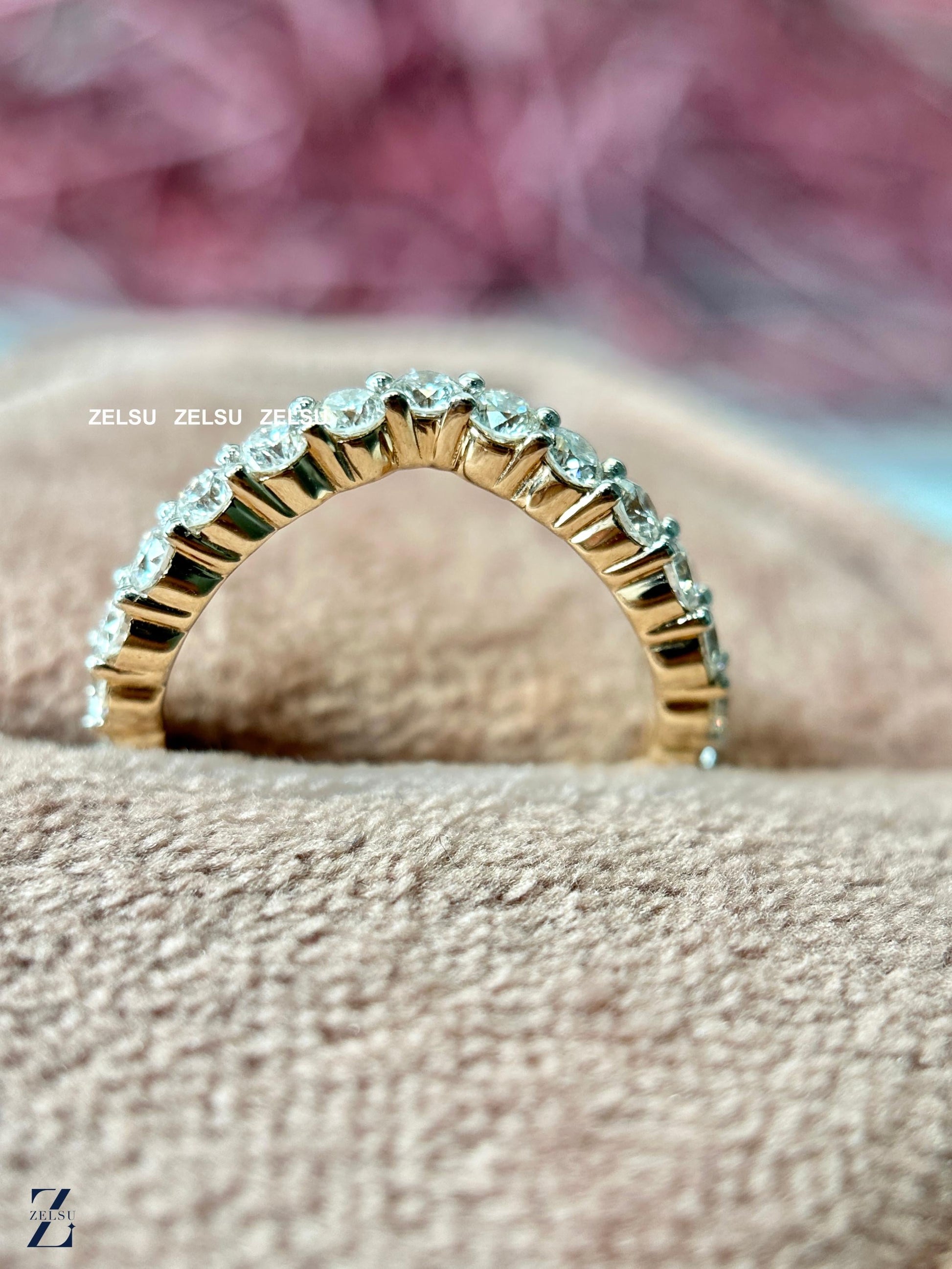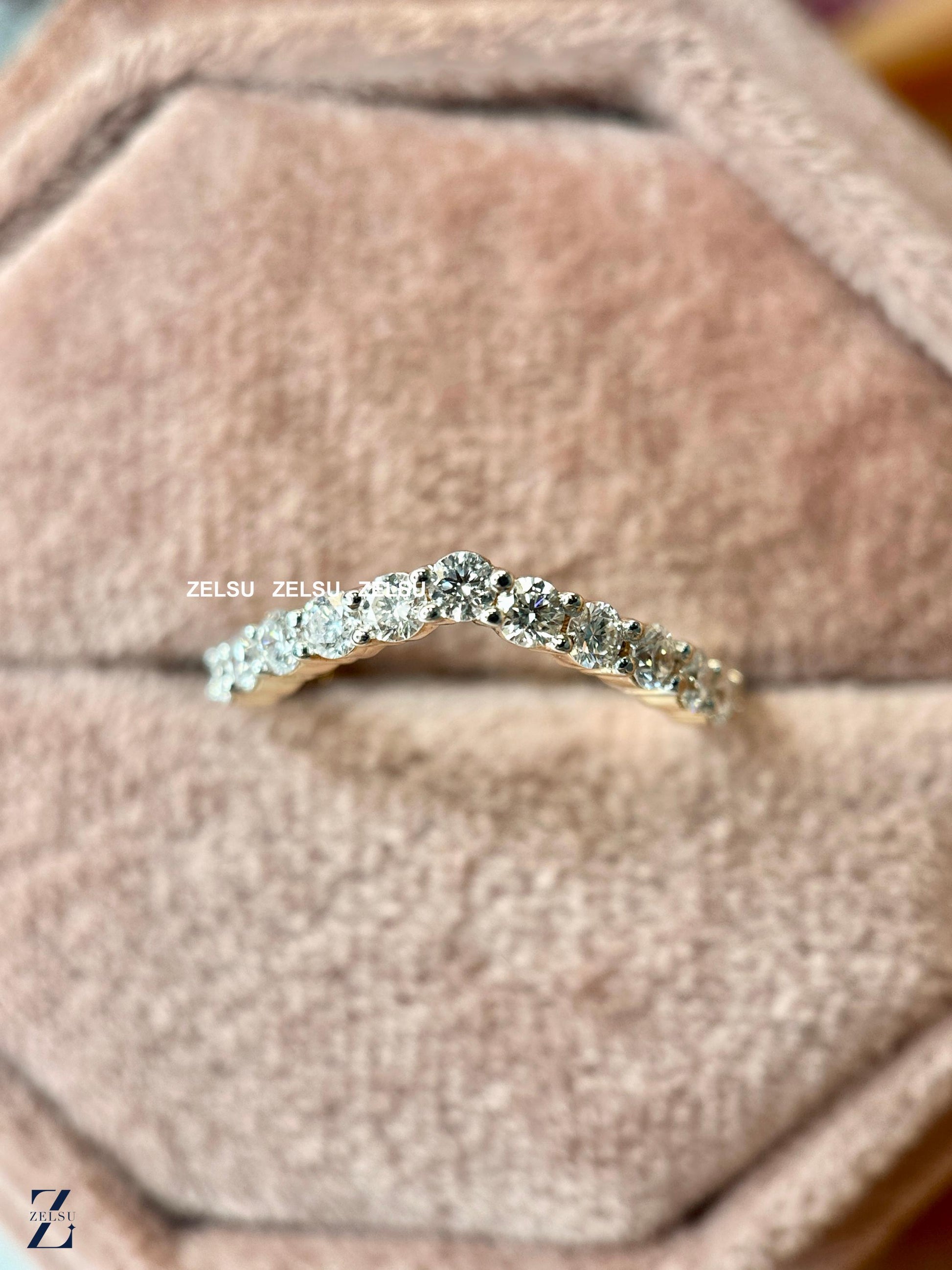0.90 TCW Lab Grown Round Diamond Band, Dainty Curved Design, Elegant Wedding or Stacking Ring, Perfect Anniversary Gift, zelsudiamond, 0.90 tcw band, round diamond band, lab grown band, dainty curved band, wedding band, stacking ring, bridal jewelry, anniversary gift, diamond band, Lab-Grown Diamond Jewelry By Zelsu Diamond, Handmade Fine Jewelry for Women, Artisan Jewelry By Zelsu Diamond