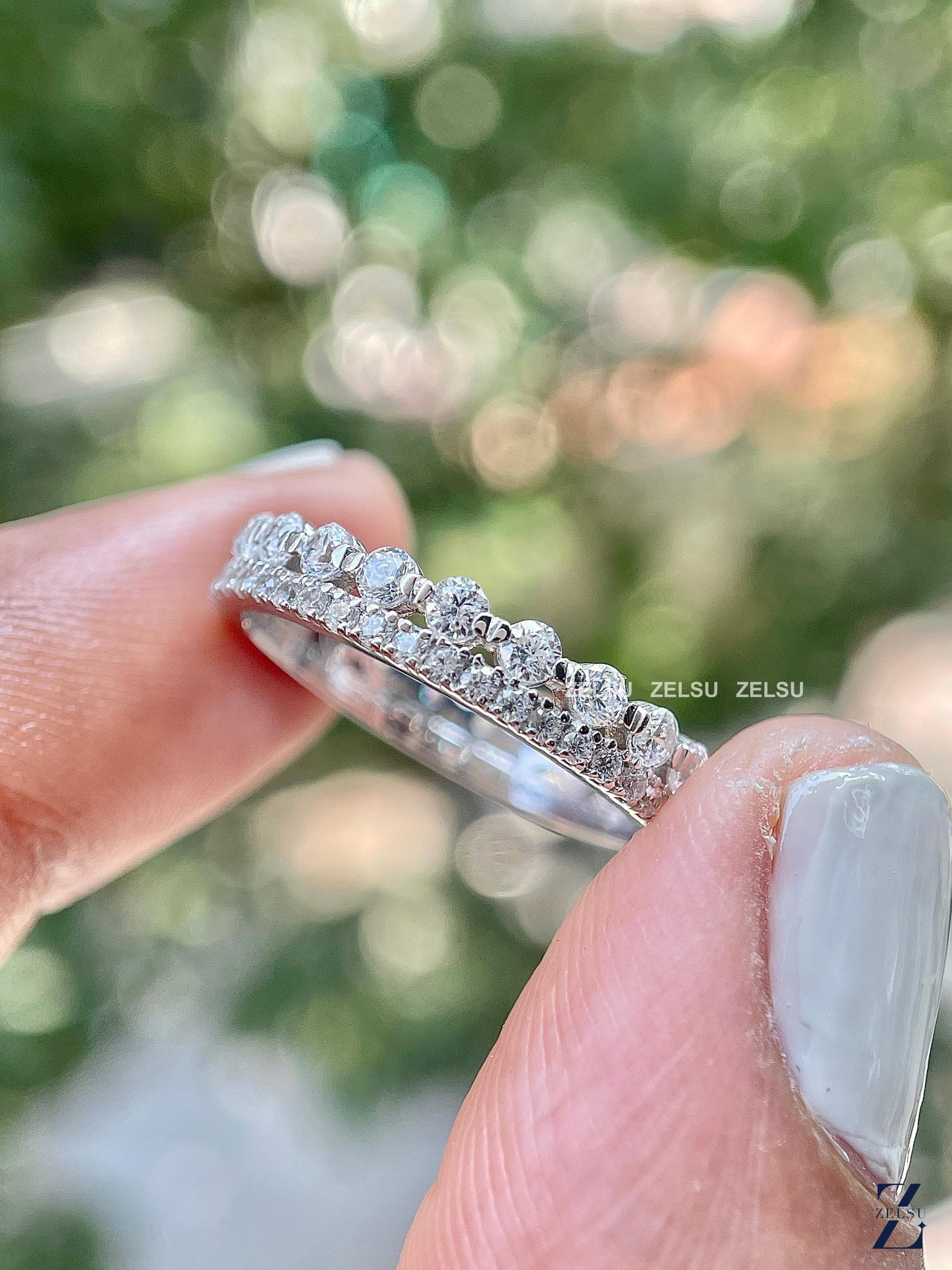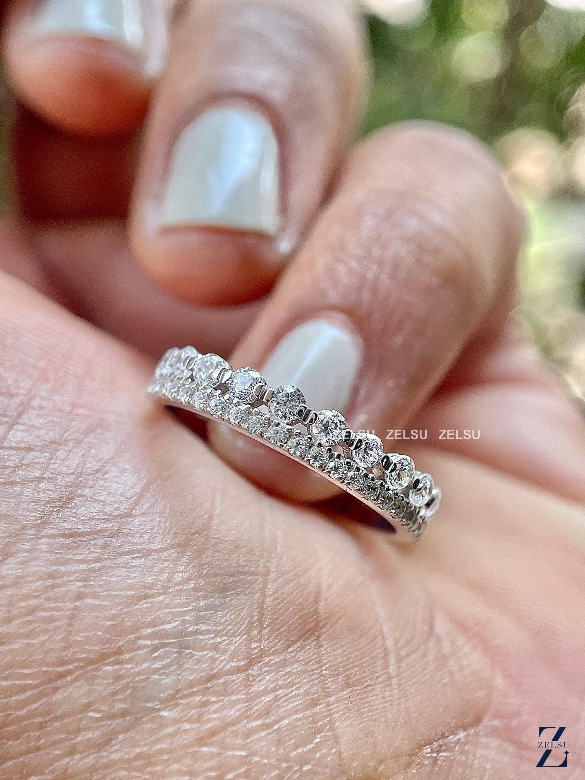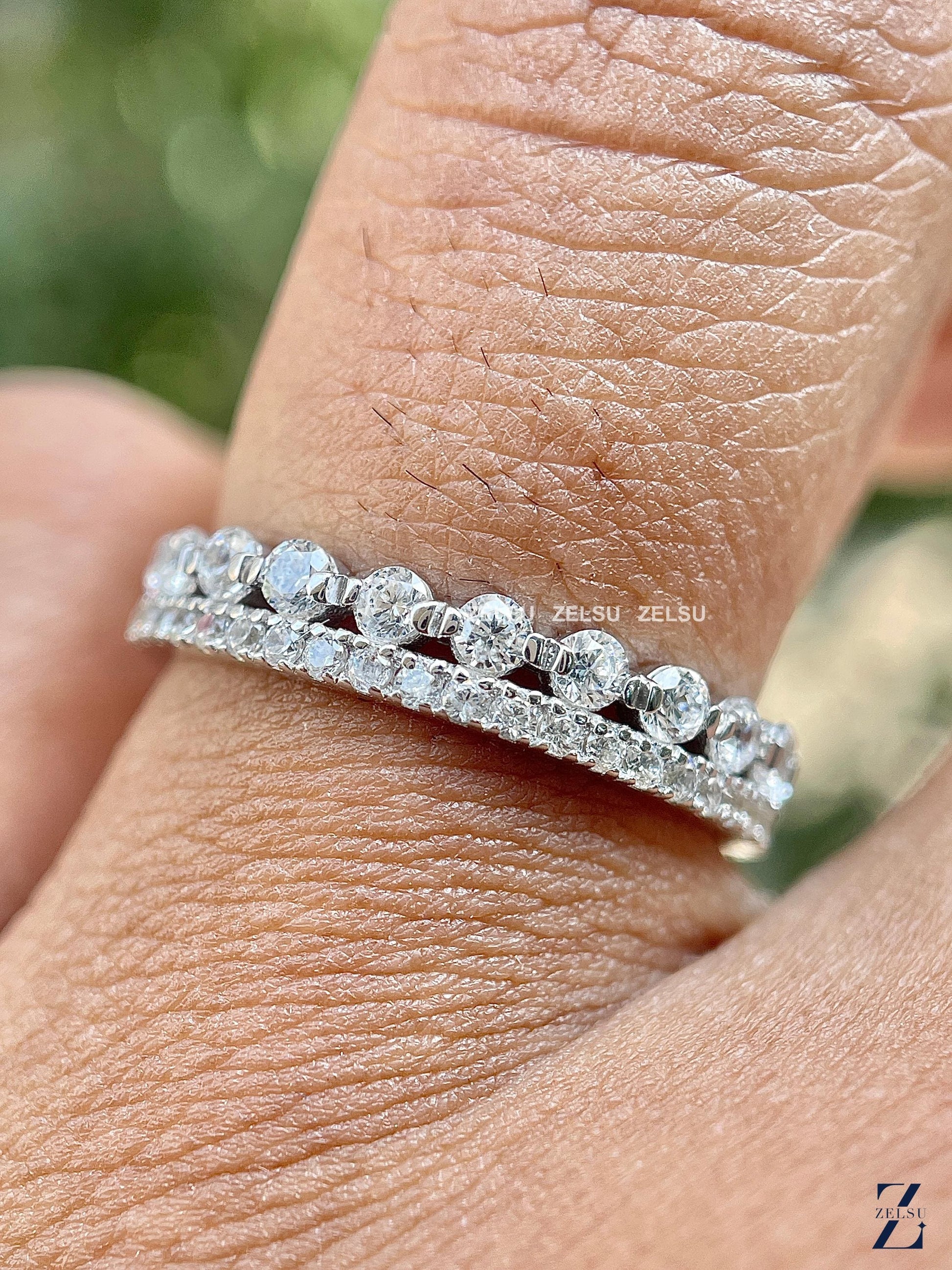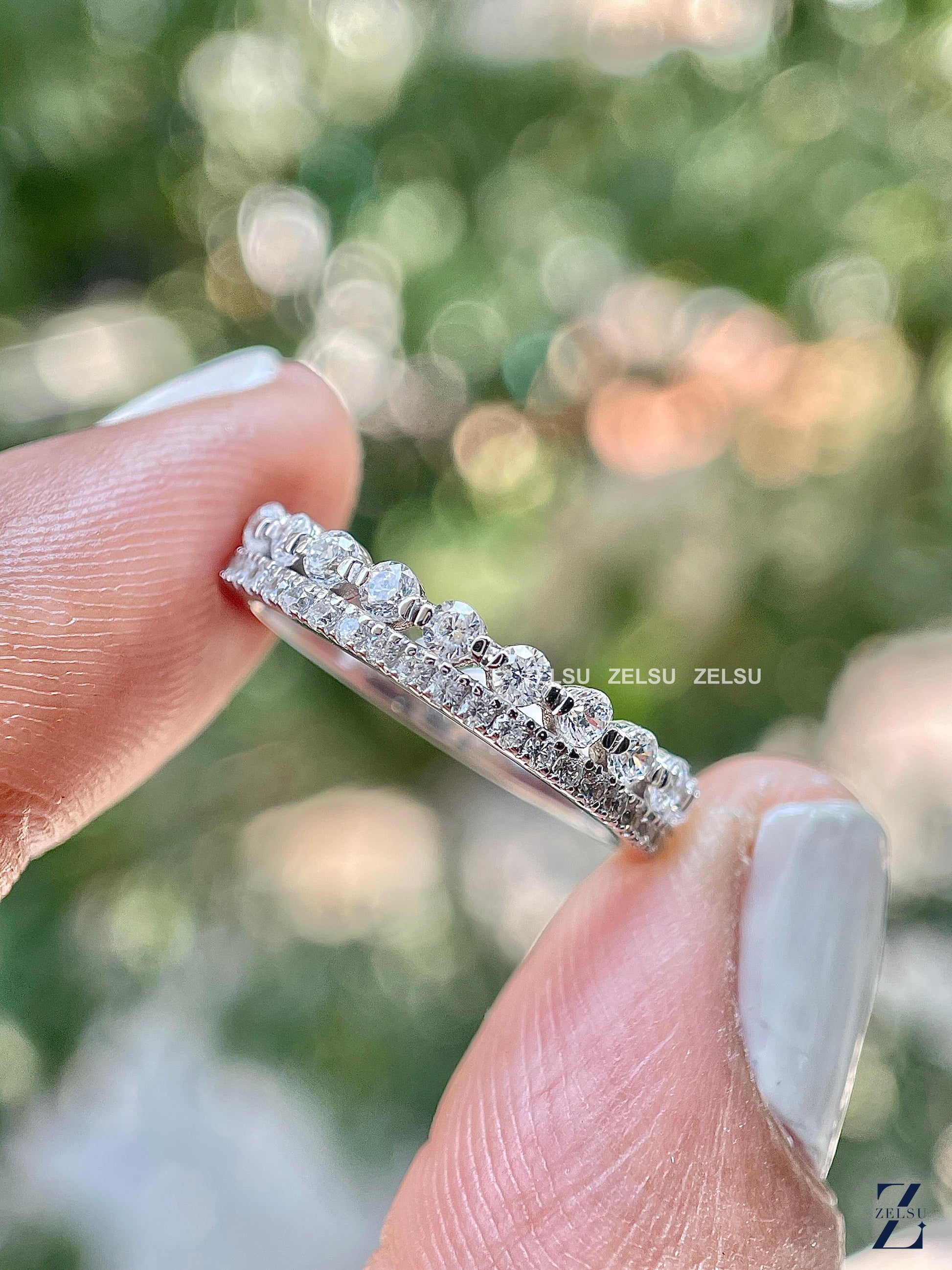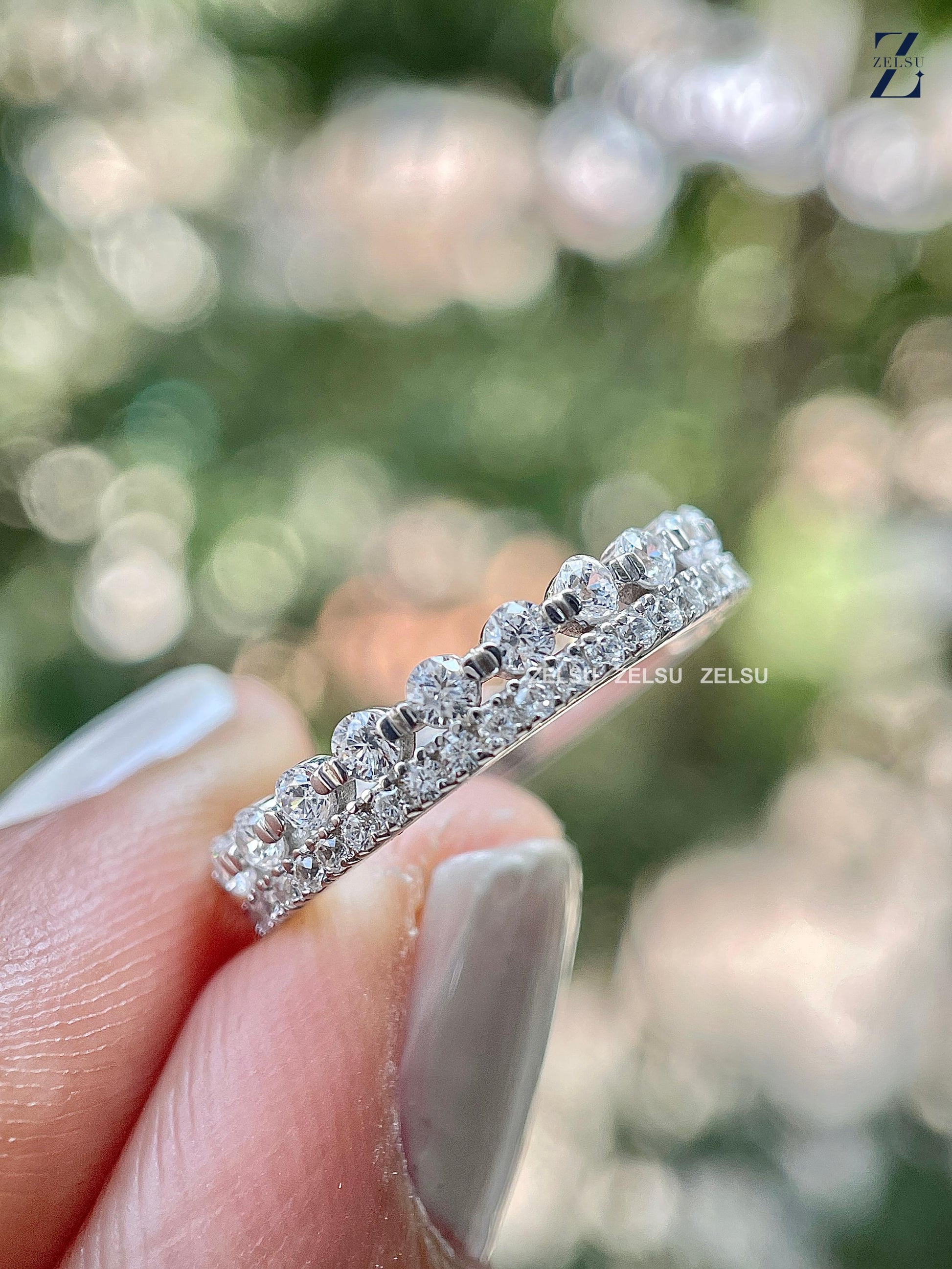 0.97TCW Round Lab Created Diamond Full Eternity Band, Lab Grown Diamond Double Row Pave Wedding Band, Minimalist Bridal Matching Band For Her, zelsudiamond, full eternity band ,anniversary ring ,bridal ring ,double row pave band ,mothers day gift ,eco friendly diamond ,lab created diamond ,lab grown diamond ,ring for women ,diamond wedding band ,round cut ,wedding band, Lab-Grown Diamond Jewelry By Zelsu Diamond, Handmade Fine Jewelry for Women, Artisan Jewelry By Zelsu Diamond
