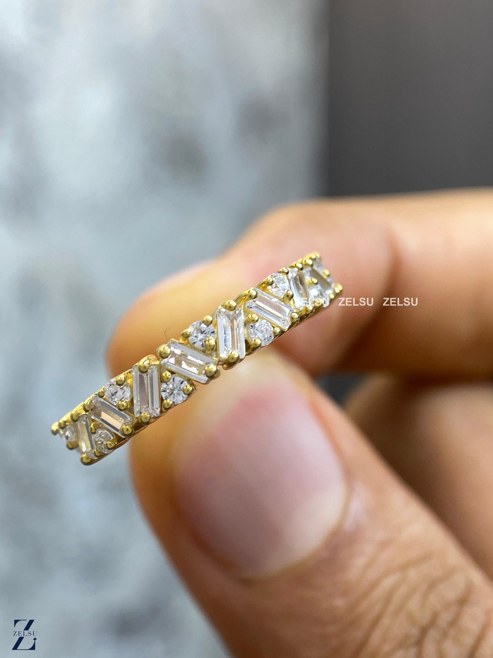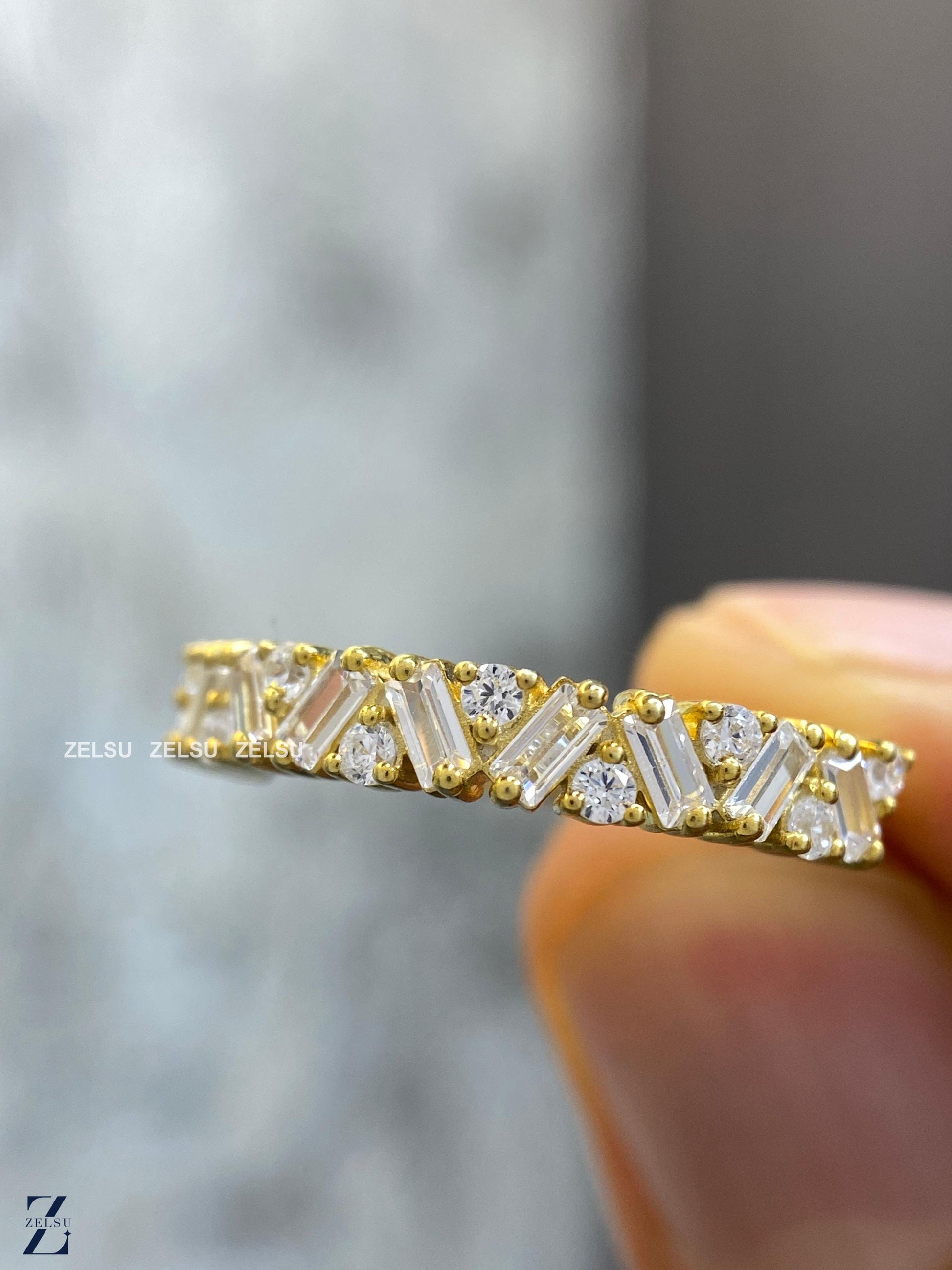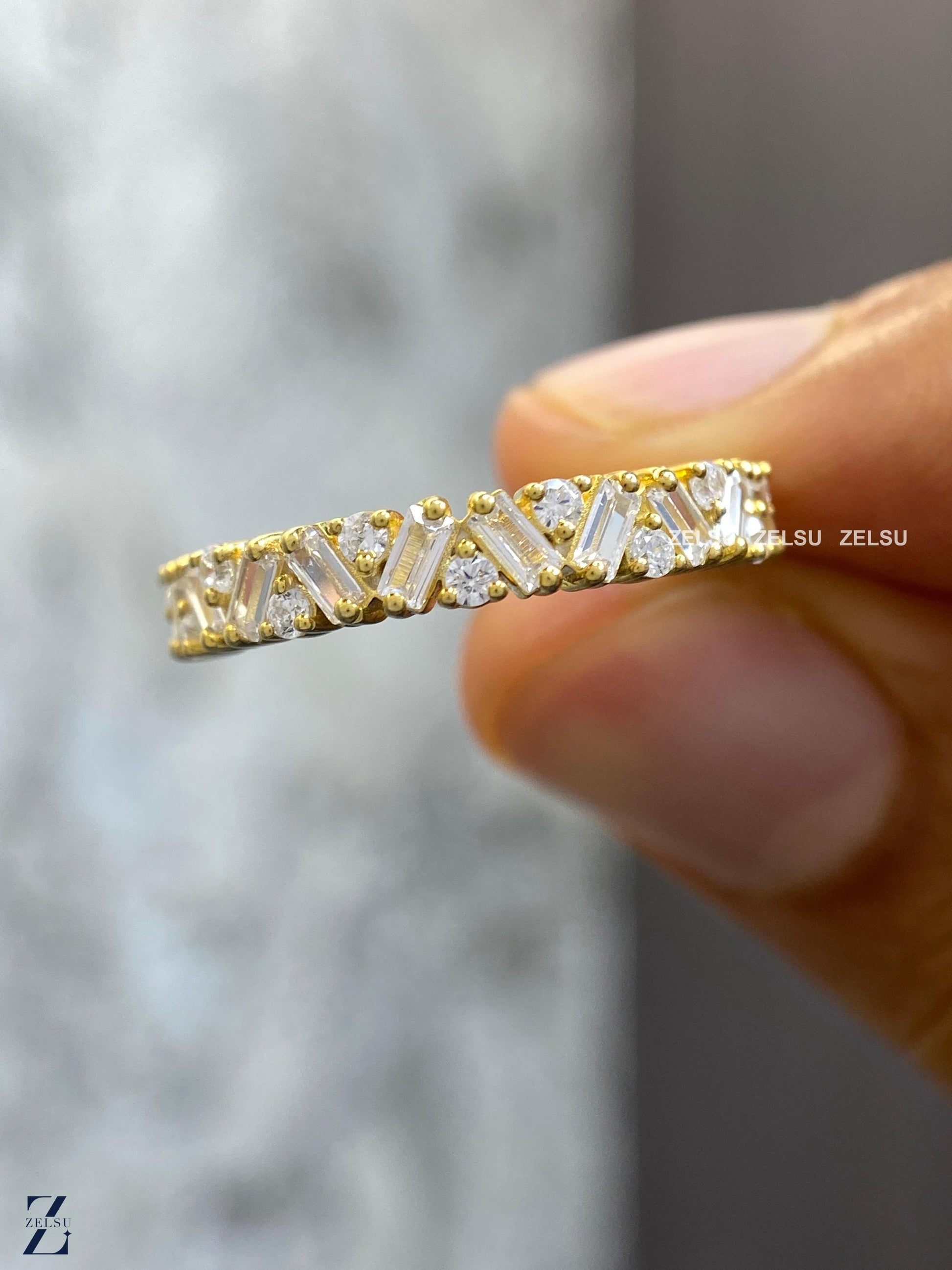 1.33 CT Baguette and Round Lab Grown Diamond Wedding Band, Half Eternity Band, Stackable Band for Engagement Ring, Diamond Band for Women, anniversary gift, baguette diamond, diamond band for her ,diamond wedding band, half eternity band, lab created diamond, lab grown diamond ,matching band, ring for women ,round diamond band ,stackable band ,wedding band, Lab-Grown Diamond Jewelry By Zelsu Diamond, Handmade Fine Jewelry for Women, Artisan Jewelry By Zelsu Diamond