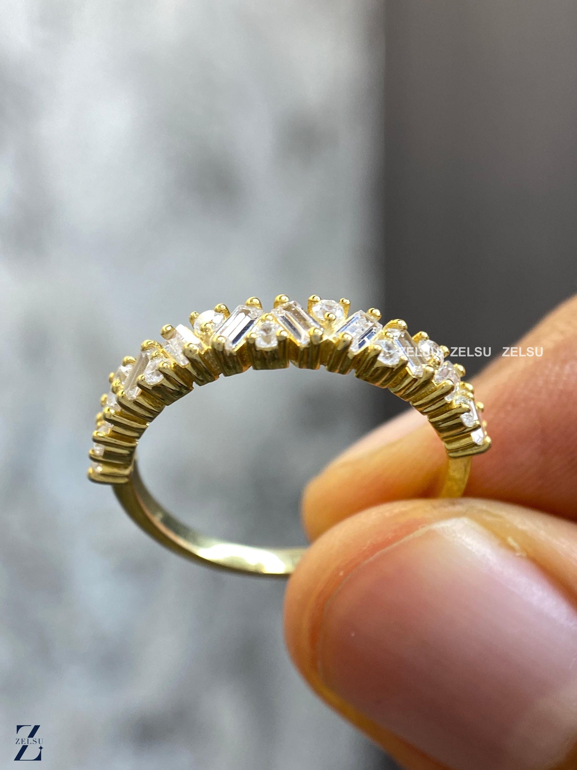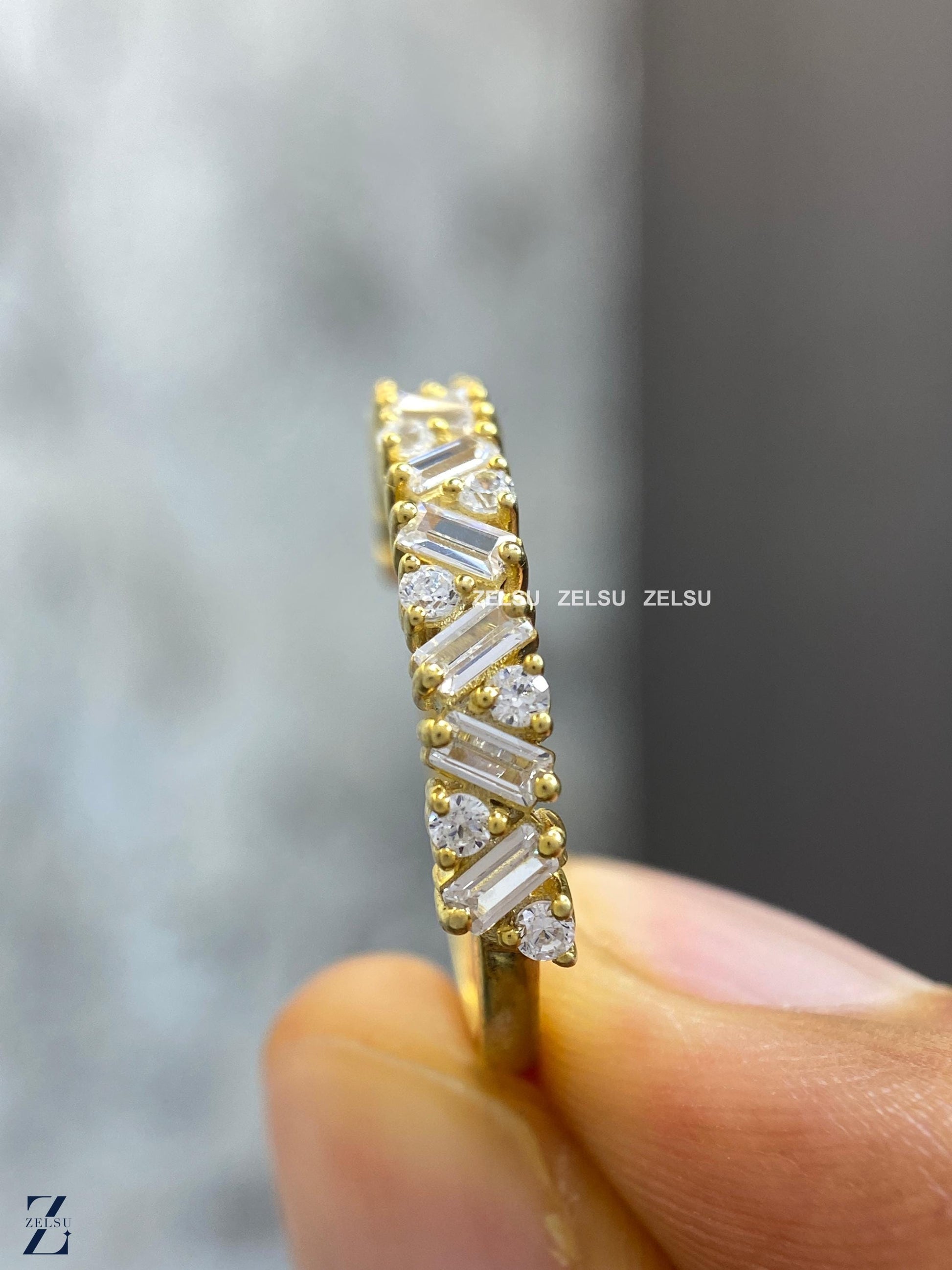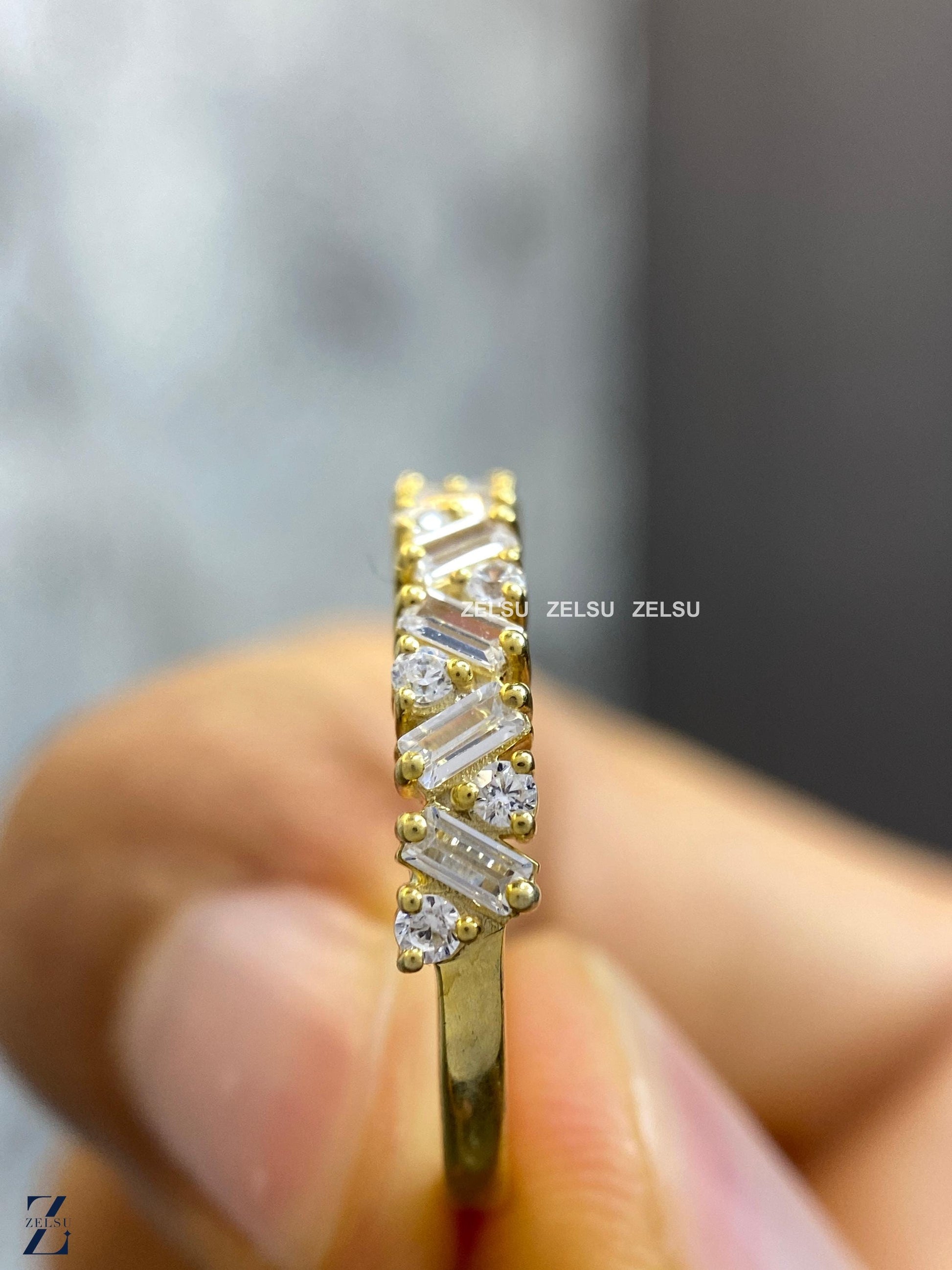 1.33 CT Baguette and Round Lab Grown Diamond Wedding Band, Half Eternity Band, Stackable Band for Engagement Ring, Diamond Band for Women, anniversary gift, baguette diamond, diamond band for her ,diamond wedding band, half eternity band, lab created diamond, lab grown diamond ,matching band, ring for women ,round diamond band ,stackable band ,wedding band, Lab-Grown Diamond Jewelry By Zelsu Diamond, Handmade Fine Jewelry for Women, Artisan Jewelry By Zelsu Diamond