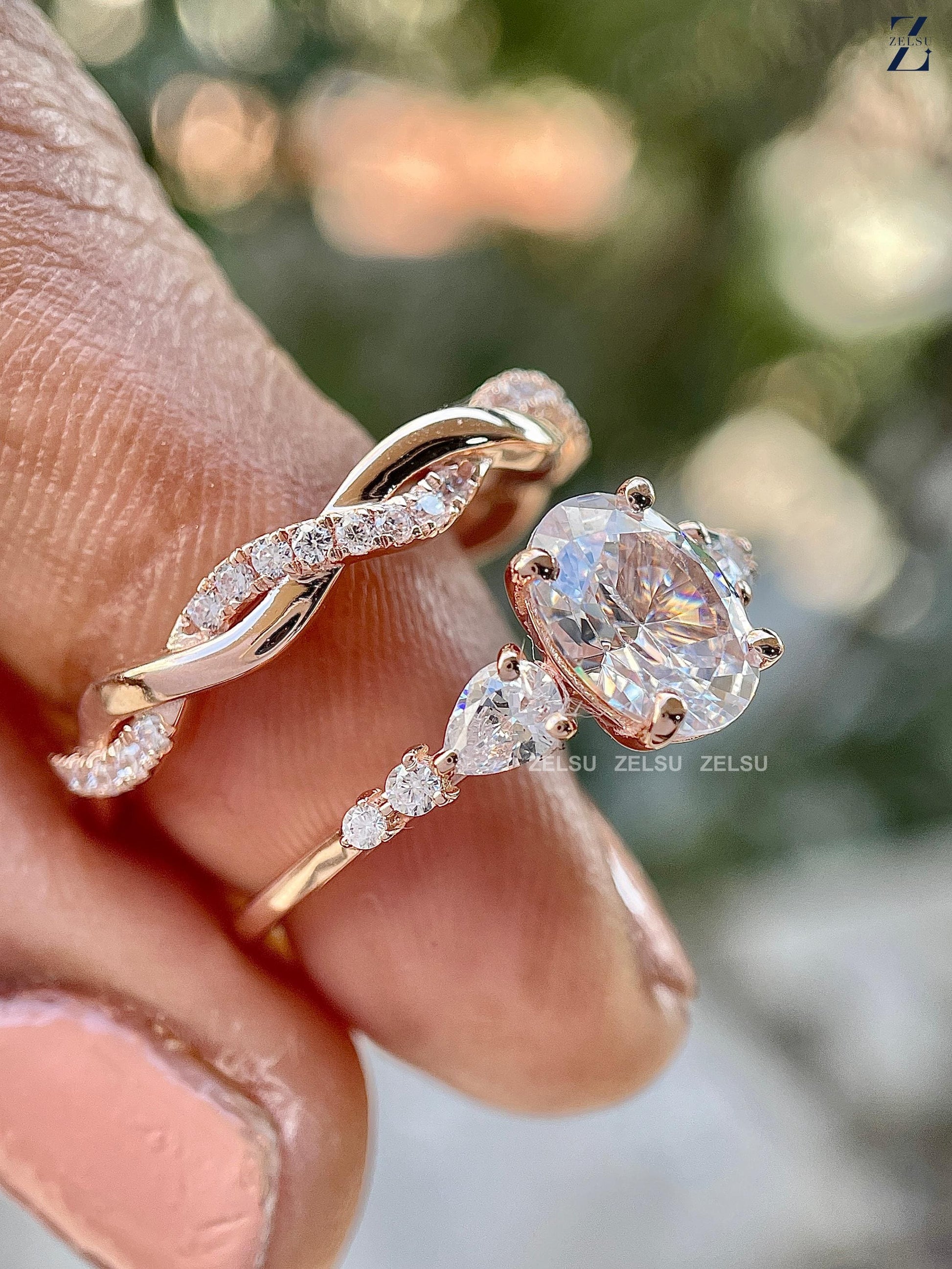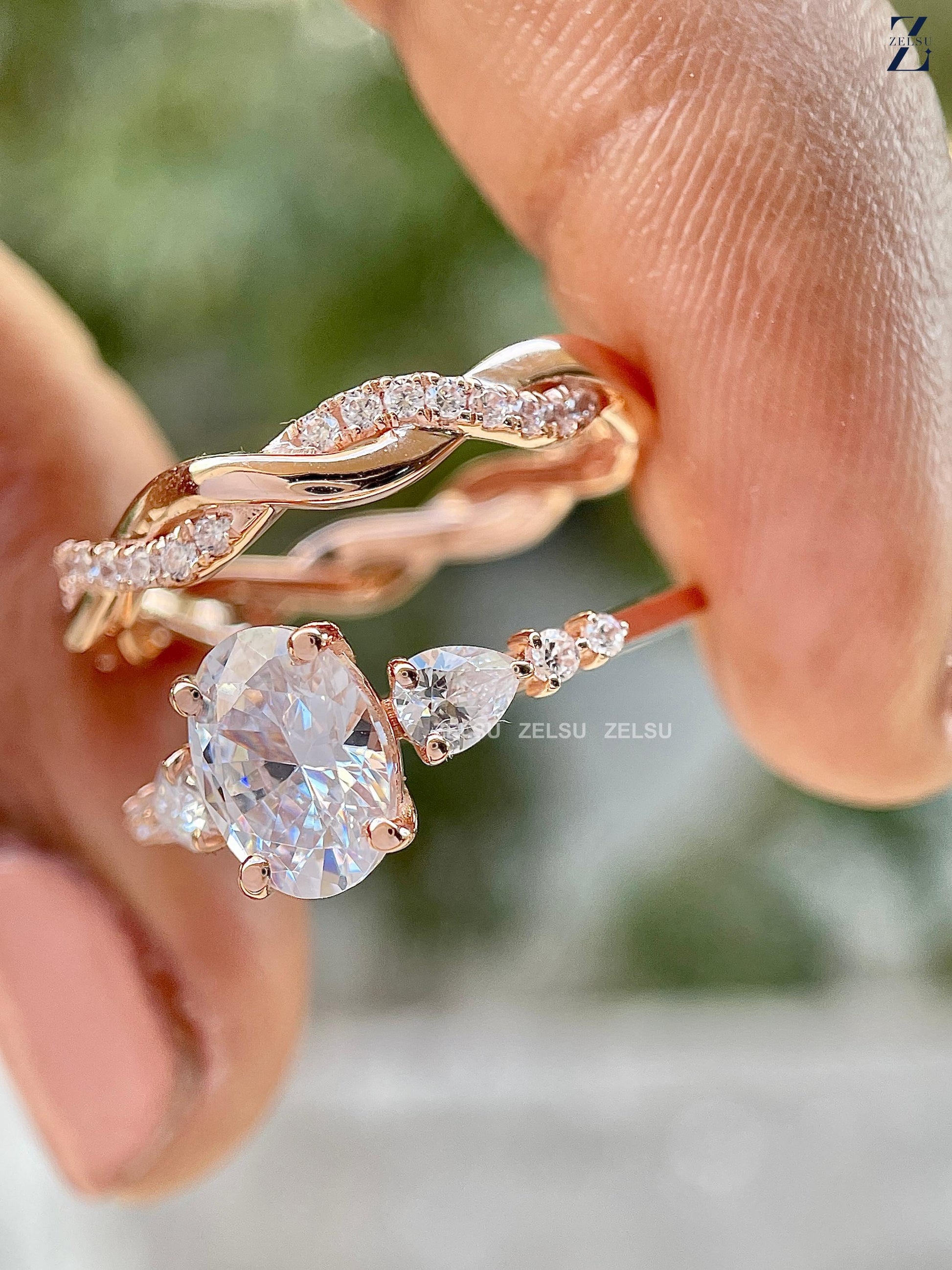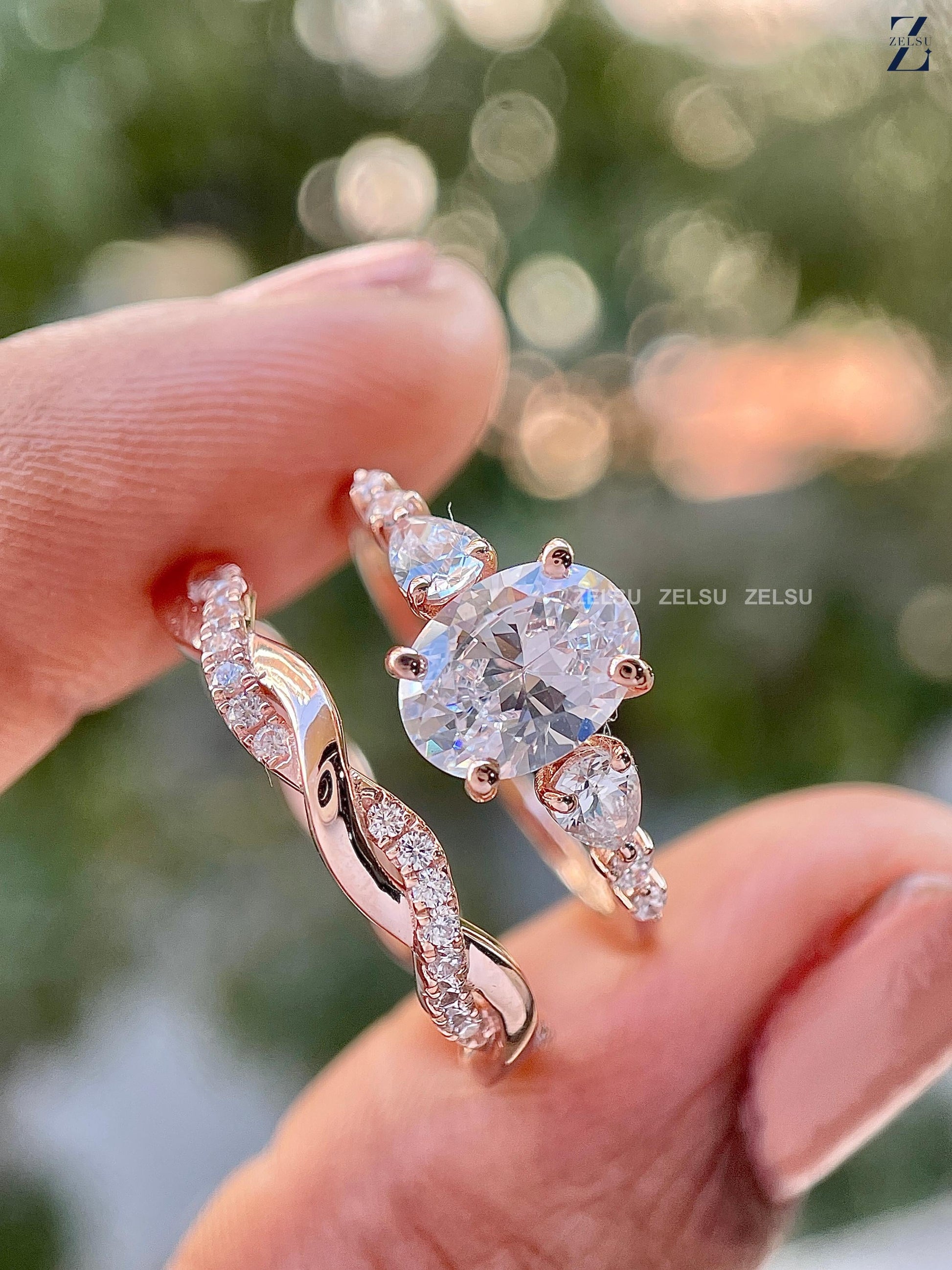 1.50 CT Oval Cut Lab Grown Diamond Engagement Ring With Twisted Band, Bridal Set, Wedding Ring Set, 18K Gold Ring Set, Gift For Her, Anniversary gift, birthday gift, gift for her, wedding gift, handmade jewelry, personalized gifts, wedding ring set, diamond ring set, bridal set, vintage bridal set, Engagement ring set, lab grown diamond, lab grown ring, Lab-Grown Diamond Jewelry By Zelsu Diamond, Handmade Fine Jewelry for Women, Artisan Jewelry By Zelsu Diamond