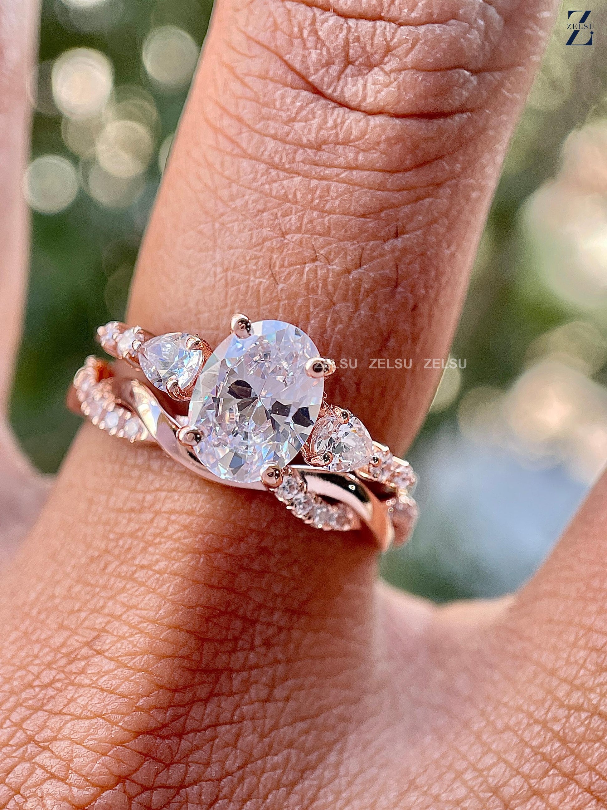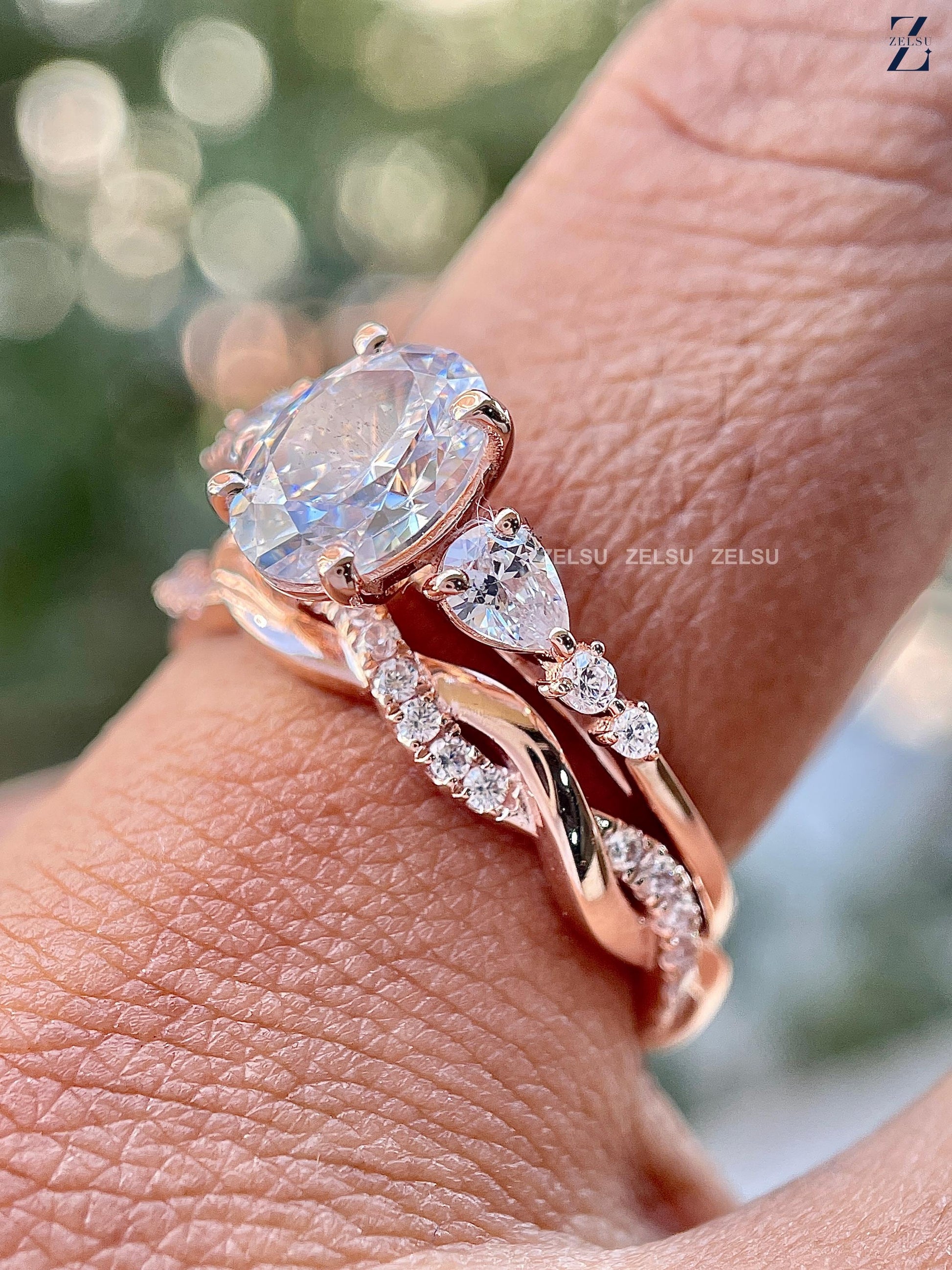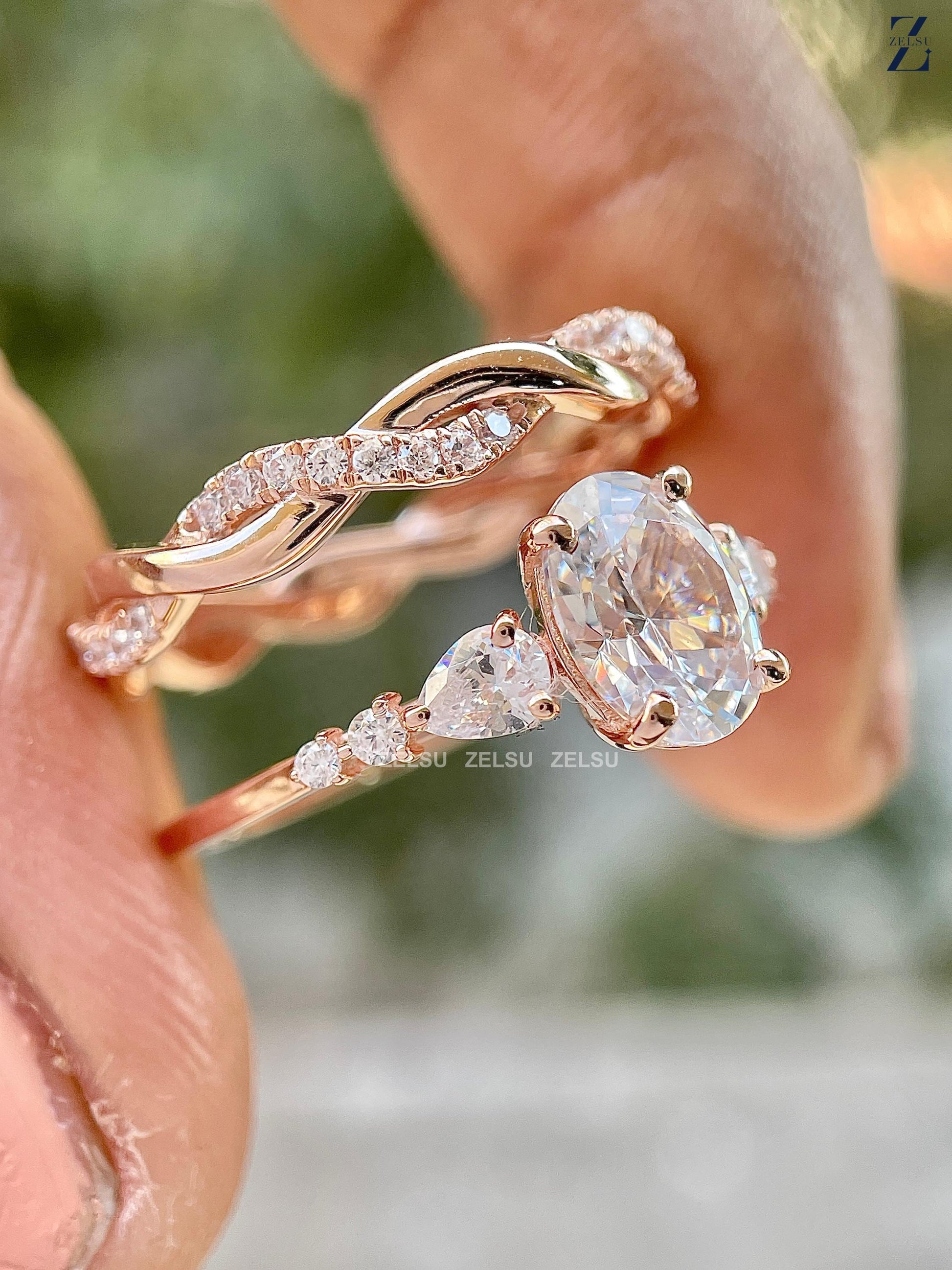1.50 CT Oval Cut Lab Grown Diamond Engagement Ring With Twisted Band, Bridal Set, Wedding Ring Set, 18K Gold Ring Set, Gift For Her, Anniversary gift, birthday gift, gift for her, wedding gift, handmade jewelry, personalized gifts, wedding ring set, diamond ring set, bridal set, vintage bridal set, Engagement ring set, lab grown diamond, lab grown ring, Lab-Grown Diamond Jewelry By Zelsu Diamond, Handmade Fine Jewelry for Women, Artisan Jewelry By Zelsu Diamond