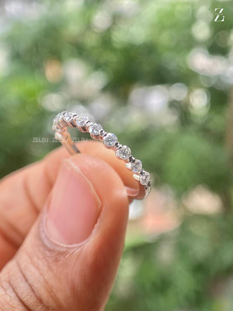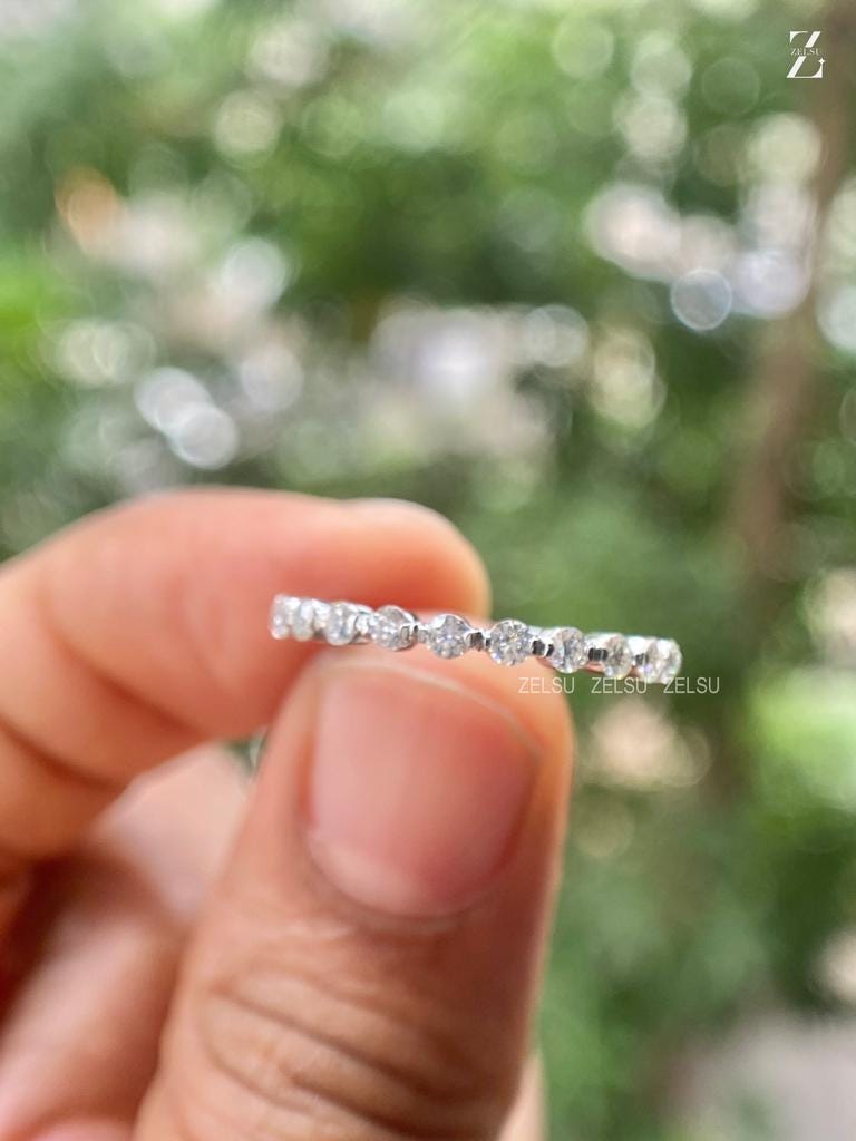 2.00 MM round Cut Wedding Band, Floating Bubble Prong Band Curved, Bubble Engagement ring, Lab Grown Diamond Wedding Band, Half Eternity Band, Eternity Bubble Ring, Women Floating Band, prong Wedding Band, Floating Diamonds, Diamond Buble Ring, Appraisal Included, Sarriel, CVD Diamond Ring, Eternity Diamond, Lab Grown Diamond, Zeslu Diamond,Lab-Grown Diamond Jewelry By Zelsu Diamond, Handmade Fine Jewelry for Women, Artisan Jewelry By Zelsu Diamond