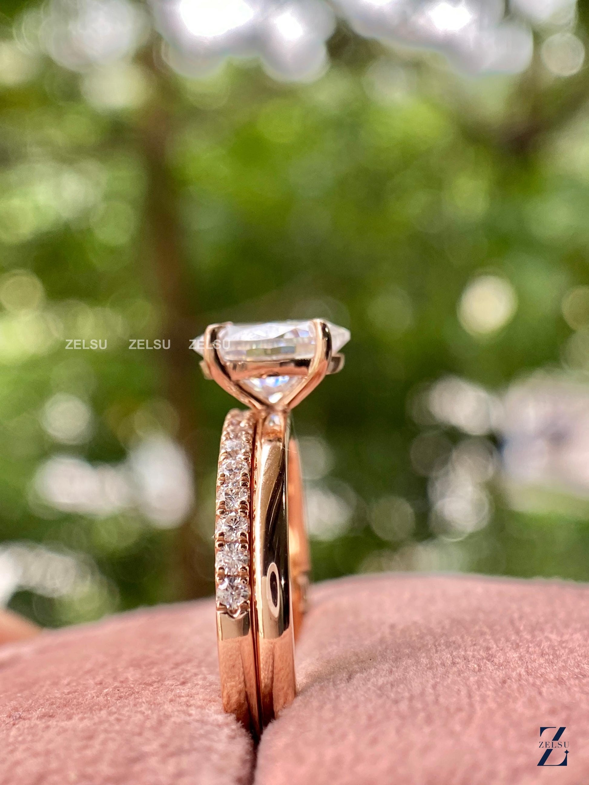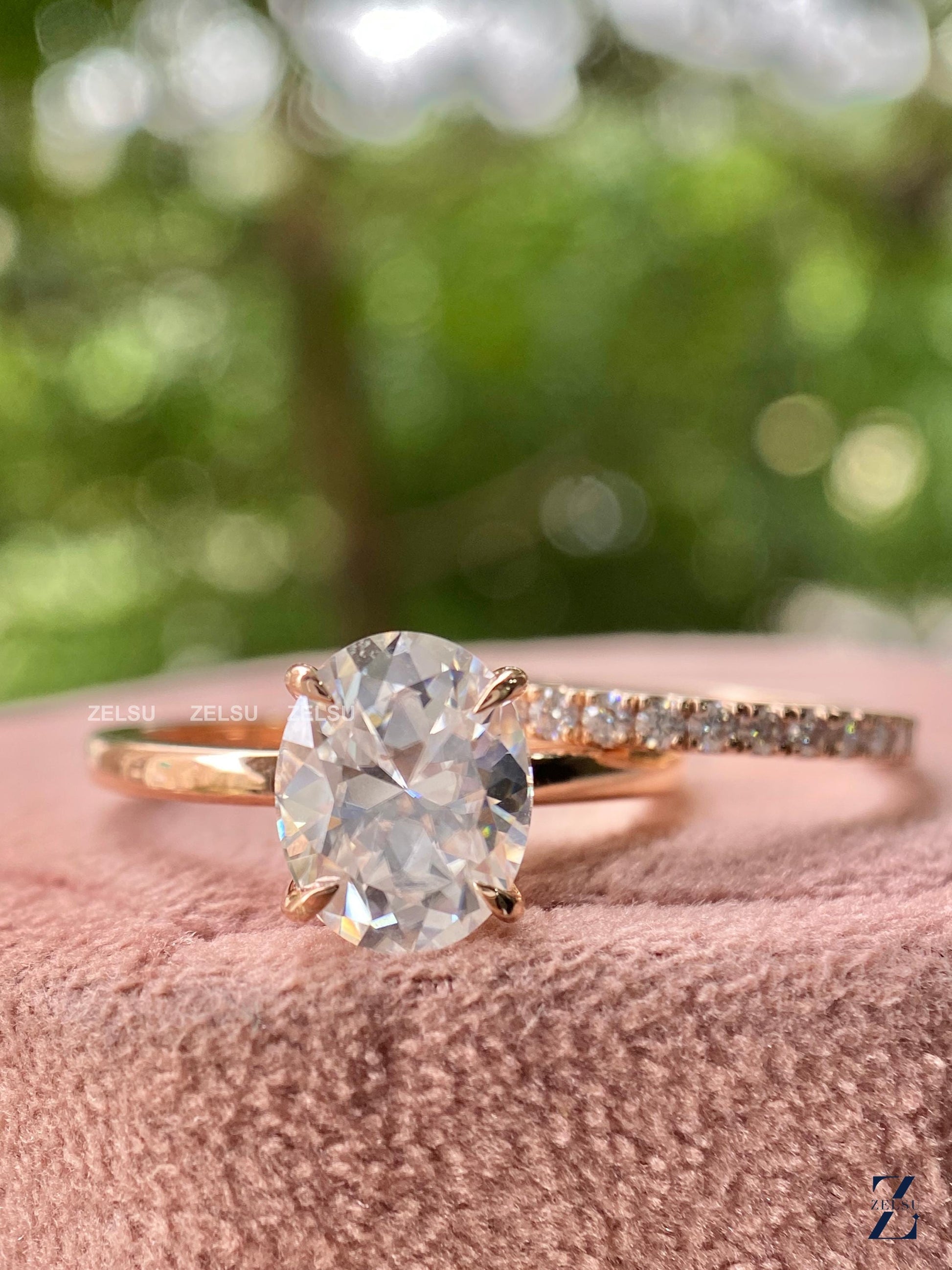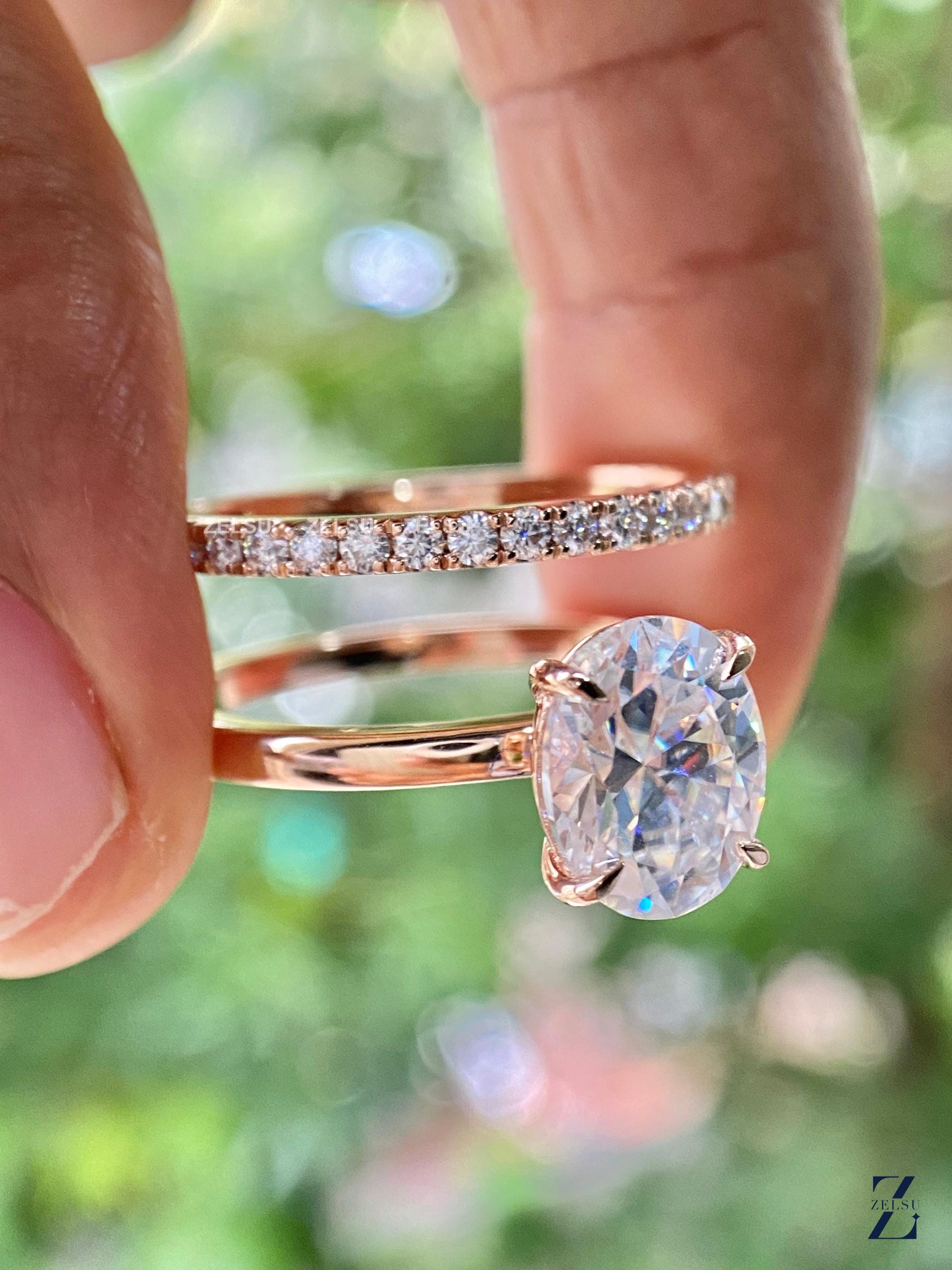 2.2 Carat IGI Certified G/VS1 Oval Cut Lab Grown Diamond Solitaire Engagement Bridal Ring Set, Matching Round Diamond Wedding Band Gold