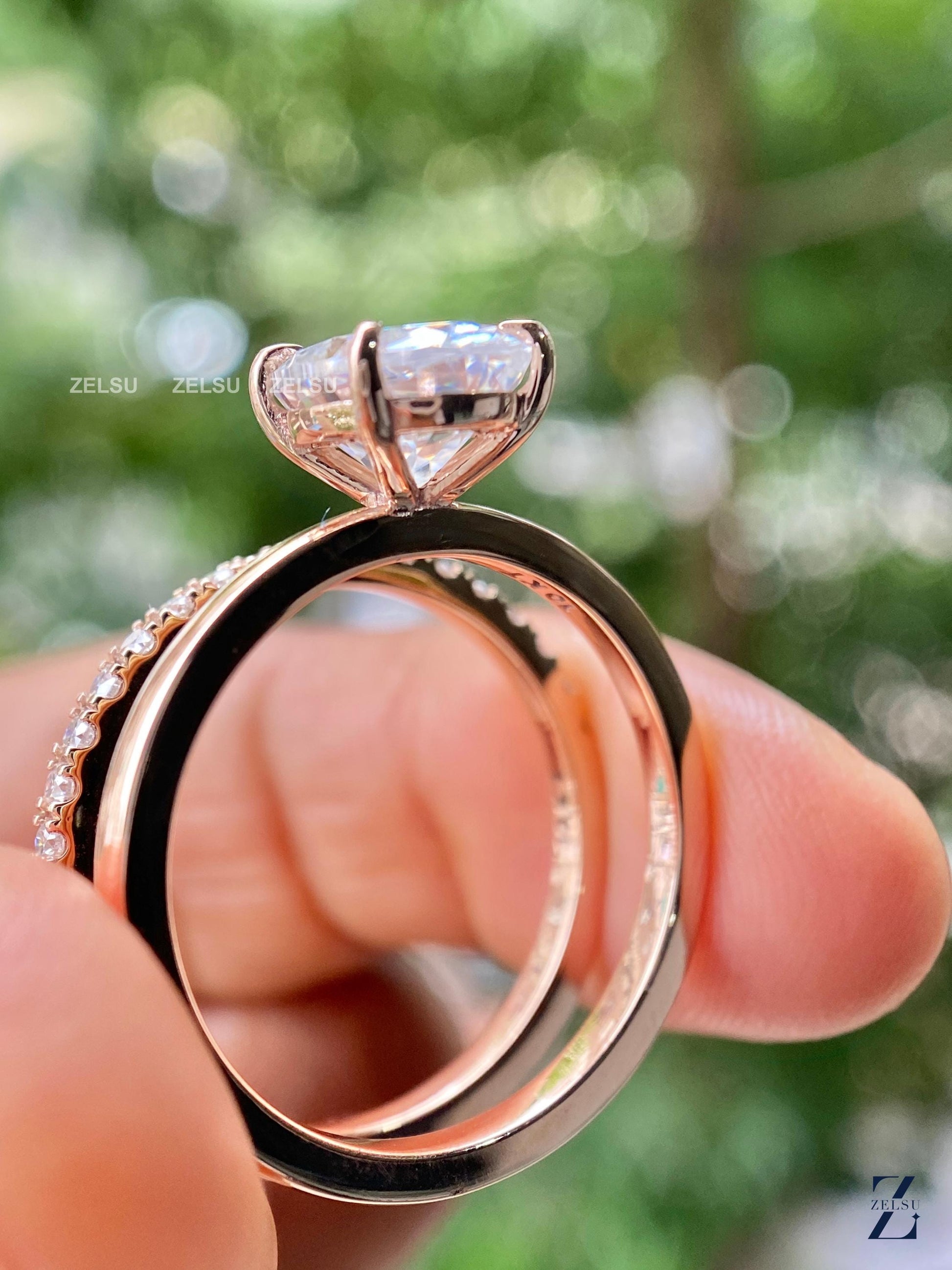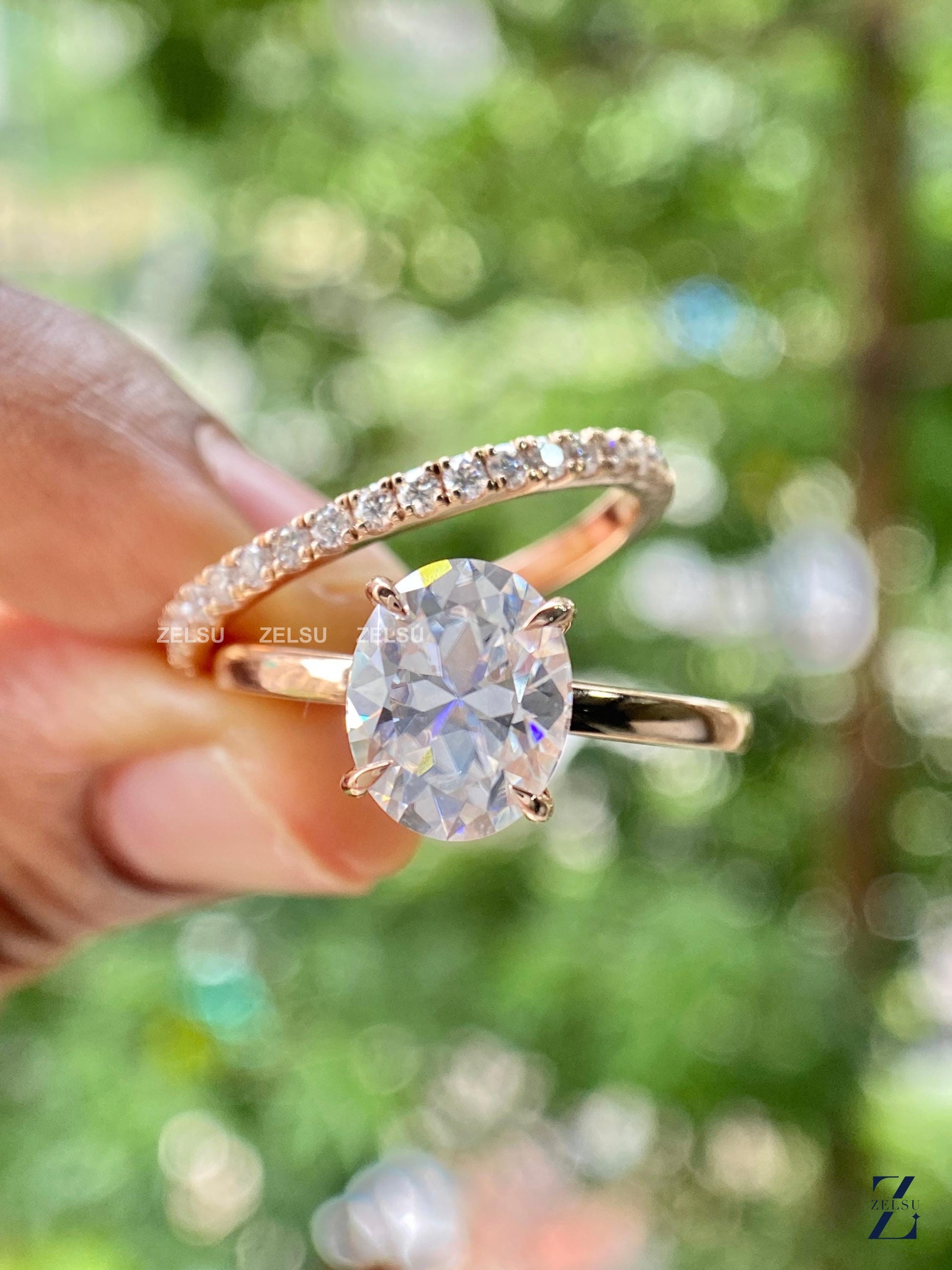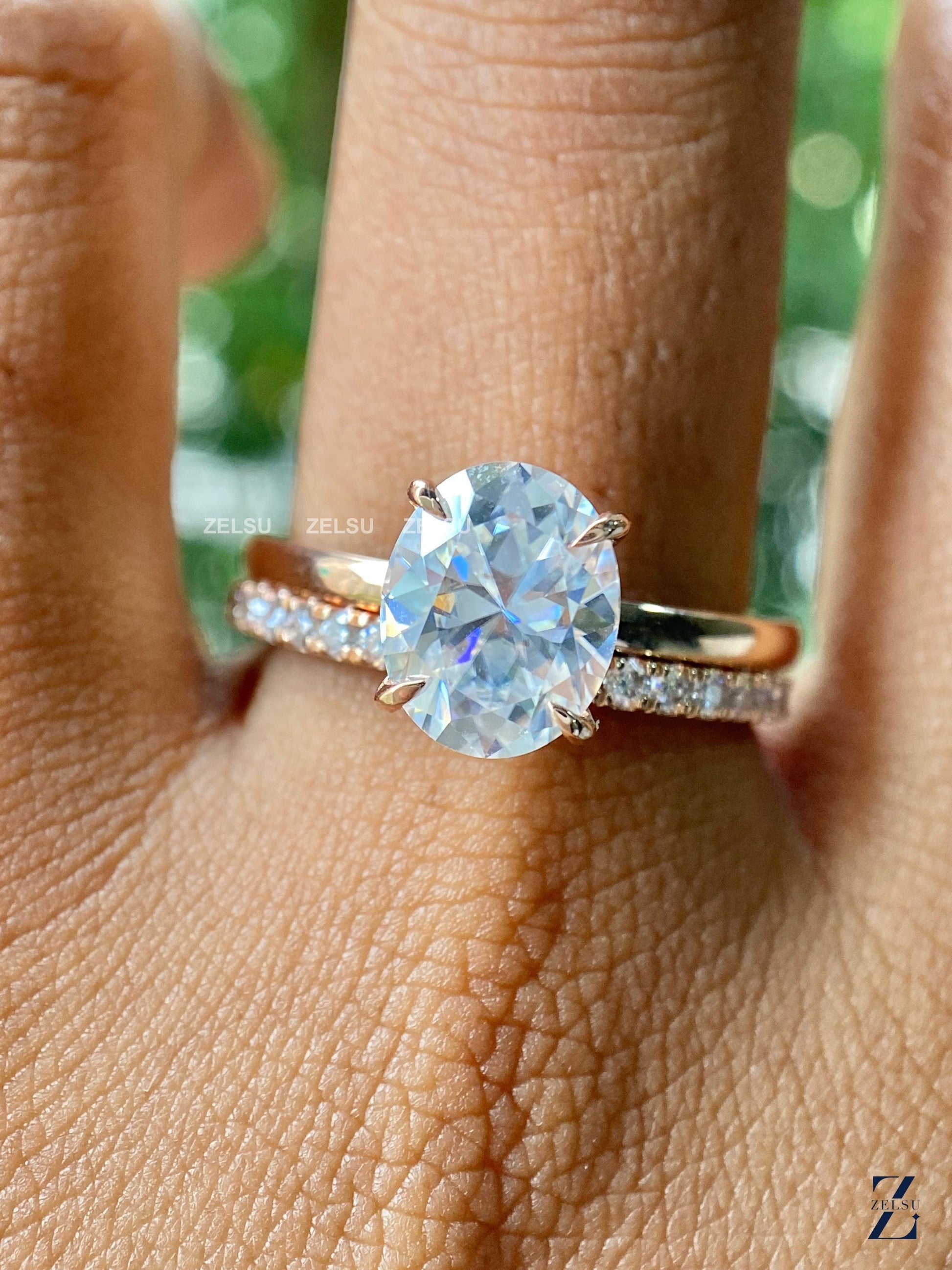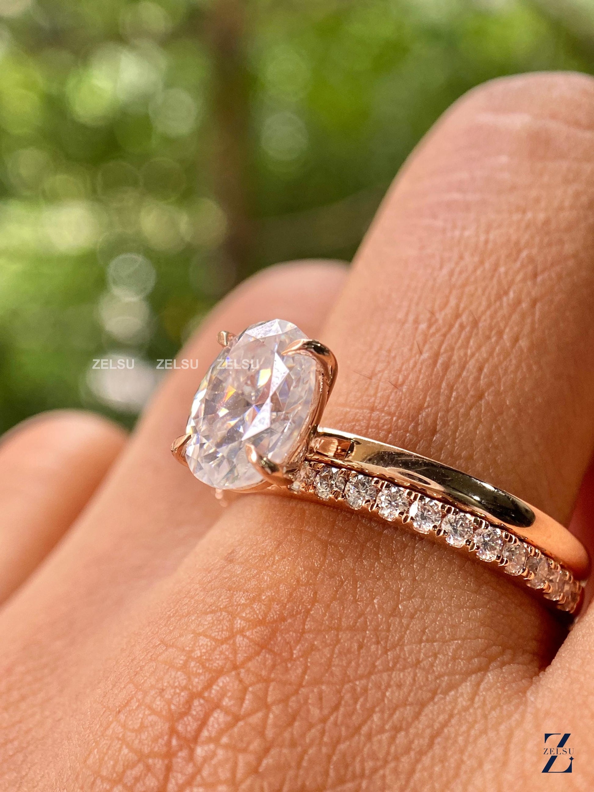2.2 Carat IGI Certified G/VS1 Oval Cut Lab Grown Diamond Solitaire Engagement Bridal Ring Set, Matching Round Diamond Wedding Band Gold