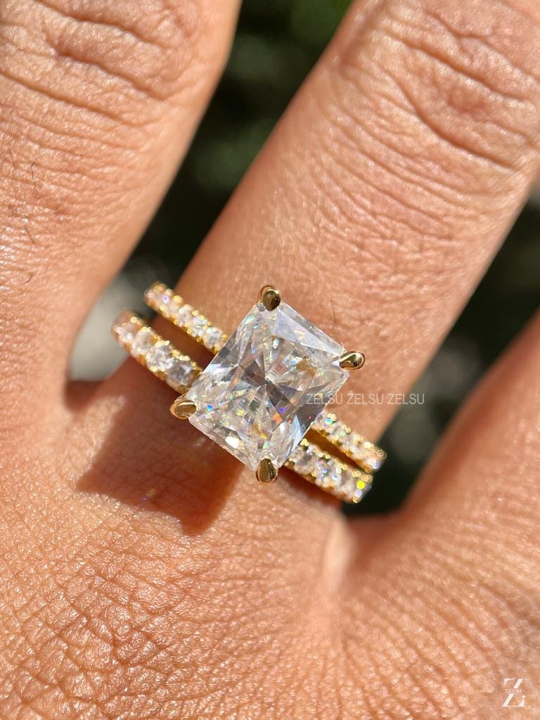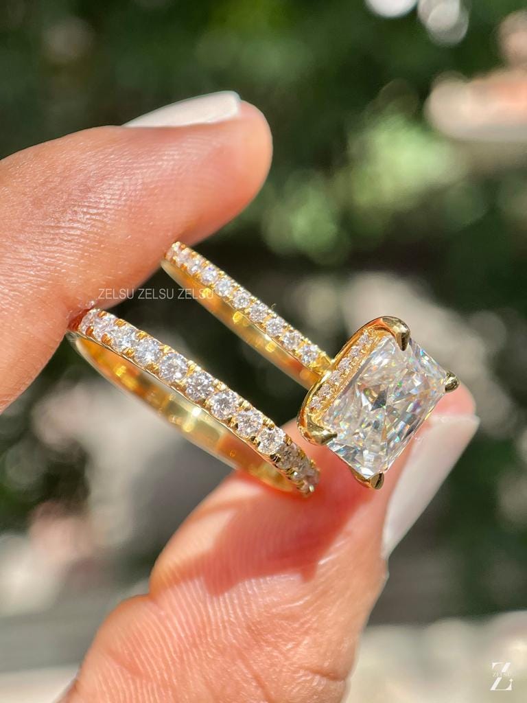 3.0CT Radiant Cut Lab Grown Diamond Engagement Ring, IGI Certified EF/VS Lab Diamond Wedding Ring, Pointed Prong Ring, Diamond Ring for Women, Anniversary gift, birthday gift, gift for her, wedding gift, handmade jewelry, personalized gifts, vintage ring, emerald cut diamond, engagement ring set, bridal set, diamond ring set, lab grown ring set, personalized jewelry, Lab-Grown Diamond Jewelry By Zelsu Diamond, Handmade Fine Jewelry for Women, Artisan Jewelry By Zelsu Diamond