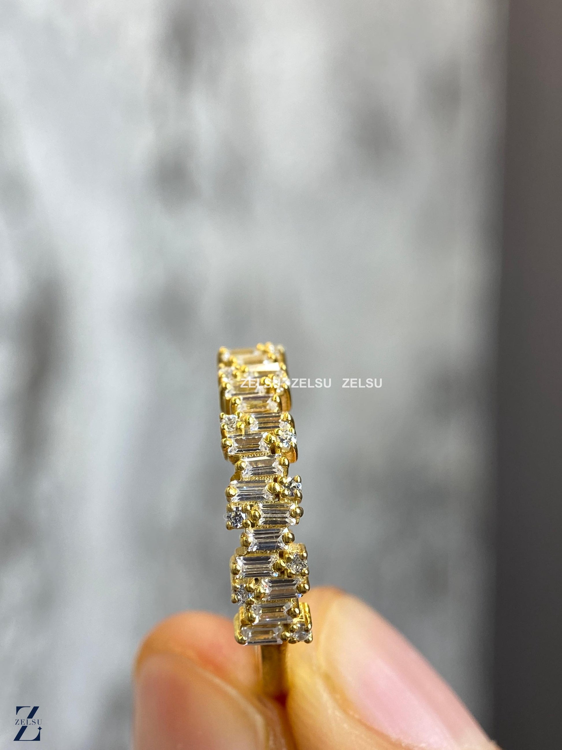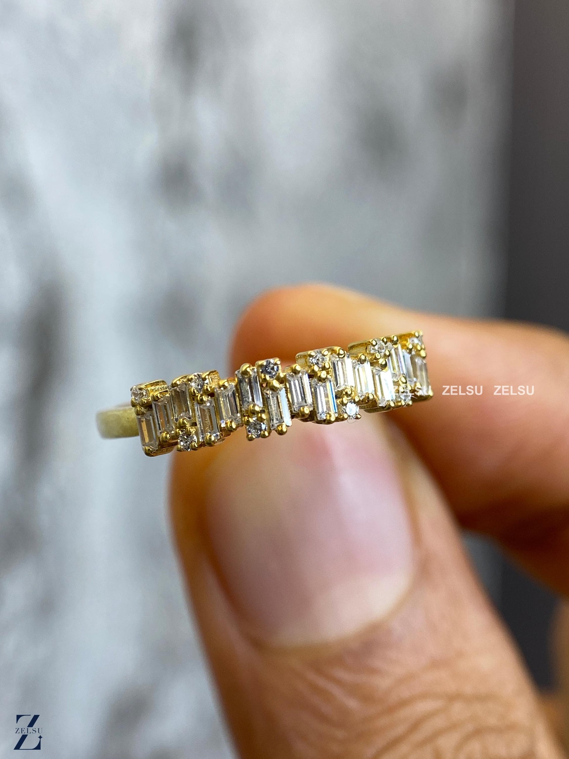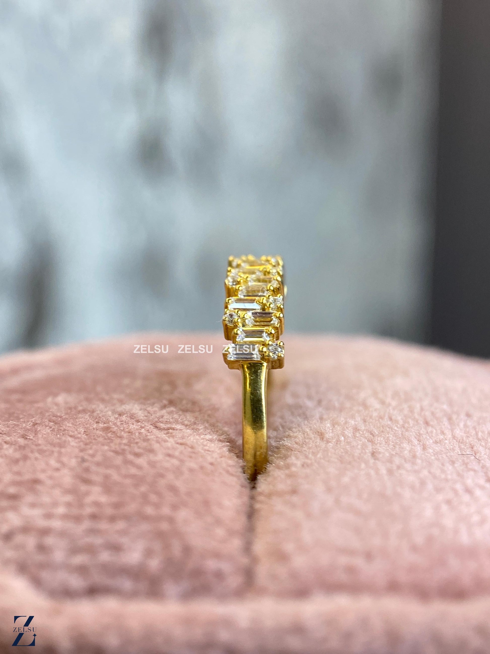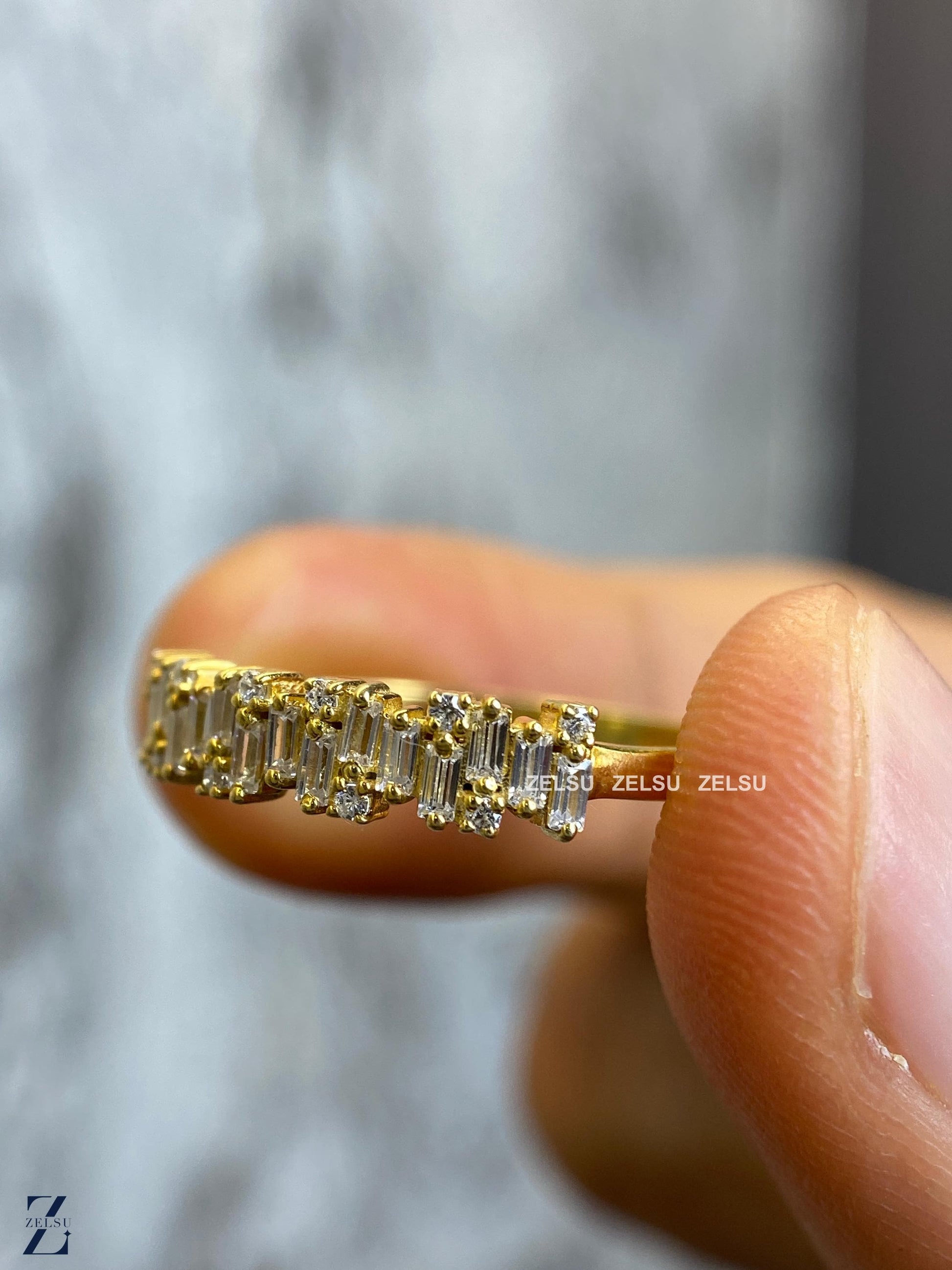 Baguette And Round Lab Diamond Half Eternity Band / Conflict Free Diamond Bridal Set Matching Band / Lab Grown Diamond Anniversary Gift Band, baguette diamond ,baguette ring ,baguette wedding ,conflict free ring ,half eternity band ,lab created diamond ,lab diamonds ring ,lab grown diamond ,matching band ,round diamond band ,stackable band ,wedding band, Lab-Grown Diamond Jewelry By Zelsu Diamond, Handmade Fine Jewelry for Women, Artisan Jewelry By Zelsu Diamond
