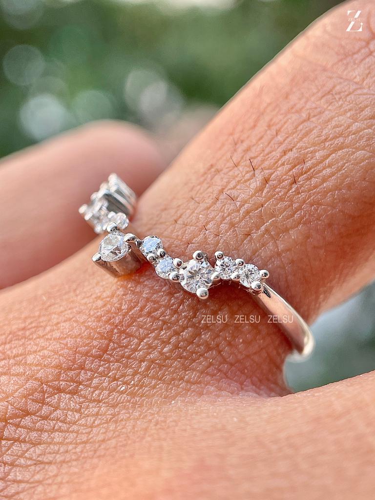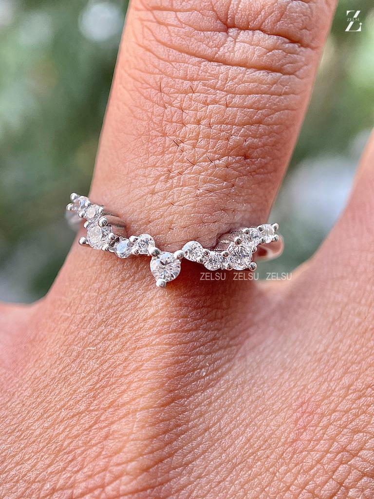 Curved Diamond Wedding Band, Thin Lab Grown Diamond Band for Women, Elegant Bridal Ring, Custom Stacking Band in White Gold, diamond thin band, curved band, curved wedding band, custom ring, bridal ring, diamond band, elegant ring,lab diamond, lab grown diamond, stacking band, wedding band, bridal band, white gold band, Handmade Fine Jewelry for Women, Artisan Jewelry By Zelsu Diamond