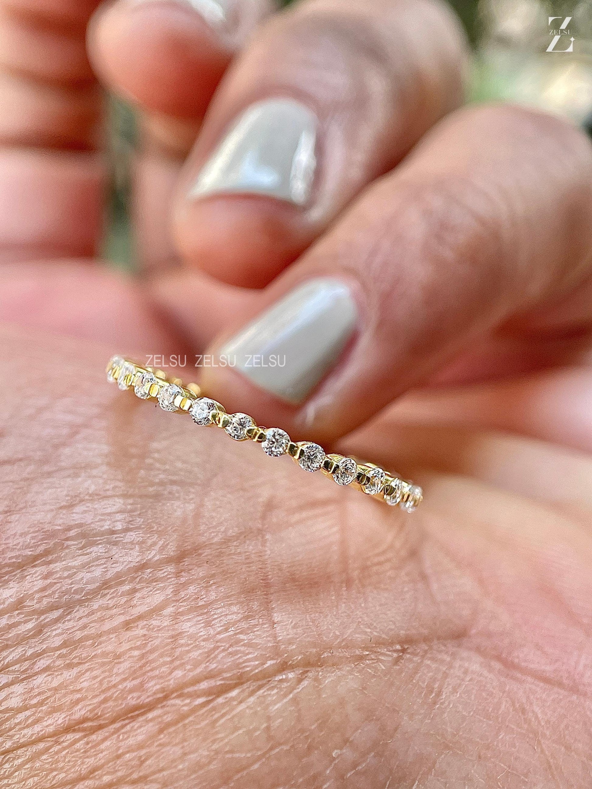 Floating Bubble Wedding Band, 0.50 TCW Round Lab Grown Diamond Band, Full Eternity Band, Matching/Stackable Band, Gift for Her, Wedding Band, floating bubble band, bubble eternity band, full eternity band, distance pave band, matching band, lab created diamond, lab grown diamond, round diamond band, stackable band, wedding band, anniversary gifts, engagement ring, Lab-Grown Diamond Jewelry By Zelsu Diamond, Handmade Fine Jewelry for Women, Artisan Jewelry By Zelsu Diamond