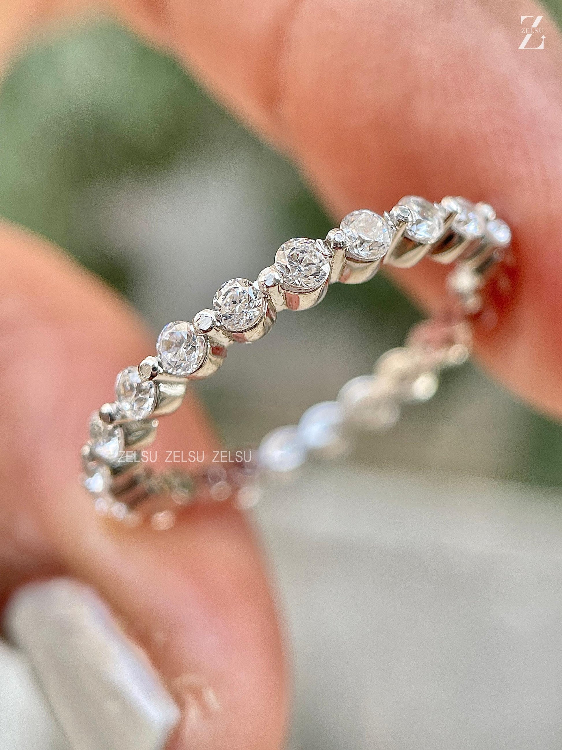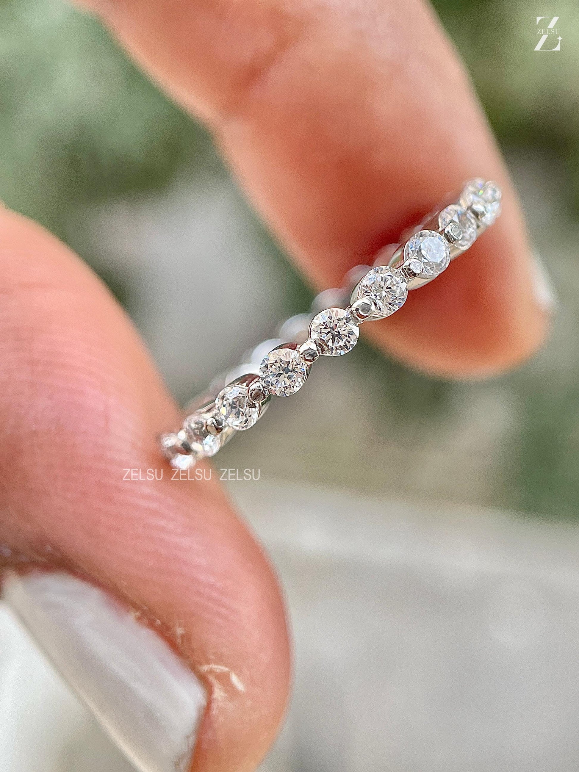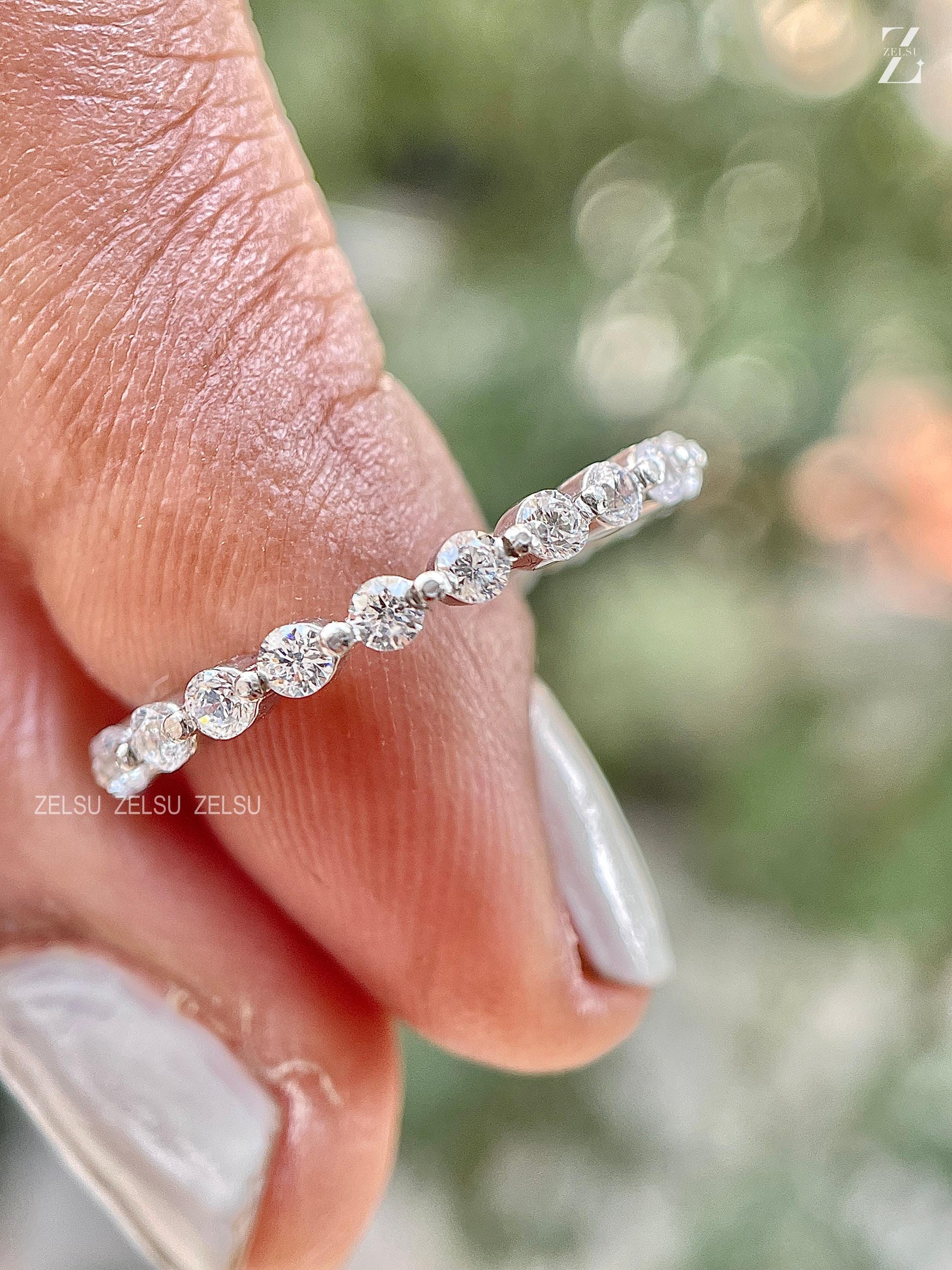Full Eternity Band, 2.00 MM Round Cut Lab Grown Diamond Wedding Band, Minimalist Lab Created Diamond Band, Bubble Prong Set, Bridal Ring Set,full eternity band, matching band, lab created diamond, floating bubble band, bubble prong band, cvd diamond band, single prong band, lab grown diamond, minimalist band, zelsu diamond, diamond wedding band, round diamond band, mother's day gifts, Lab-Grown Diamond Jewelry By Zelsu Diamond, Handmade Fine Jewelry for Women, Artisan Jewelry By Zelsu Diamond