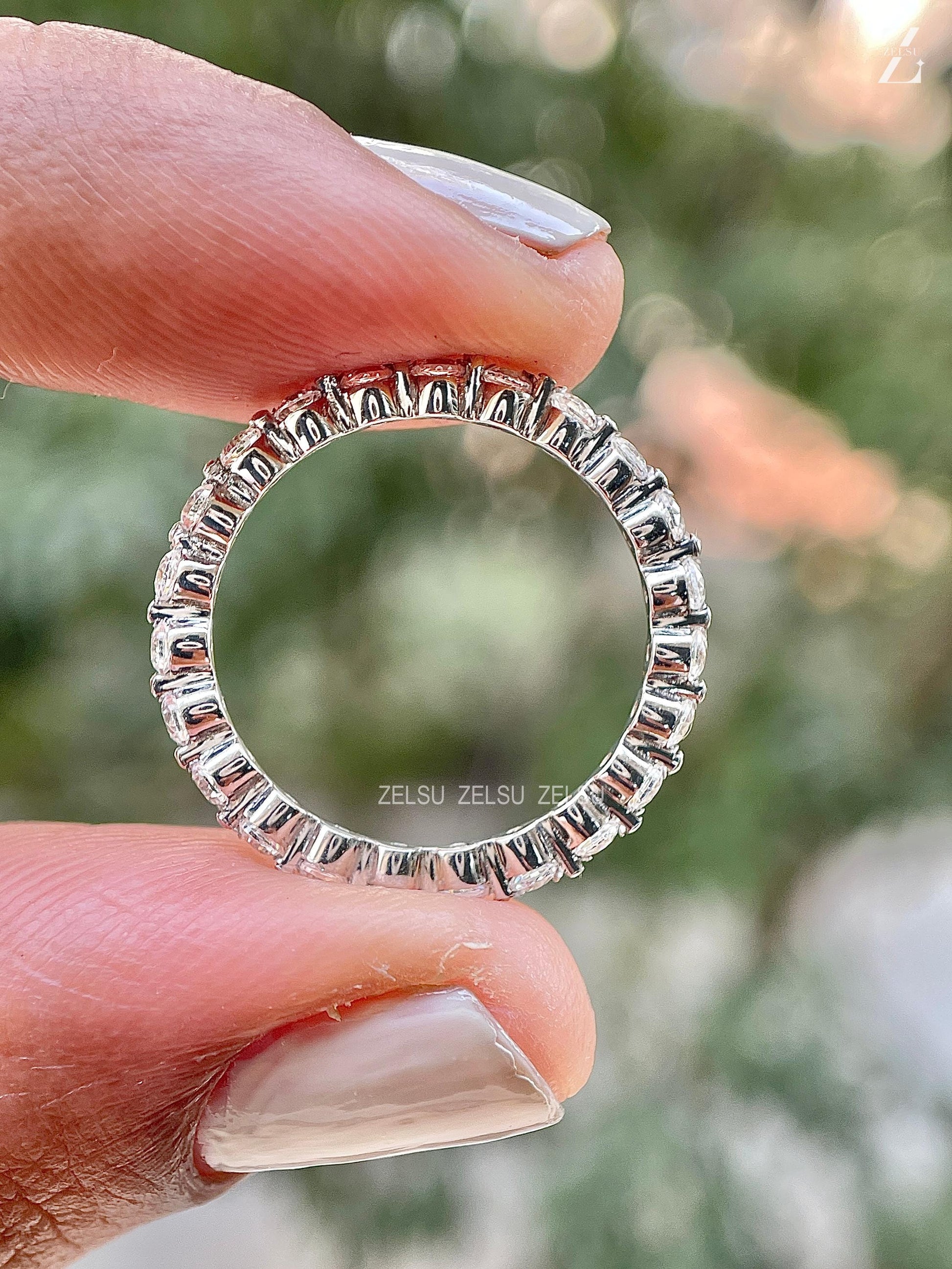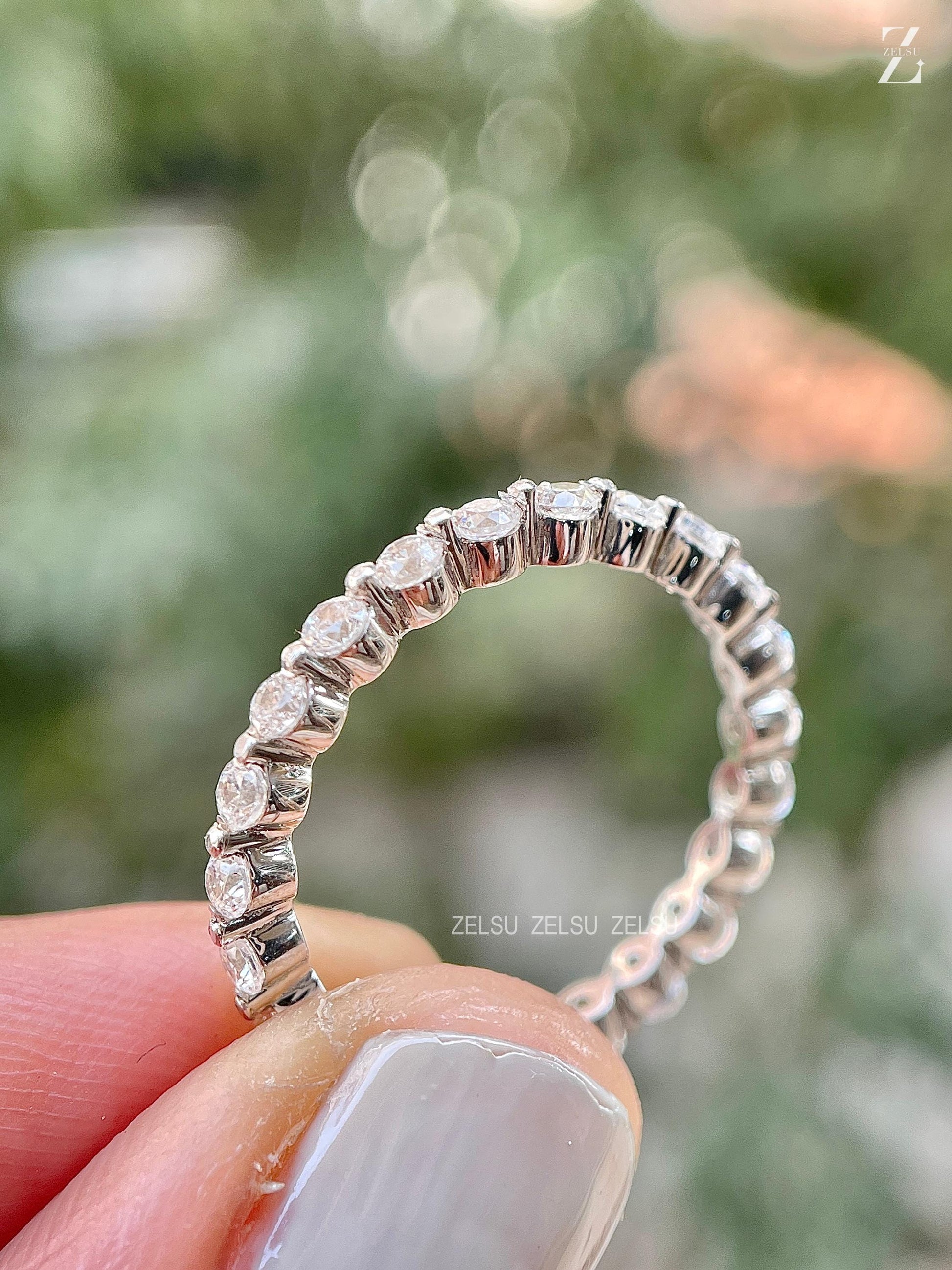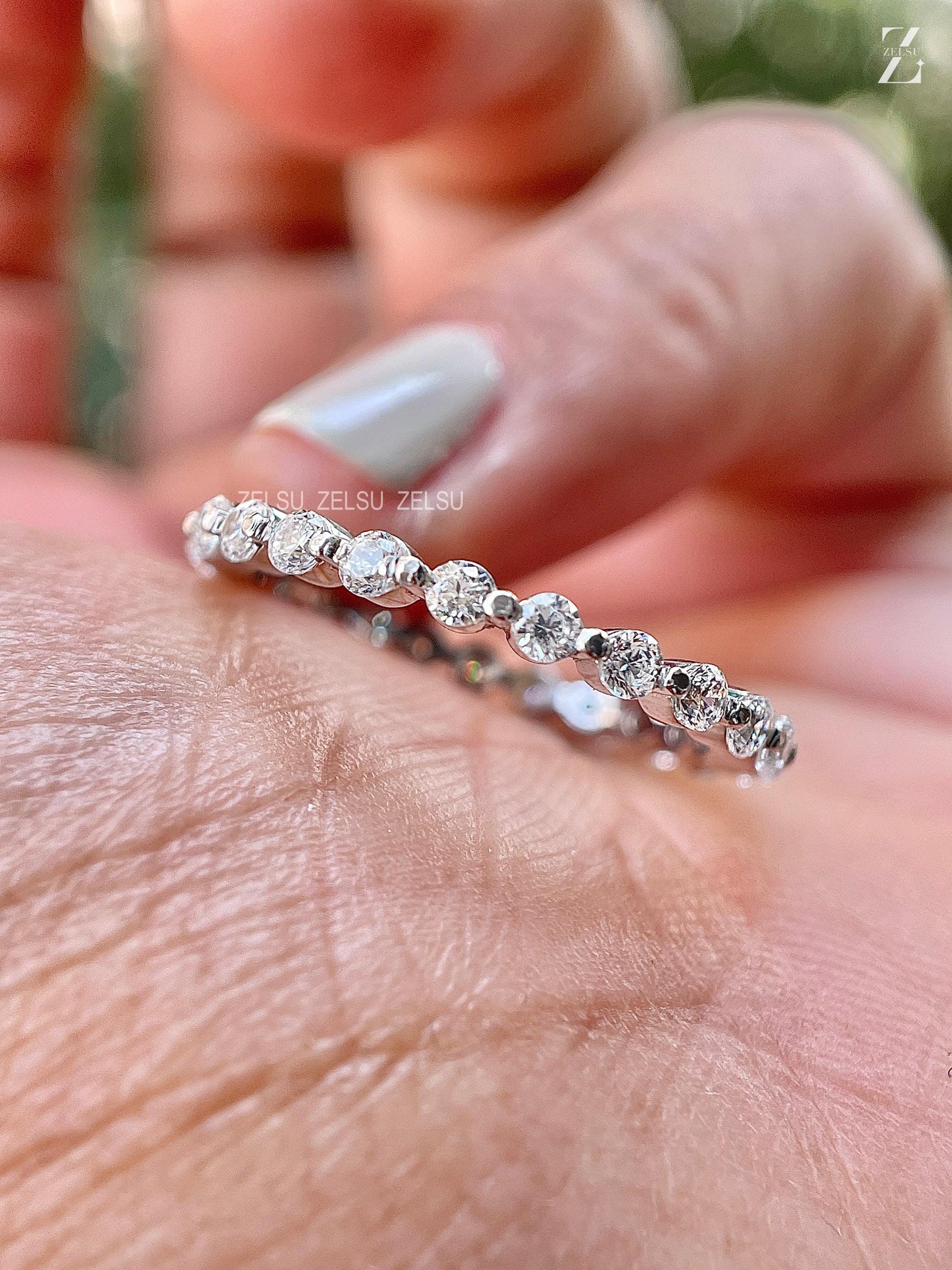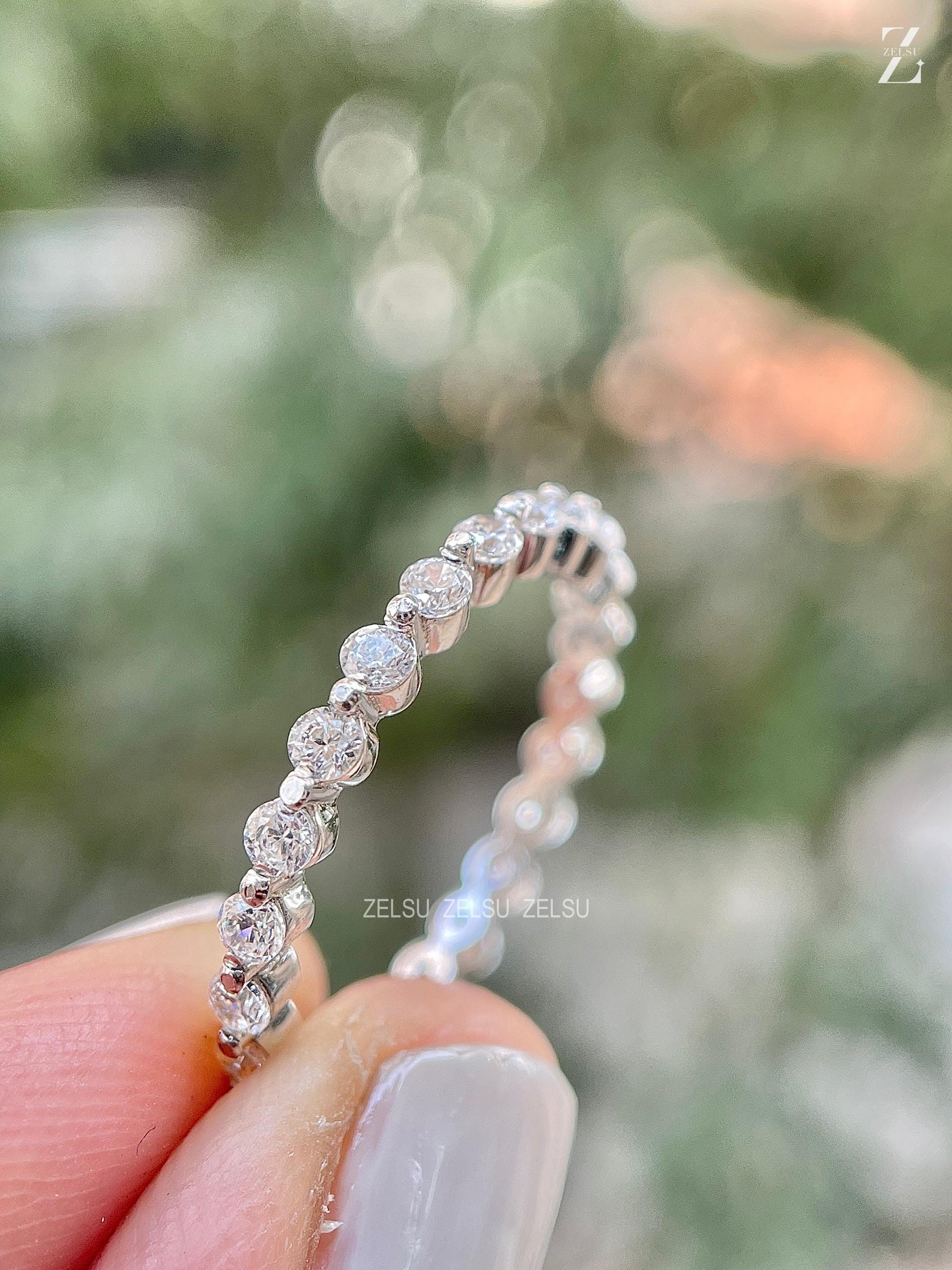 Full Eternity Band, 2.00 MM Round Cut Lab Grown Diamond Wedding Band, Minimalist Lab Created Diamond Band, Bubble Prong Set, Bridal Ring Set,full eternity band, matching band, lab created diamond, floating bubble band, bubble prong band, cvd diamond band, single prong band, lab grown diamond, minimalist band, zelsu diamond, diamond wedding band, round diamond band, mother's day gifts, Lab-Grown Diamond Jewelry By Zelsu Diamond, Handmade Fine Jewelry for Women, Artisan Jewelry By Zelsu Diamond