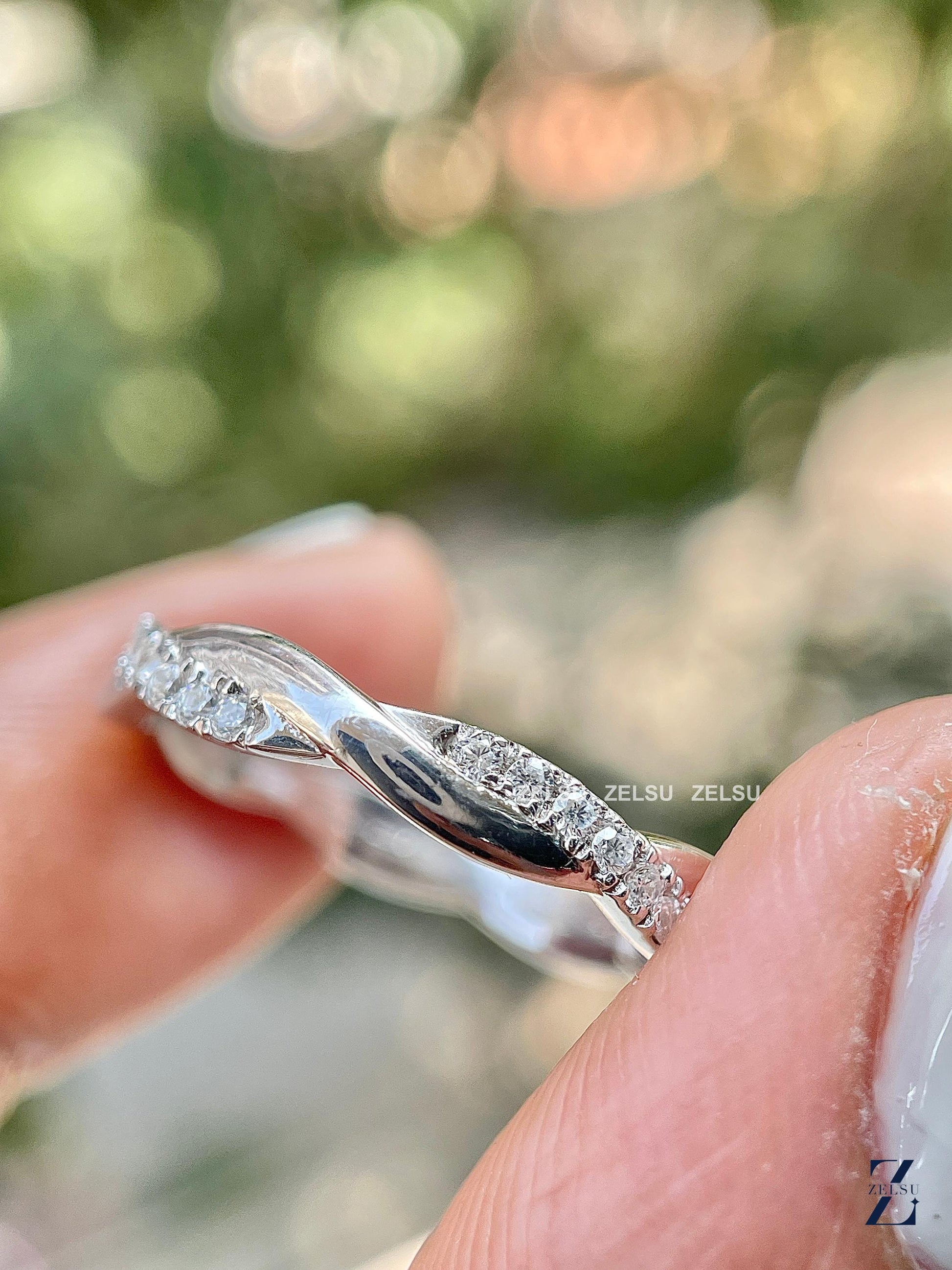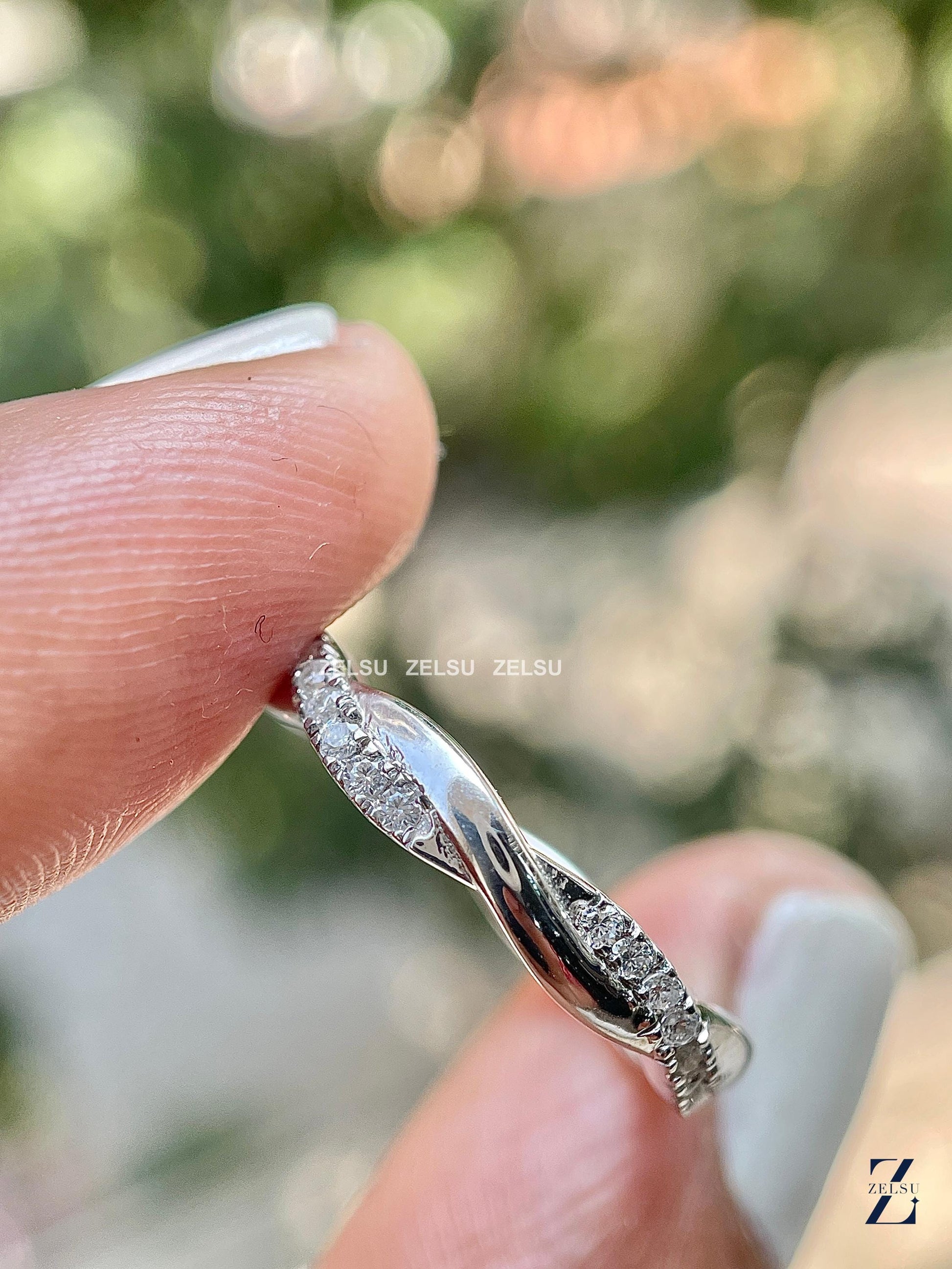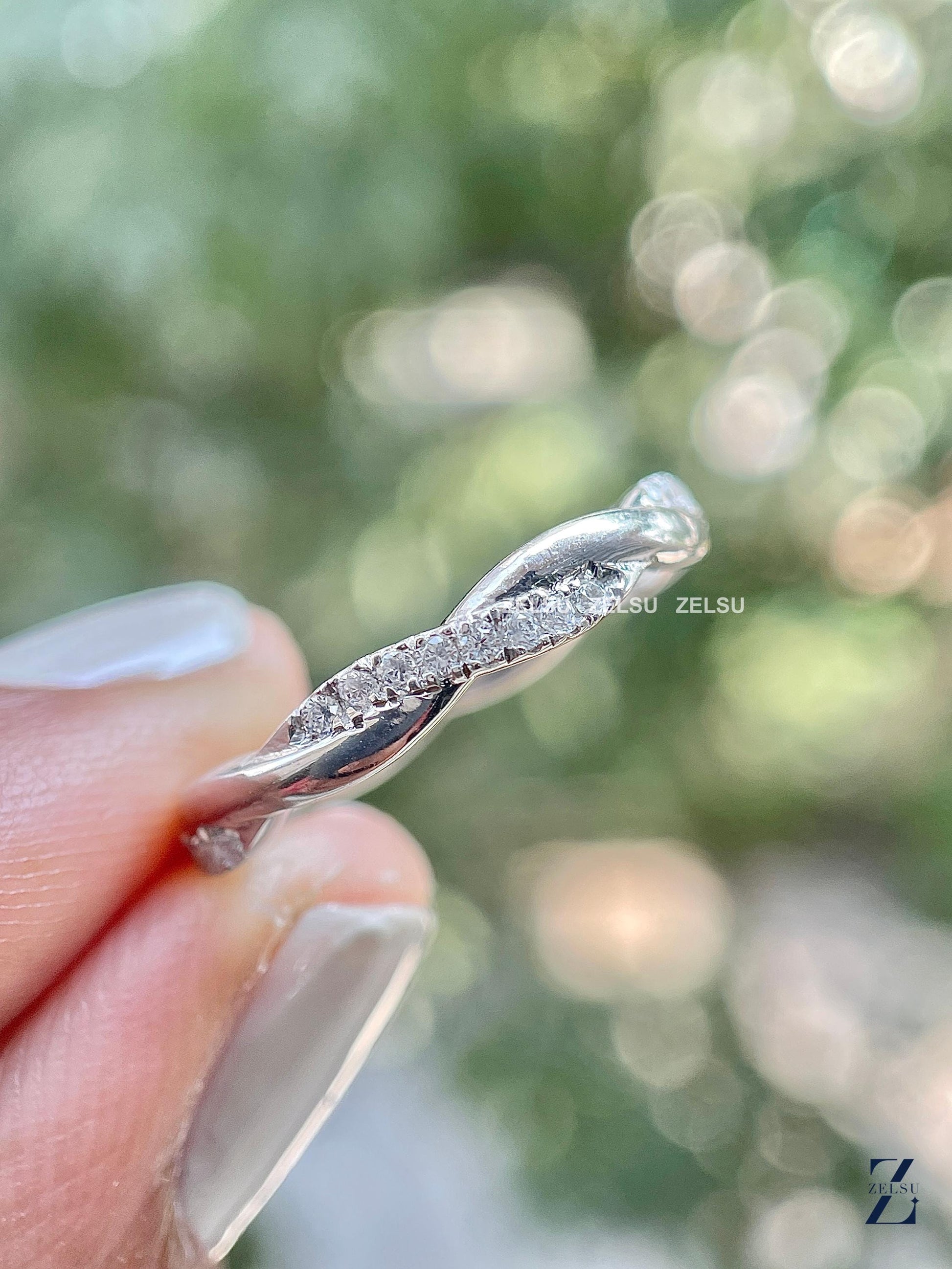 Full Eternity Band, Infinity Twist Pave 0.14TW Round Lab Grown Diamond Wedding Band, Twisted Matching Band, Stackable Band, Anniversary Gift, lab created diamond, twisted stackable band, pave band, engagement ring, lab diamond band, eternity band, cvd diamond band, round diamond, wedding band, matching band, anniversary gifts, christmas jewelry, ring for women, Handmade Fine Jewelry for Women, Artisan Jewelry By Zelsu Diamond