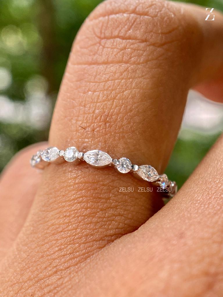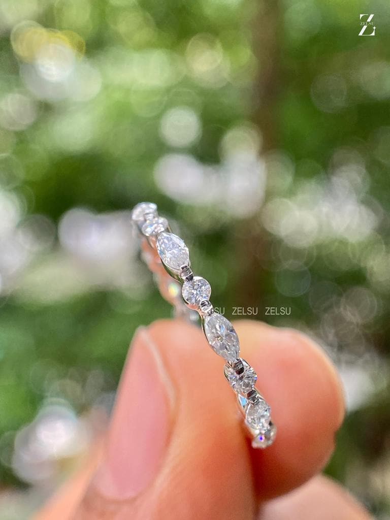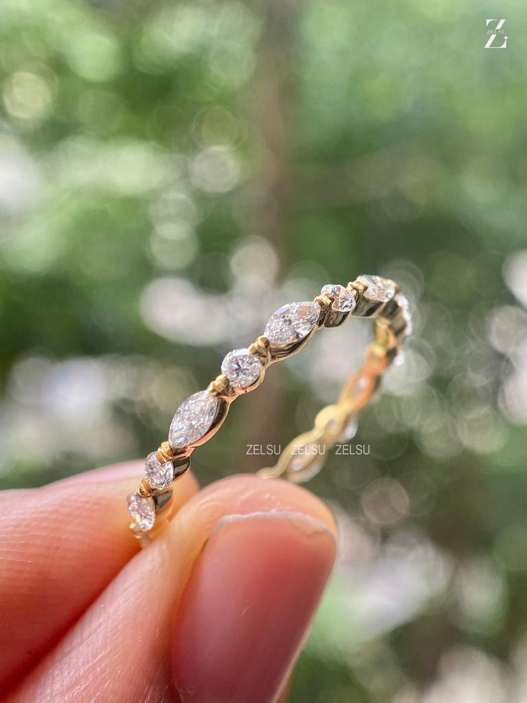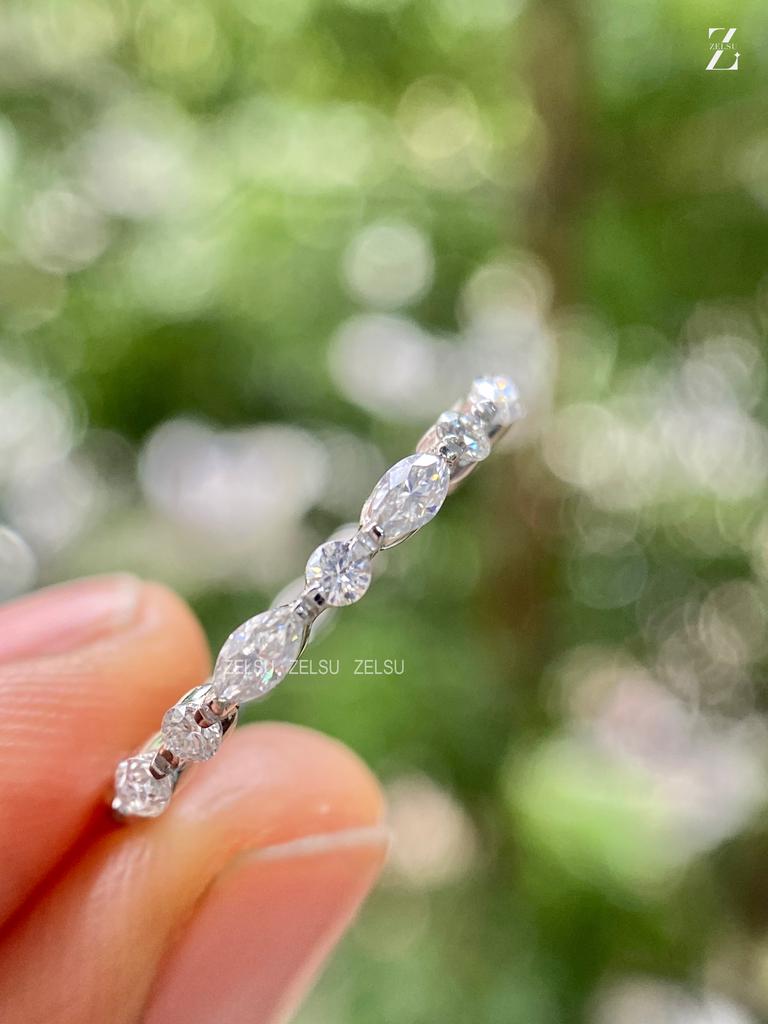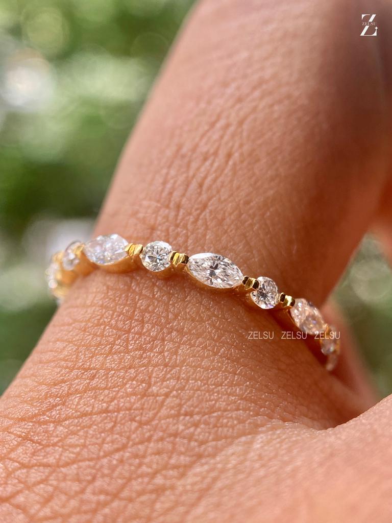 Marquise and Round Diamond Band, Lab Grown Diamond Wedding Band, Floating Bubble Band, Stackable Band, Full Eternity Band, Wedding Band, floating bubble band, full eternity band, marquise diamond, eternity band, lab created diamond, diamond wedding band, lab grown diamond, round diamond band, stackable band, wedding band, anniversary gift, engagement ring, Handmade Fine Jewelry for Women, Artisan Jewelry By Zelsu Diamond