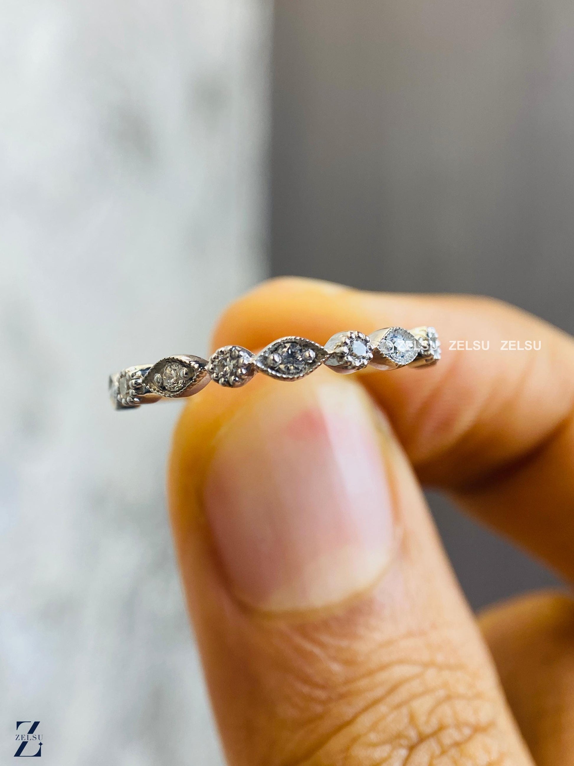 Milgrain diamond wedding band vintage art deco, 14k rose gold marquise ring, Lab Grown eternity matching stacking, Lab Created Wedding Band, alternative band, bridal ring ,diamond ring ,gift for her ,matching band, personalized ring , zelsu diamond, simple design, unique dainty ring, vintage style ring, wedding band ,white gold band, Lab-Grown Diamond Jewelry By Zelsu Diamond, Handmade Fine Jewelry for Women, Artisan Jewelry By Zelsu Diamond