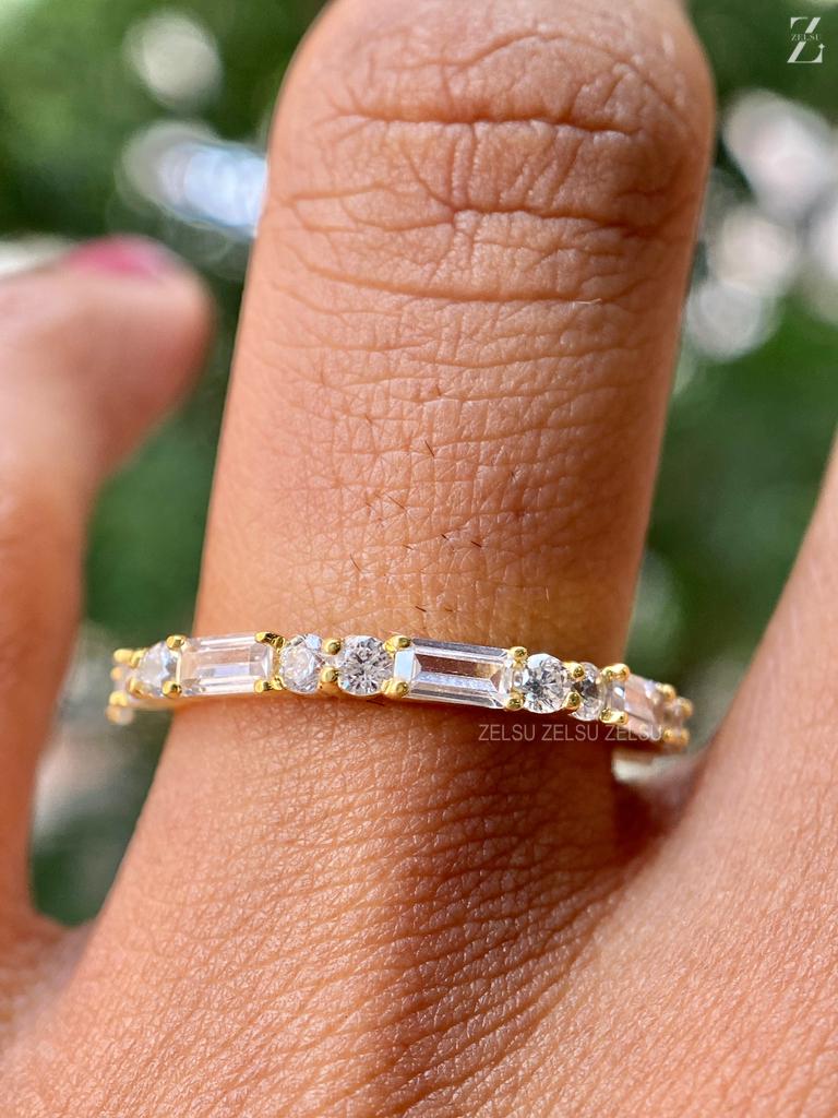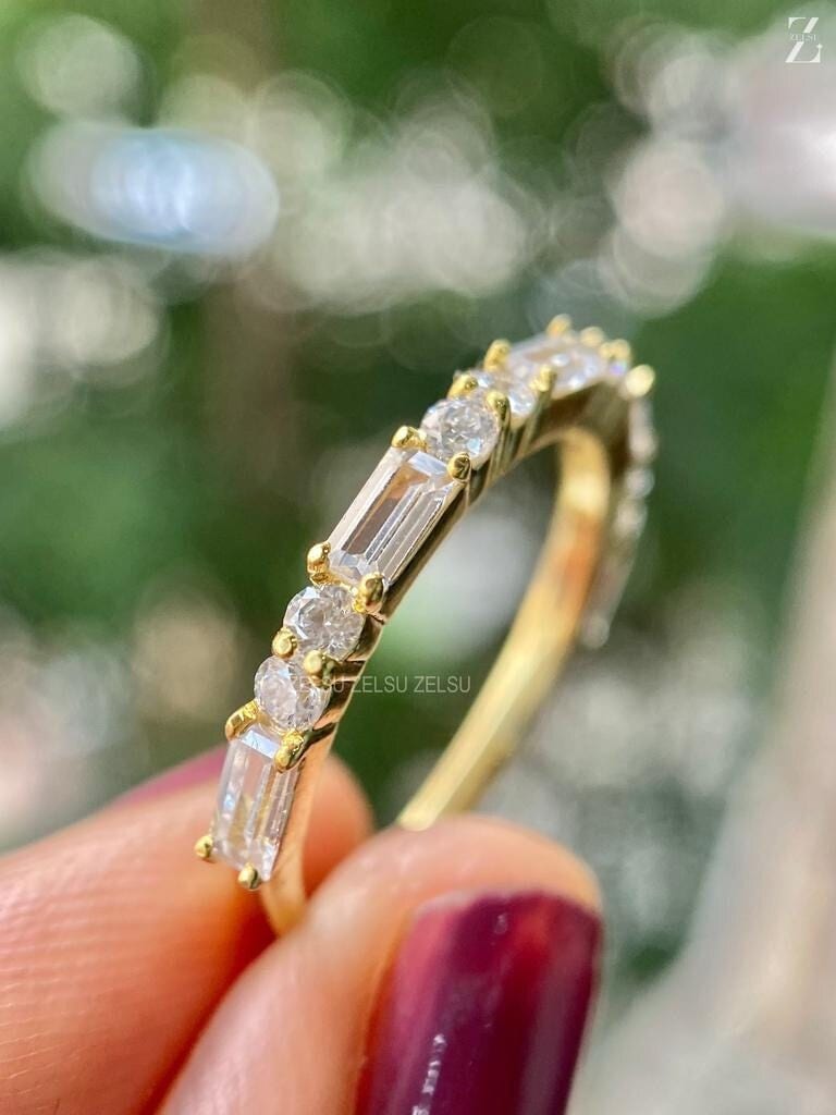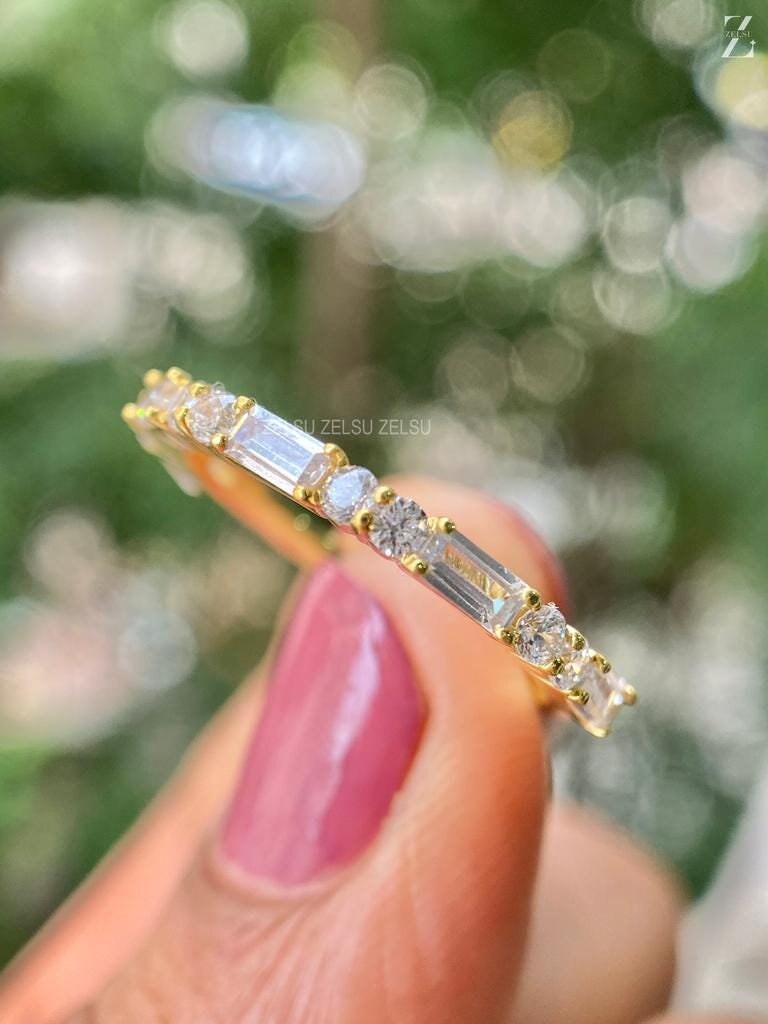 Real Lab Grown Diamond Baguette Half Eternity Band Dainty Stacking Ring Women Minimalist Baguette Solitaire Band 14k Solid Gold Band for Her, dot dash band, alternative diamond, delicate bridal ring, half eternity ring, lab create diamond, 14k solid gold ring, birthday gift ring, easter day gift, lab grown diamond, promise ring band, stacking band ring, wedding band, white gold ring,Lab-Grown Diamond Jewelry By Zelsu Diamond, Handmade Fine Jewelry for Women, Artisan Jewelry By Zelsu Diamond