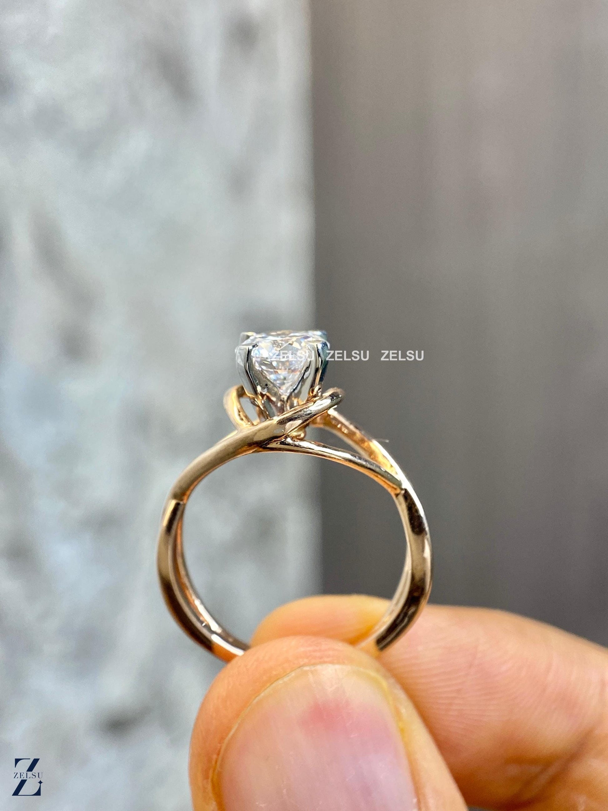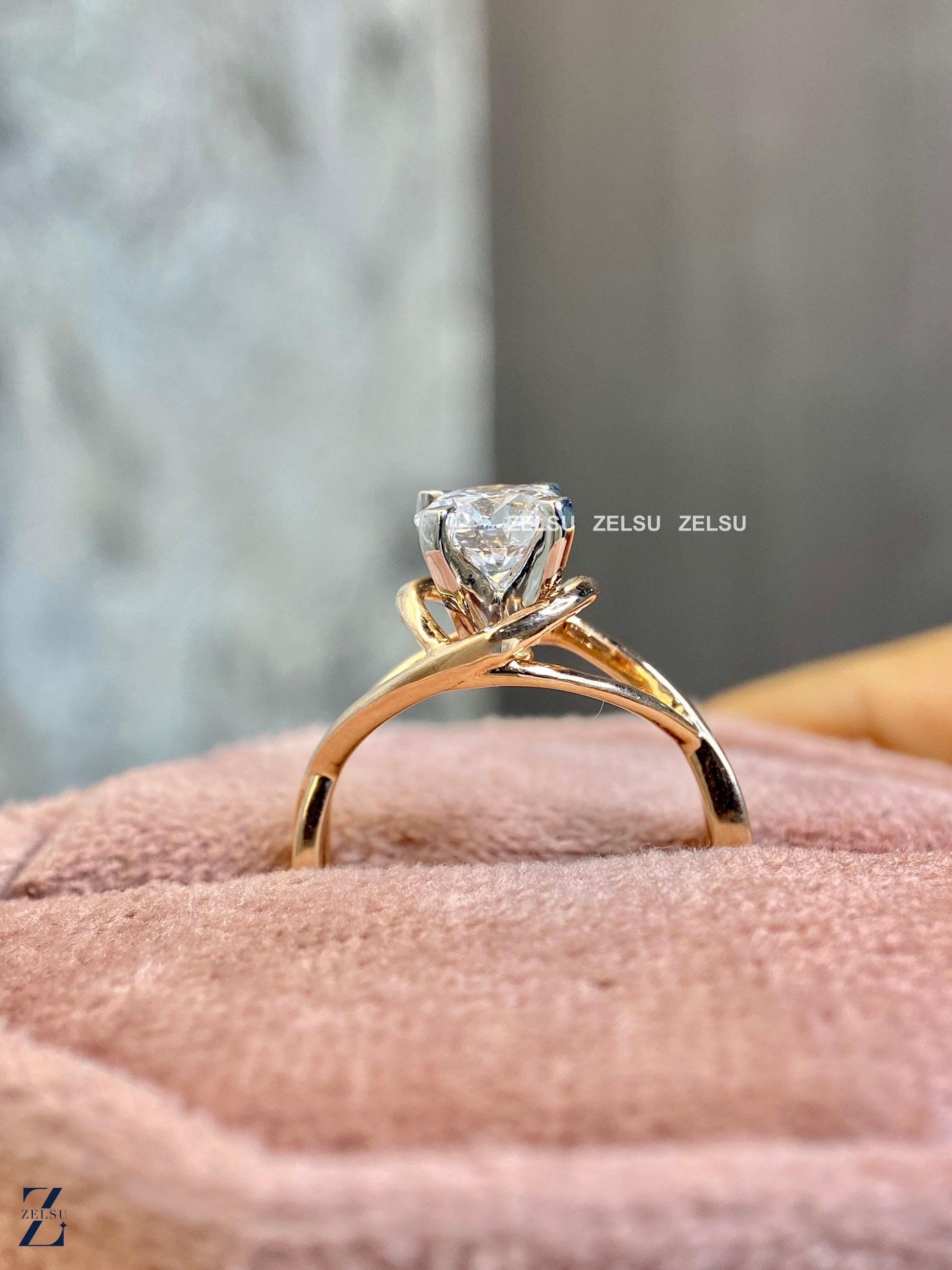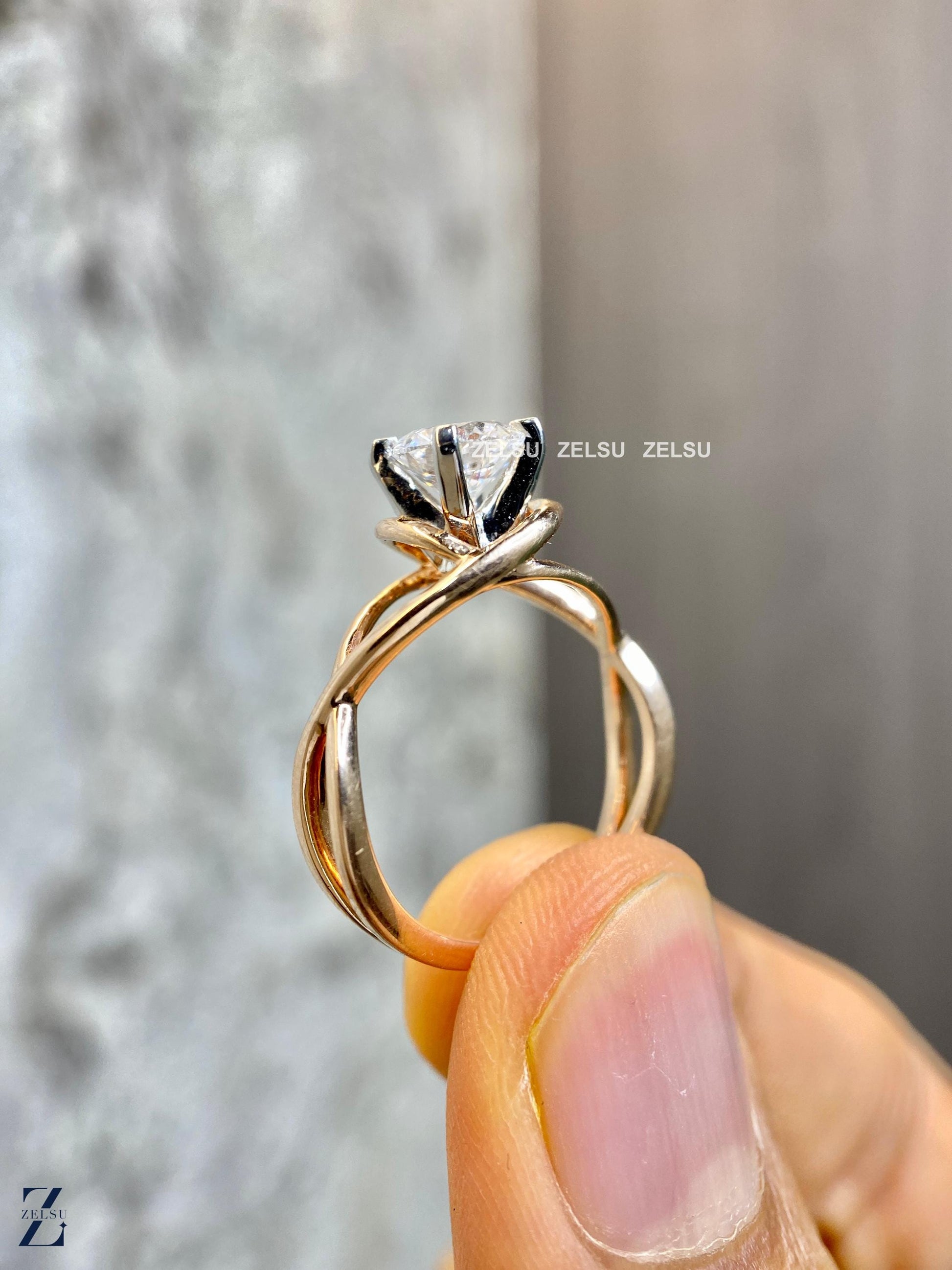 Solitaire Engagement ring, 1.0CT Round Cut Lab Grown Diamond Wedding Ring, 14K Twisted Band, Promise Ring, Lab Grown Diamond Ring, Solitaire Ring, engagement ring, wedding ring, twisted ring, round cut ring, lab created ring, lab grown diamond, promise ring, statement ring, solitaire engagement, zelsu diamond, art deco ring, Lab-Grown Diamond Jewelry By Zelsu Diamond, Handmade Fine Jewelry for Women, Artisan Jewelry By Zelsu Diamond