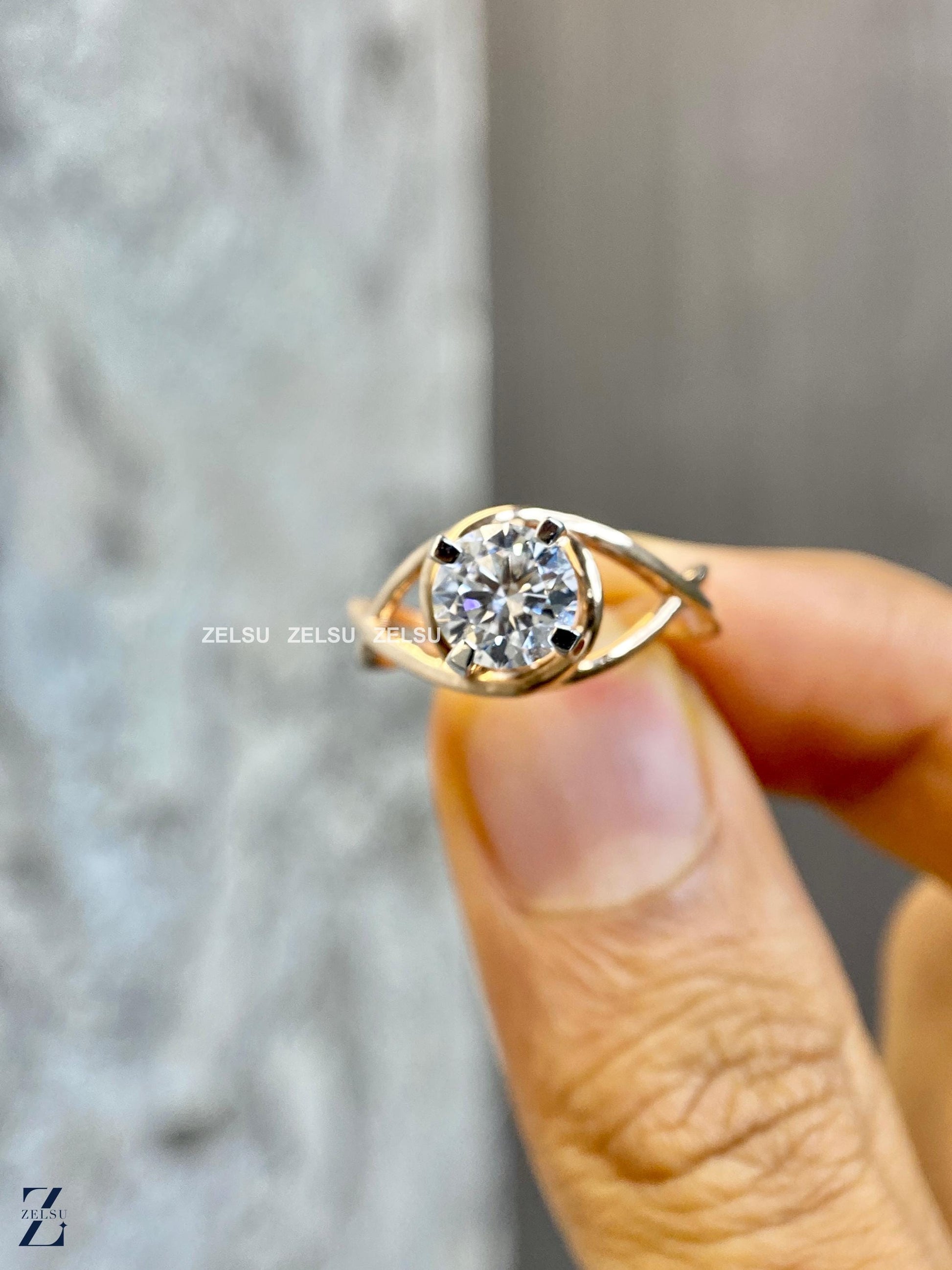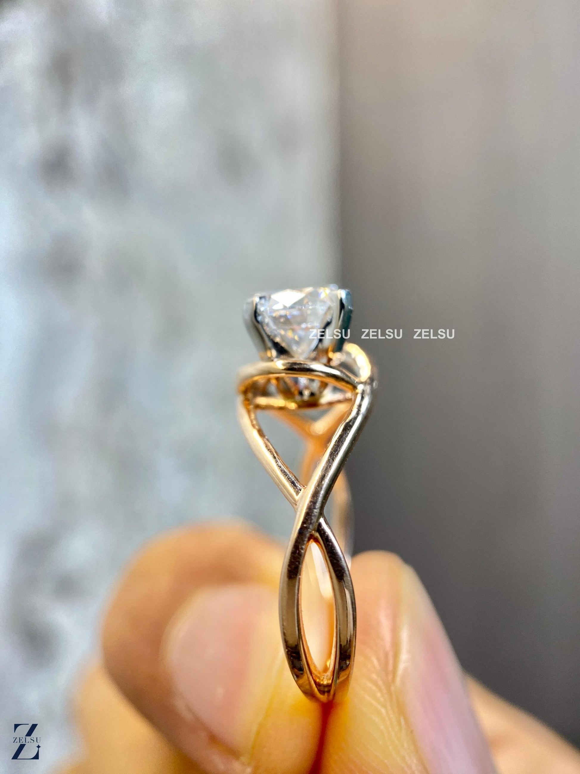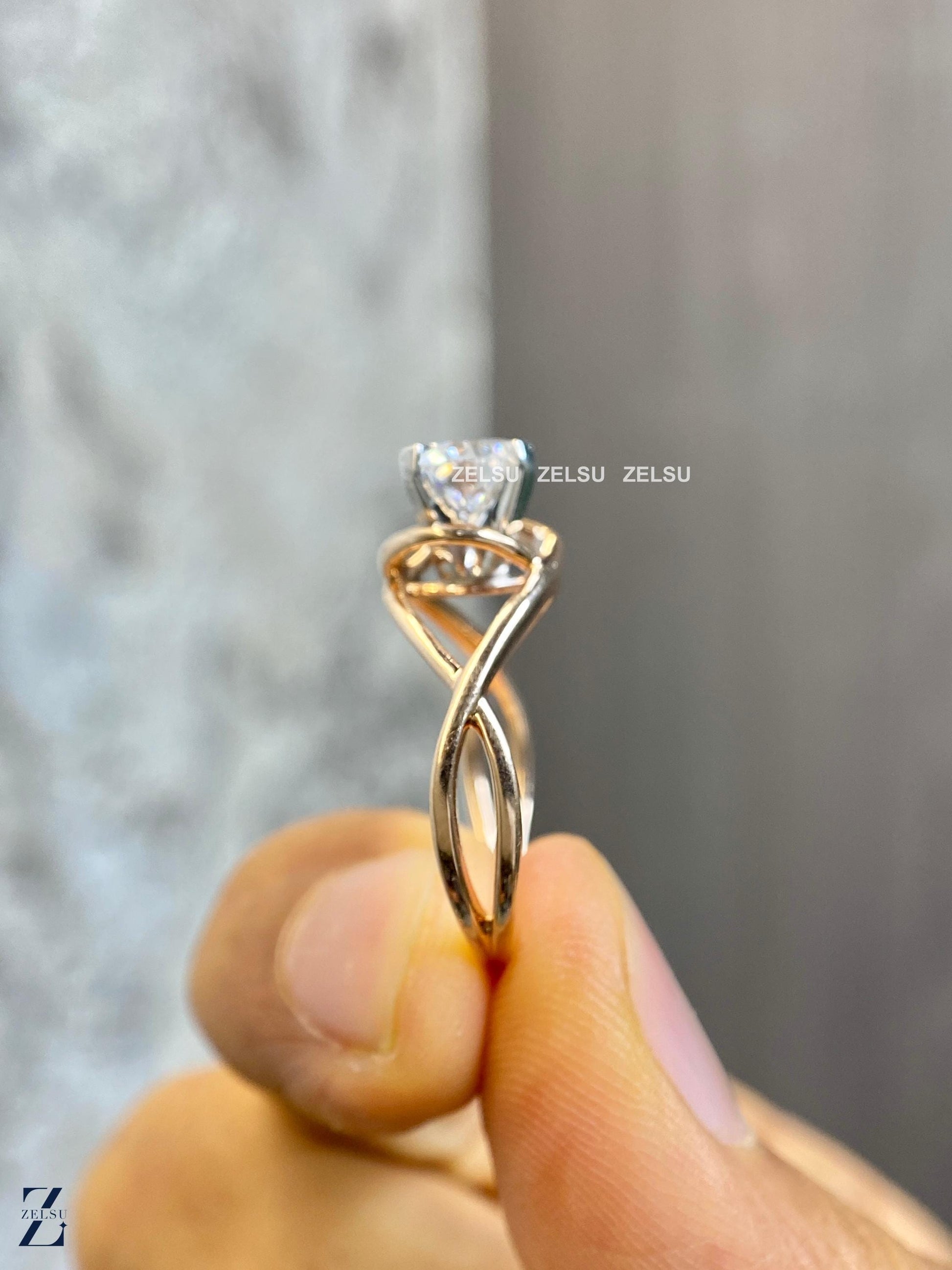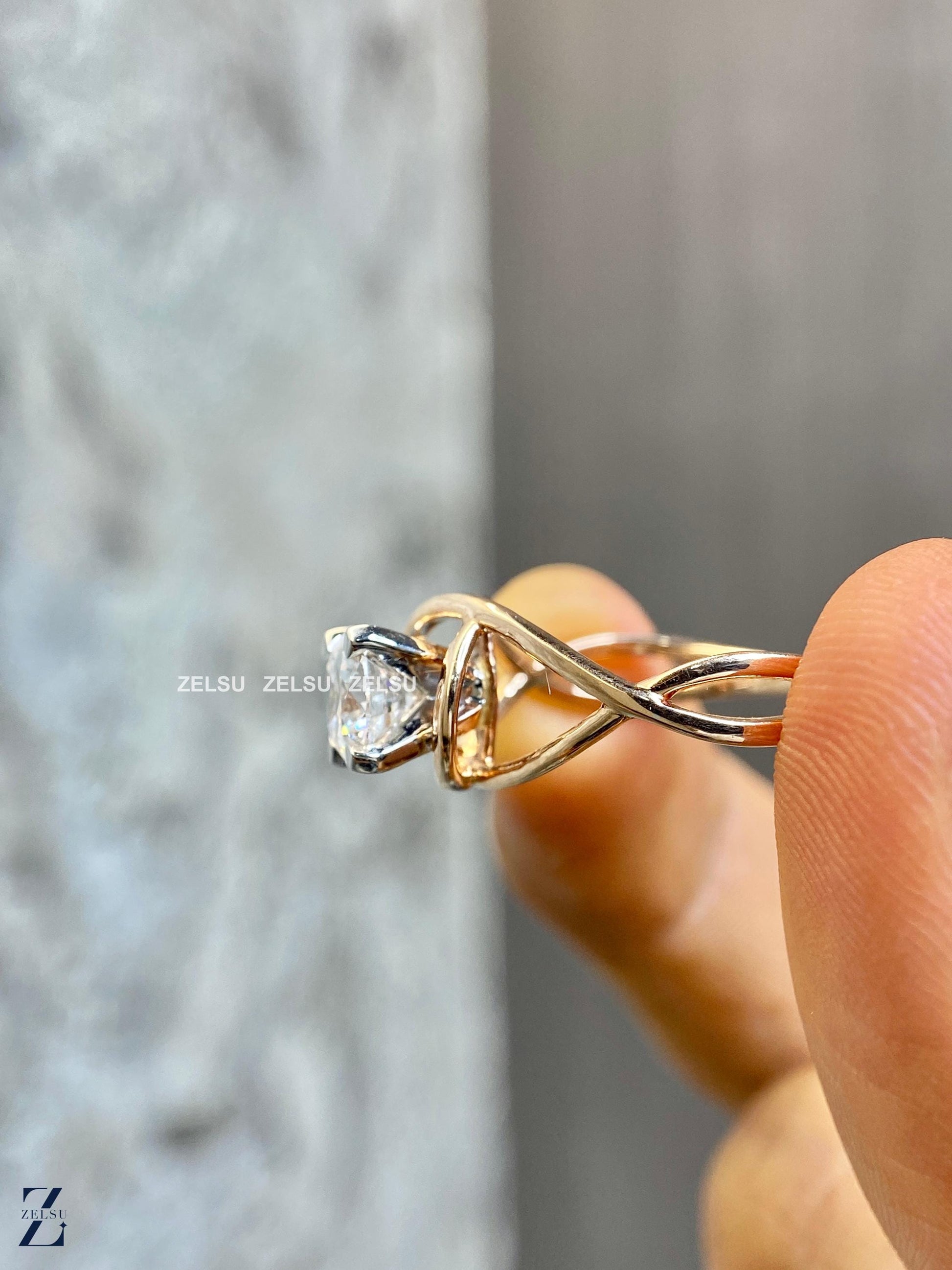Solitaire Engagement ring, 1.0CT Round Cut Lab Grown Diamond Wedding Ring, 14K Twisted Band, Promise Ring, Lab Grown Diamond Ring, Solitaire Ring, engagement ring, wedding ring, twisted ring, round cut ring, lab created ring, lab grown diamond, promise ring, statement ring, solitaire engagement, zelsu diamond, art deco ring, Lab-Grown Diamond Jewelry By Zelsu Diamond, Handmade Fine Jewelry for Women, Artisan Jewelry By Zelsu Diamond