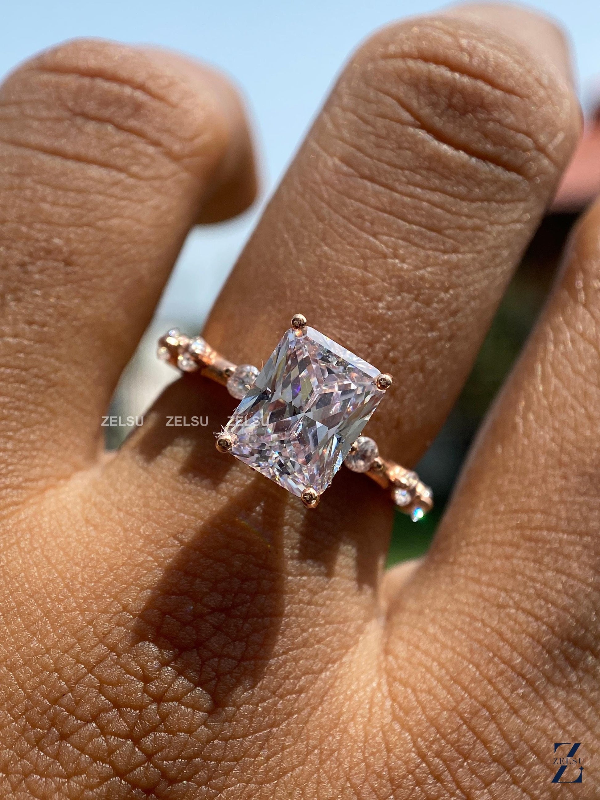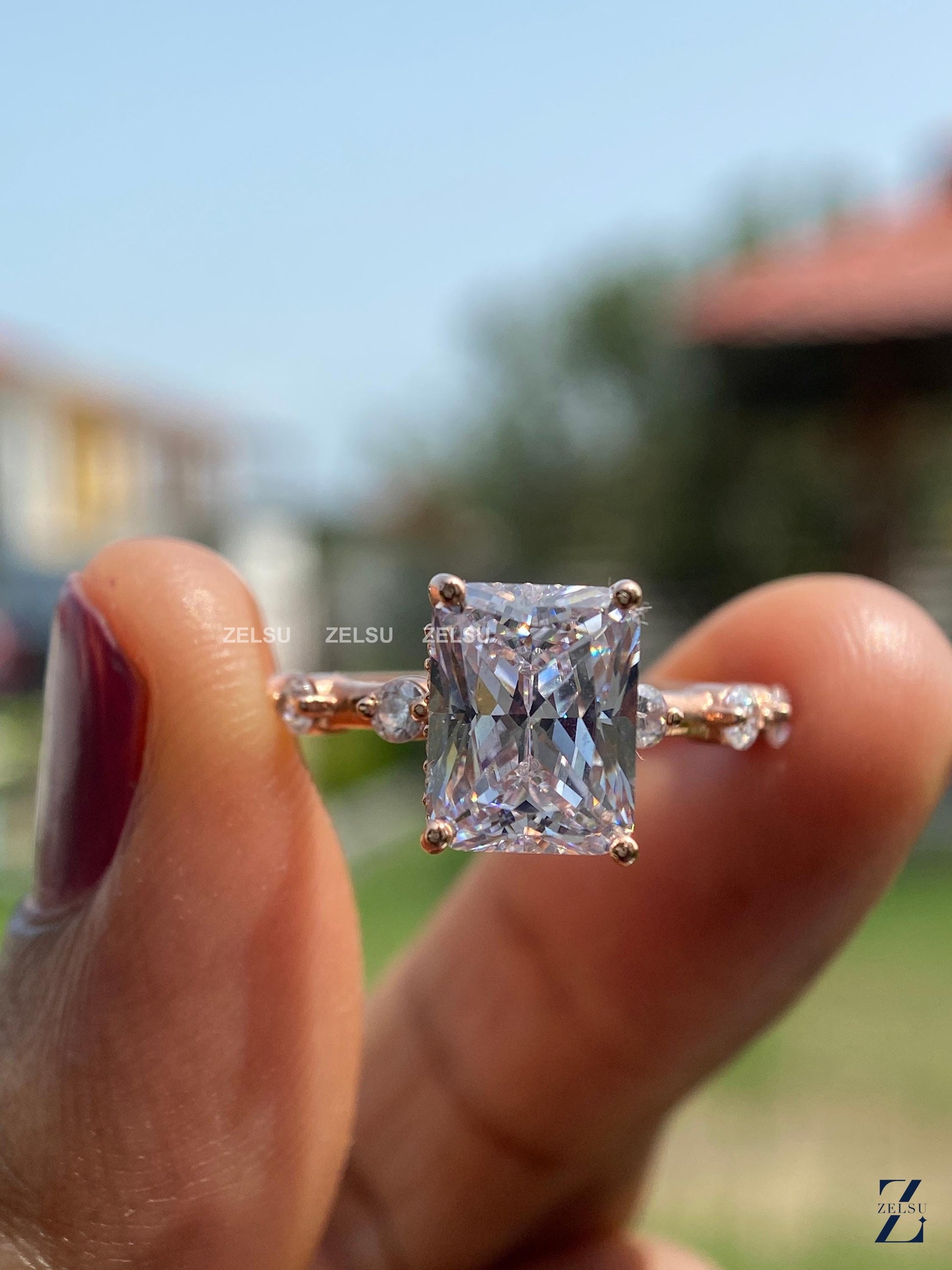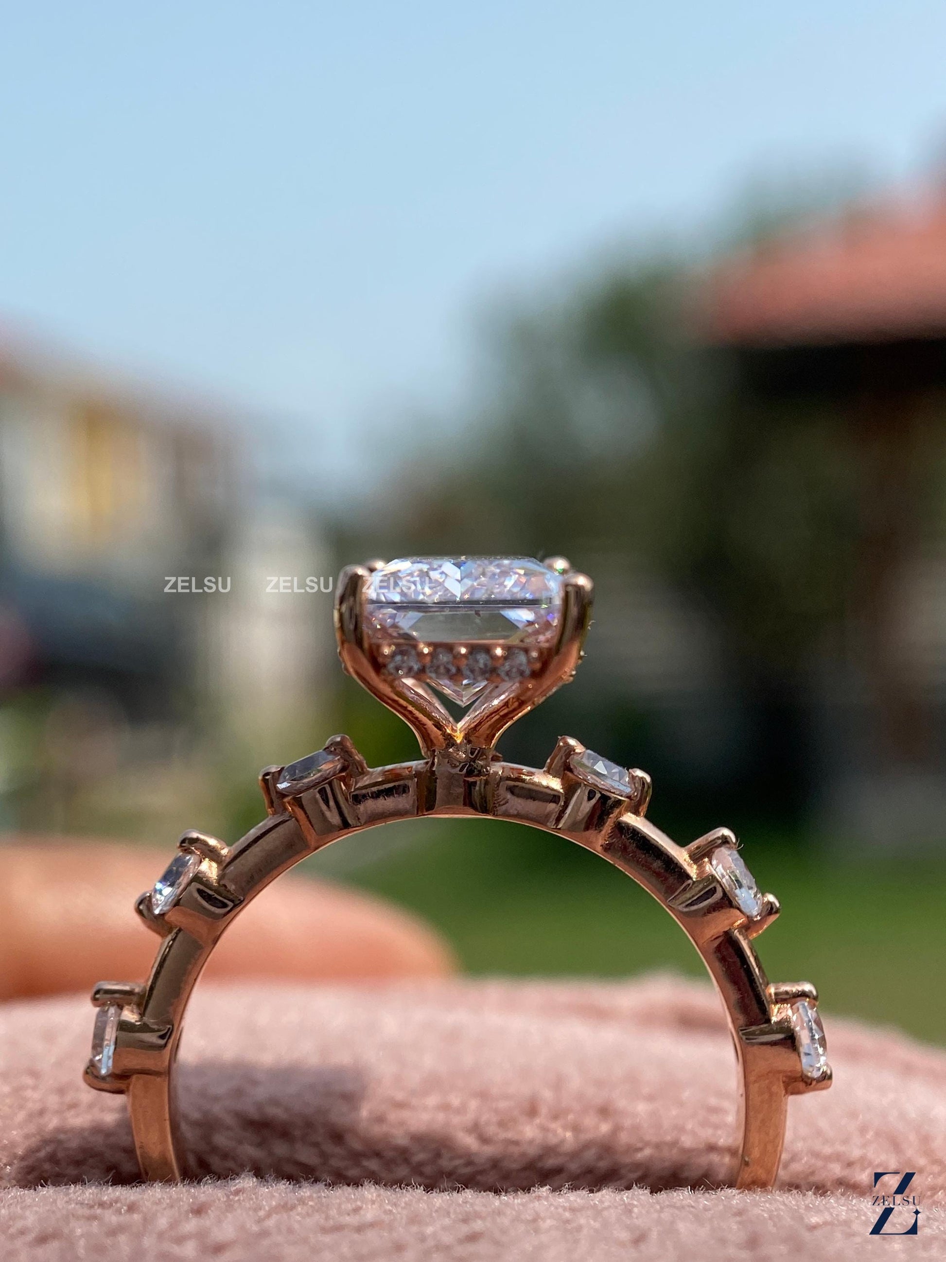 2 Carat Radiant Cut Lab Grown Diamond Hidden Halo Engagement Ring / Low Set Diamond Ring / Two Tone Ring / 2CT White and Yellow Gold Ring, low set ring,2 carat ,cvd diamond, hidden halo ,lab created diamond ,lab grown diamond ,low setting profile ,radiant, radiant diamond, solitaire ring, two tone ,white prongs, Lab-Grown Diamond Jewelry By Zelsu Diamond, Handmade Fine Jewelry for Women, Artisan Jewelry By Zelsu Diamond