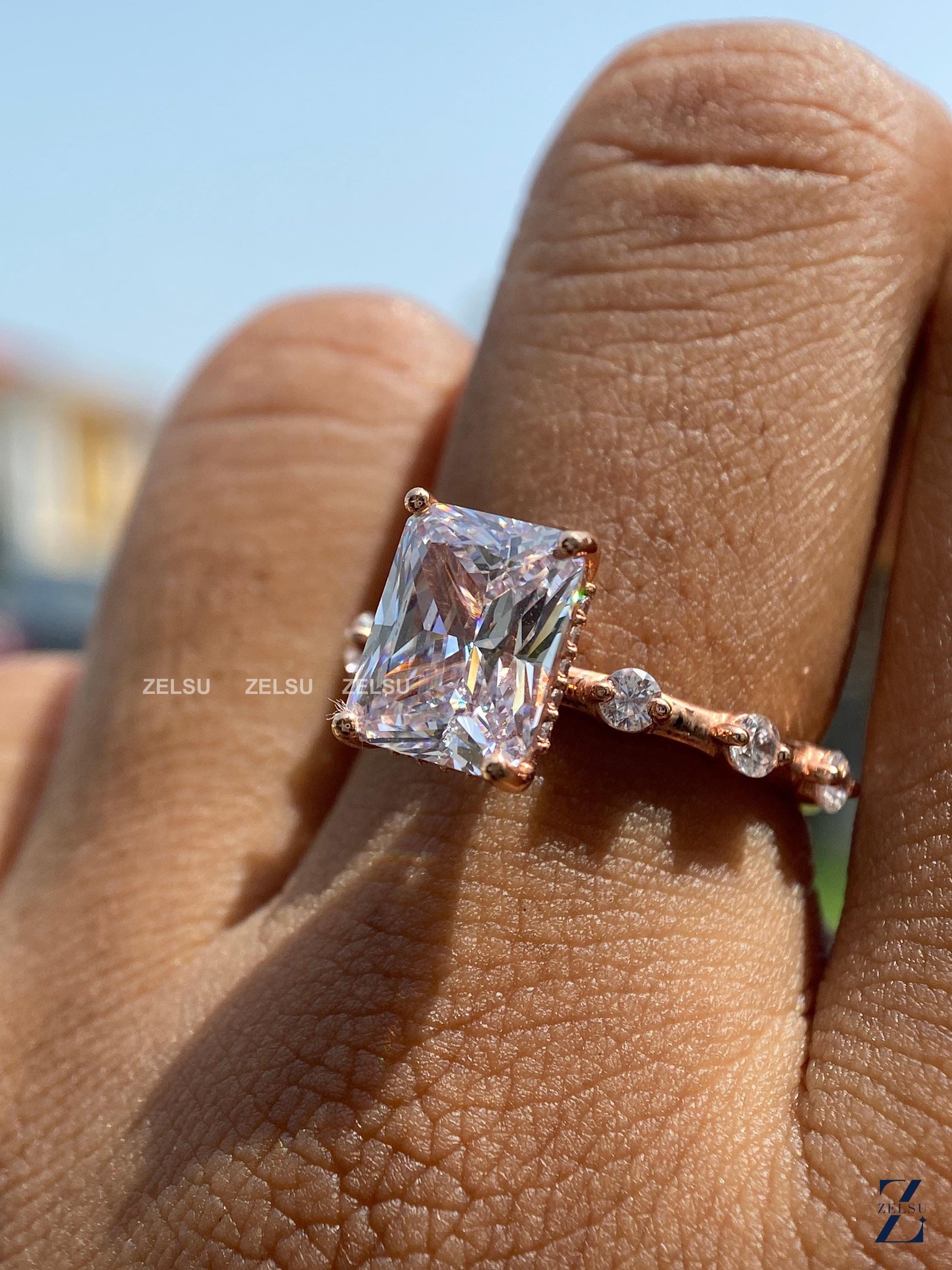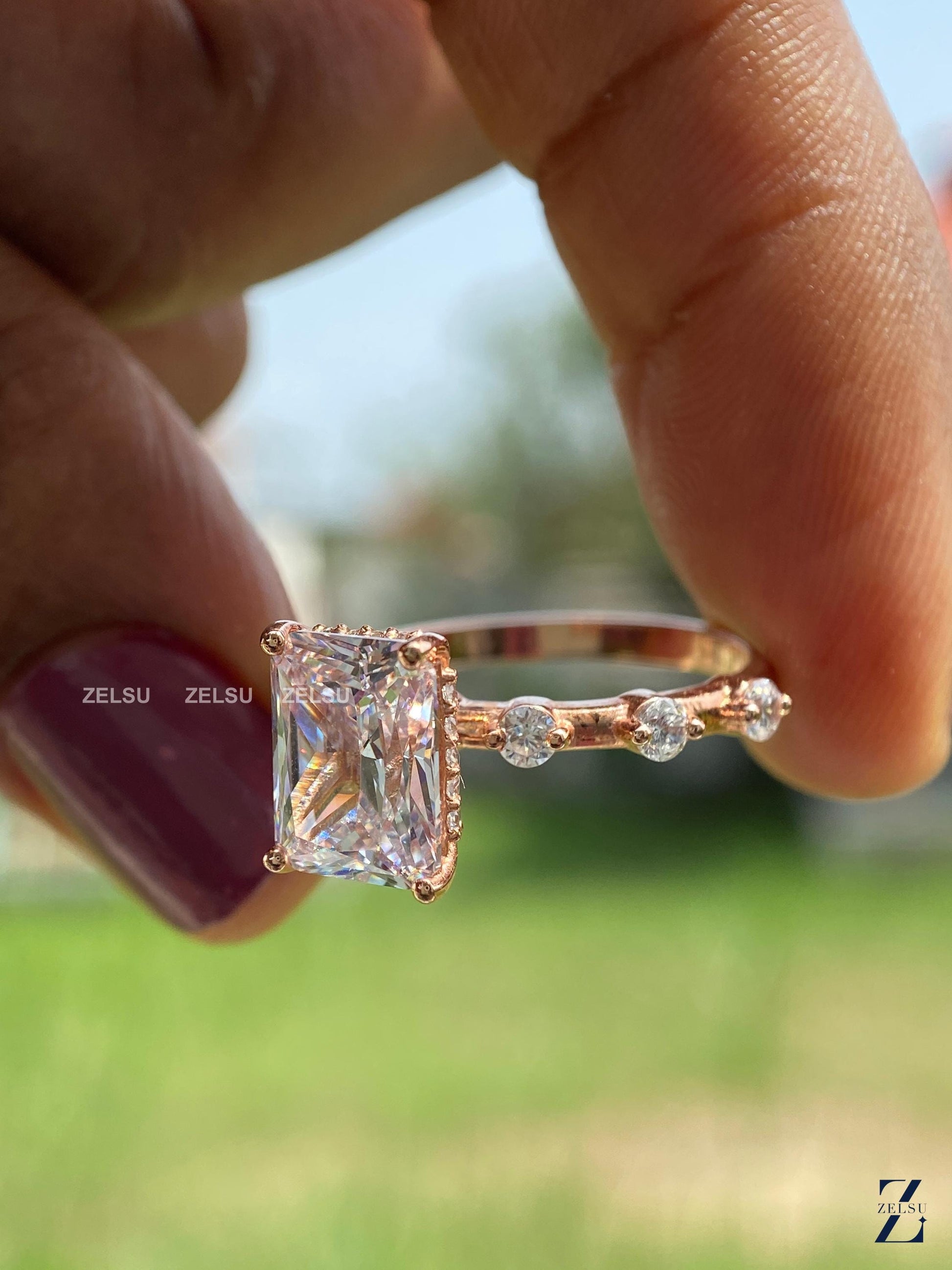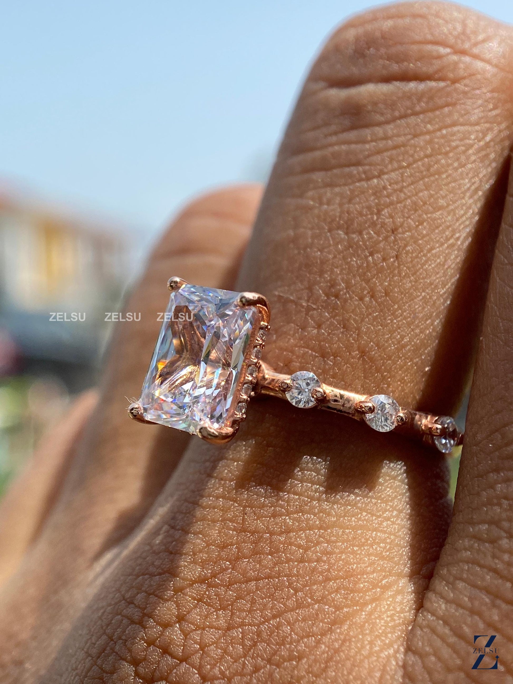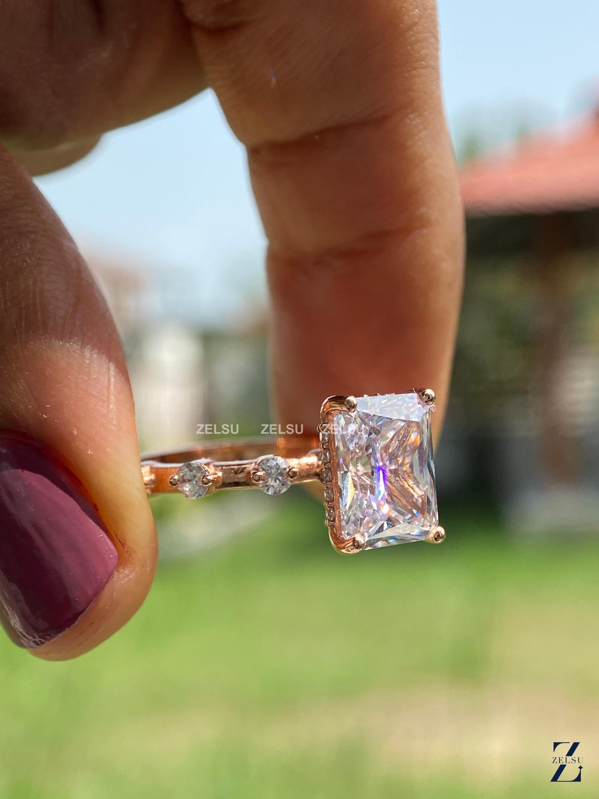 2 Carat Radiant Cut Lab Grown Diamond Hidden Halo Engagement Ring / Low Set Diamond Ring / Two Tone Ring / 2CT White and Yellow Gold Ring, low set ring,2 carat ,cvd diamond, hidden halo ,lab created diamond ,lab grown diamond ,low setting profile ,radiant, radiant diamond, solitaire ring, two tone ,white prongs, Lab-Grown Diamond Jewelry By Zelsu Diamond, Handmade Fine Jewelry for Women, Artisan Jewelry By Zelsu Diamond