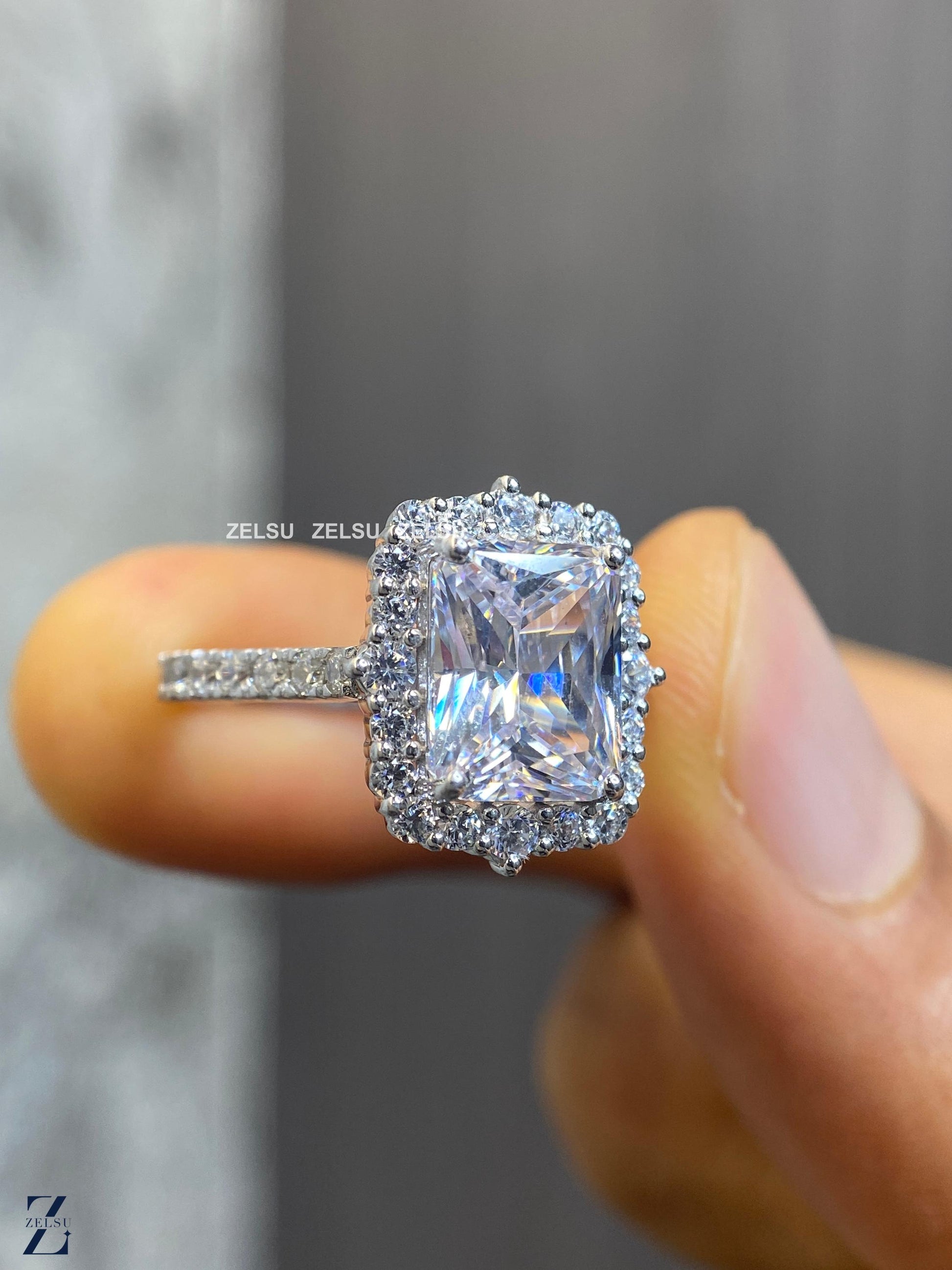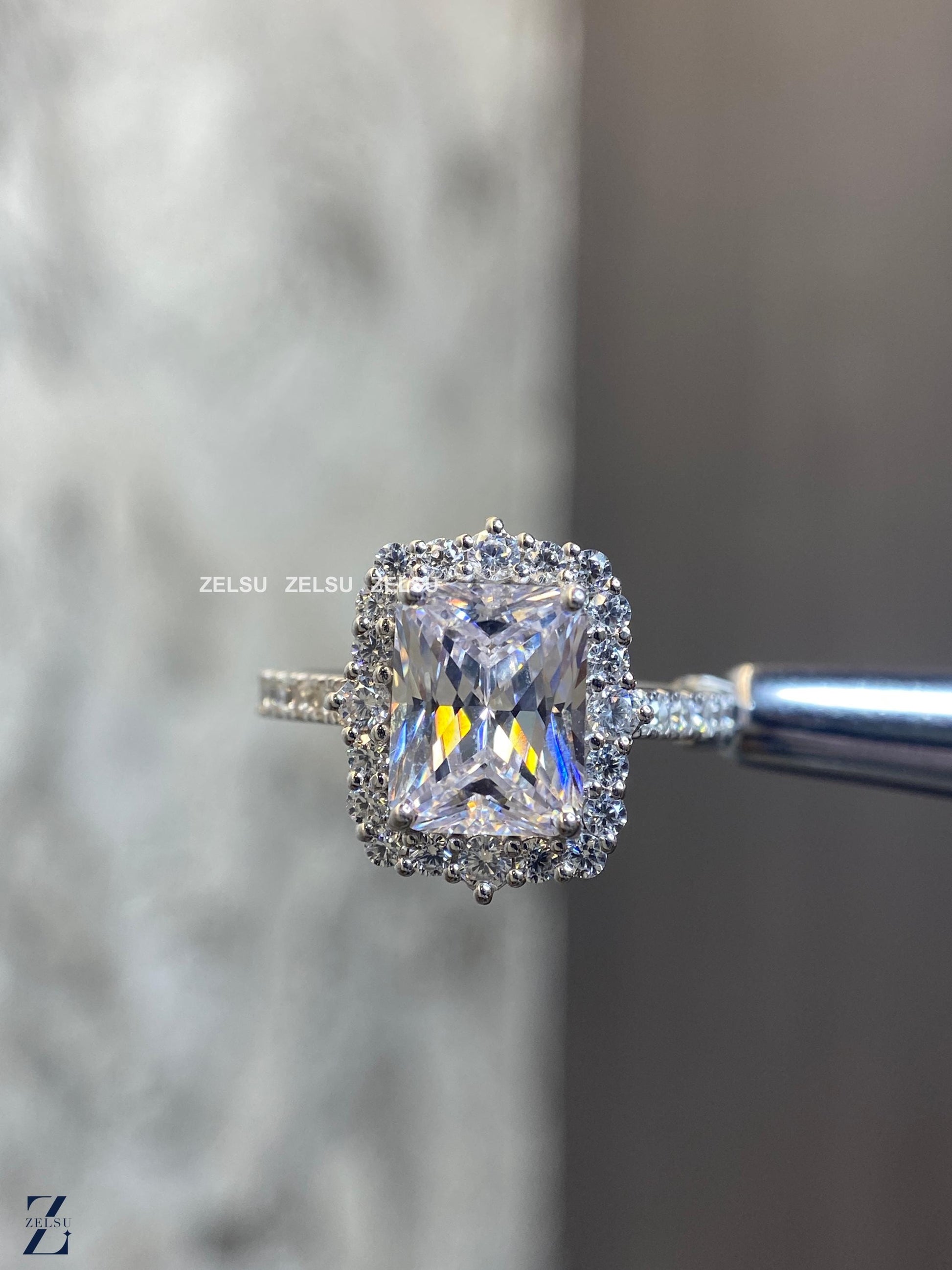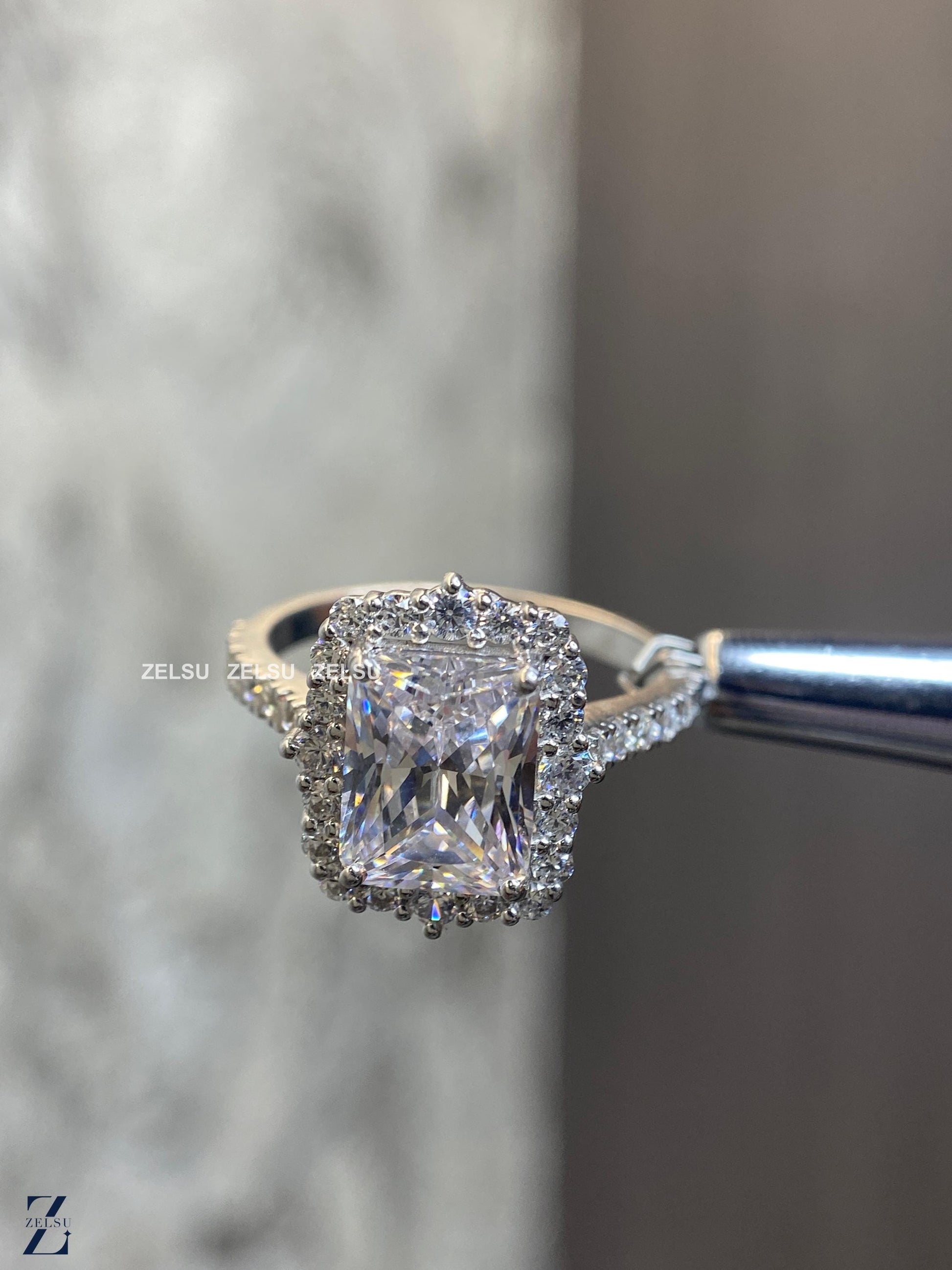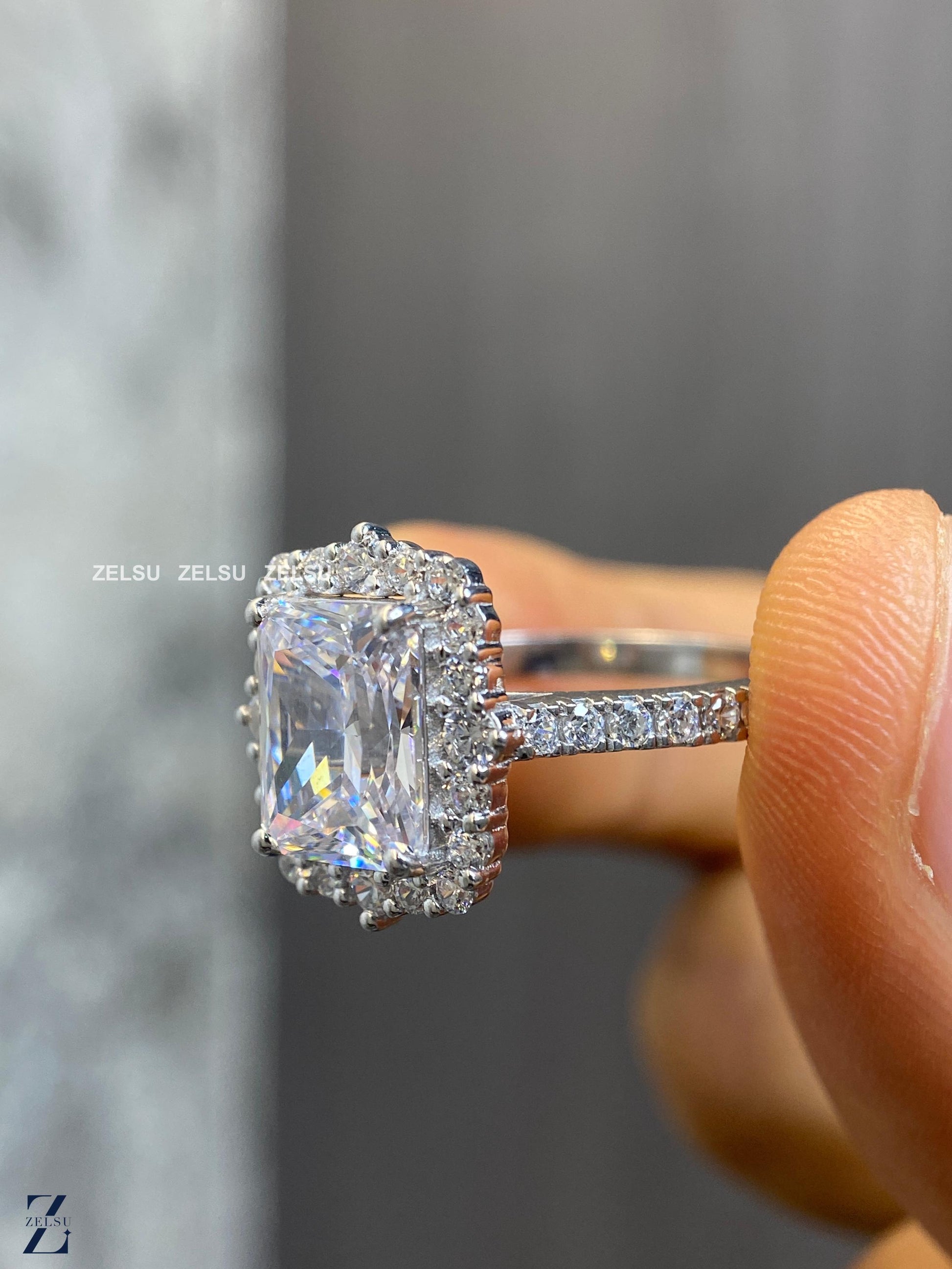 2 CT Radiant Lab Diamond Engagement Ring / E/VS1 Certified Eco Friendly Diamond Ring Gift For Her / Halo Radiant Cut Man Made Diamond Ring, 14k gold ring ,certified diamond ,diamond engagement ,diamond ring ,engagement ring ,igi certified ,lab diamond ring ,lab grown diamond ,radiant cut ring, radiant diamond, radiant diamond ring , zelsu diamond ,radiant ring, Lab-Grown Diamond Jewelry By Zelsu Diamond, Handmade Fine Jewelry for Women, Artisan Jewelry By Zelsu Diamond