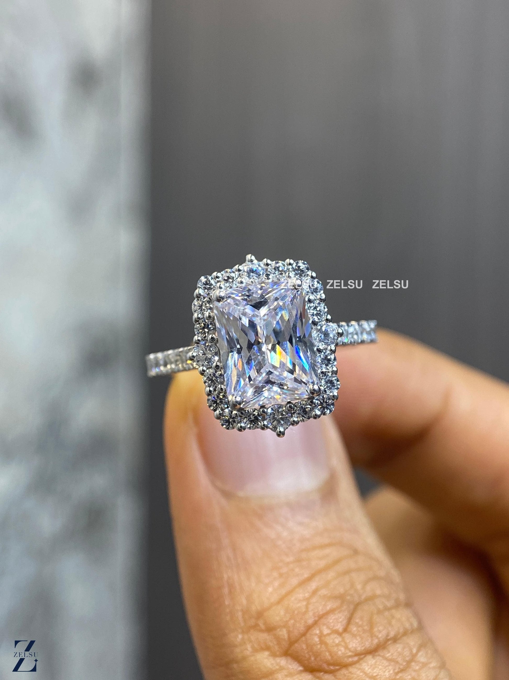 2 CT Radiant Lab Diamond Engagement Ring / E/VS1 Certified Eco Friendly Diamond Ring Gift For Her / Halo Radiant Cut Man Made Diamond Ring