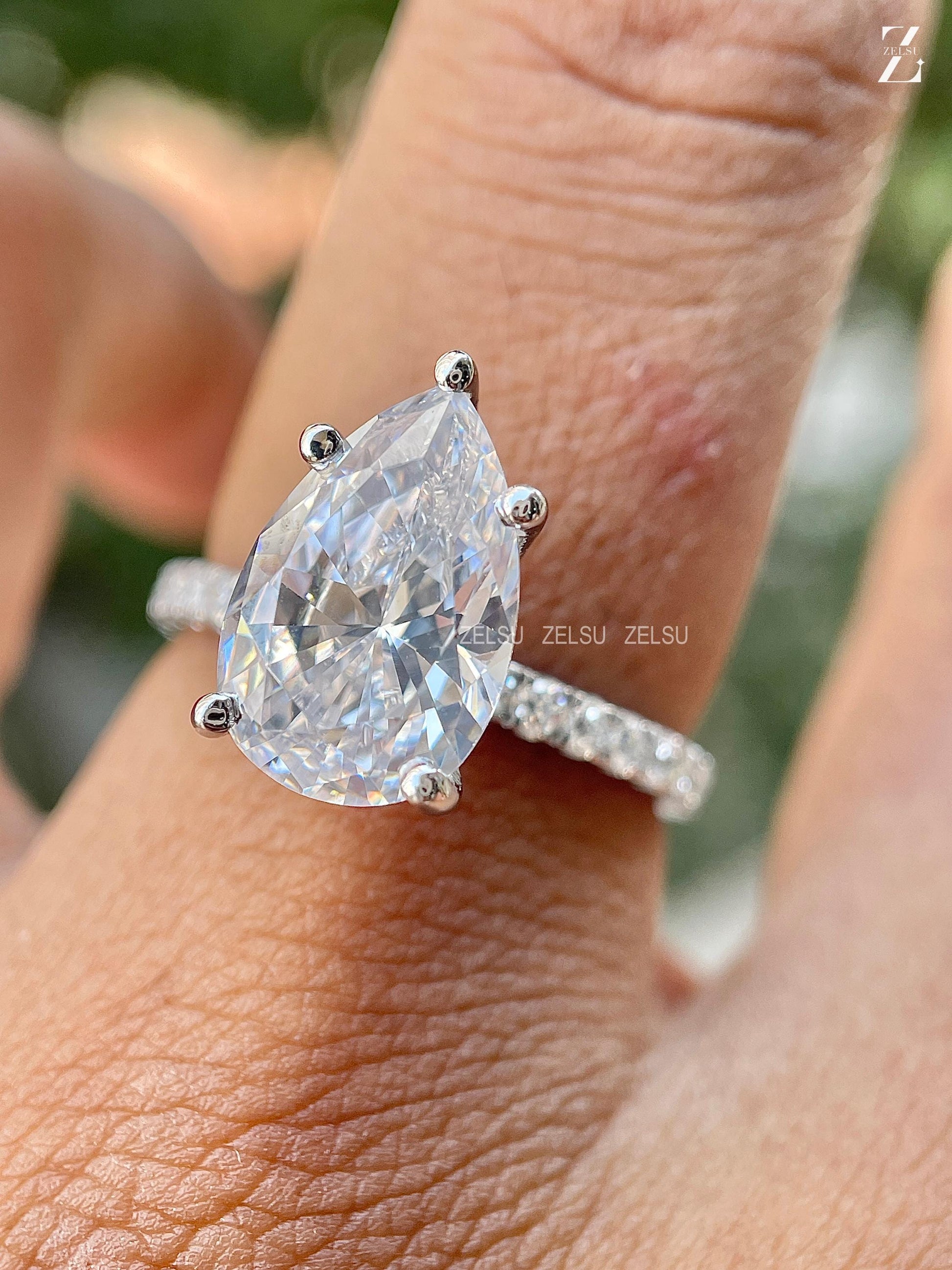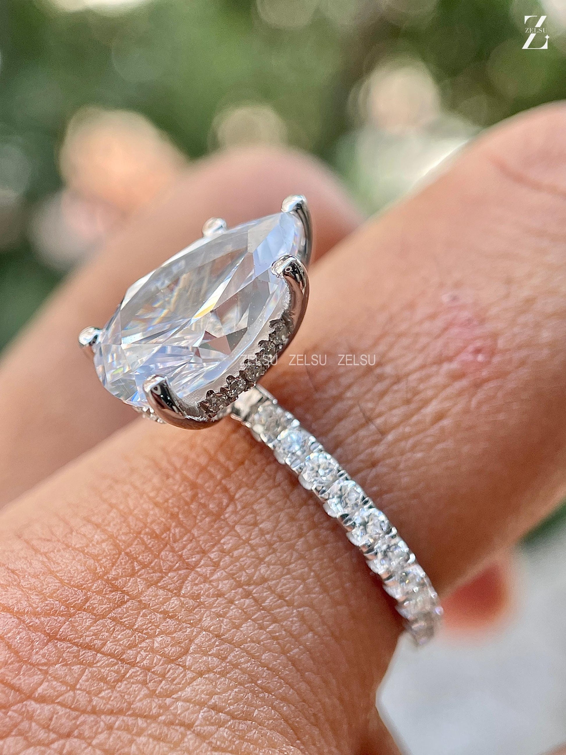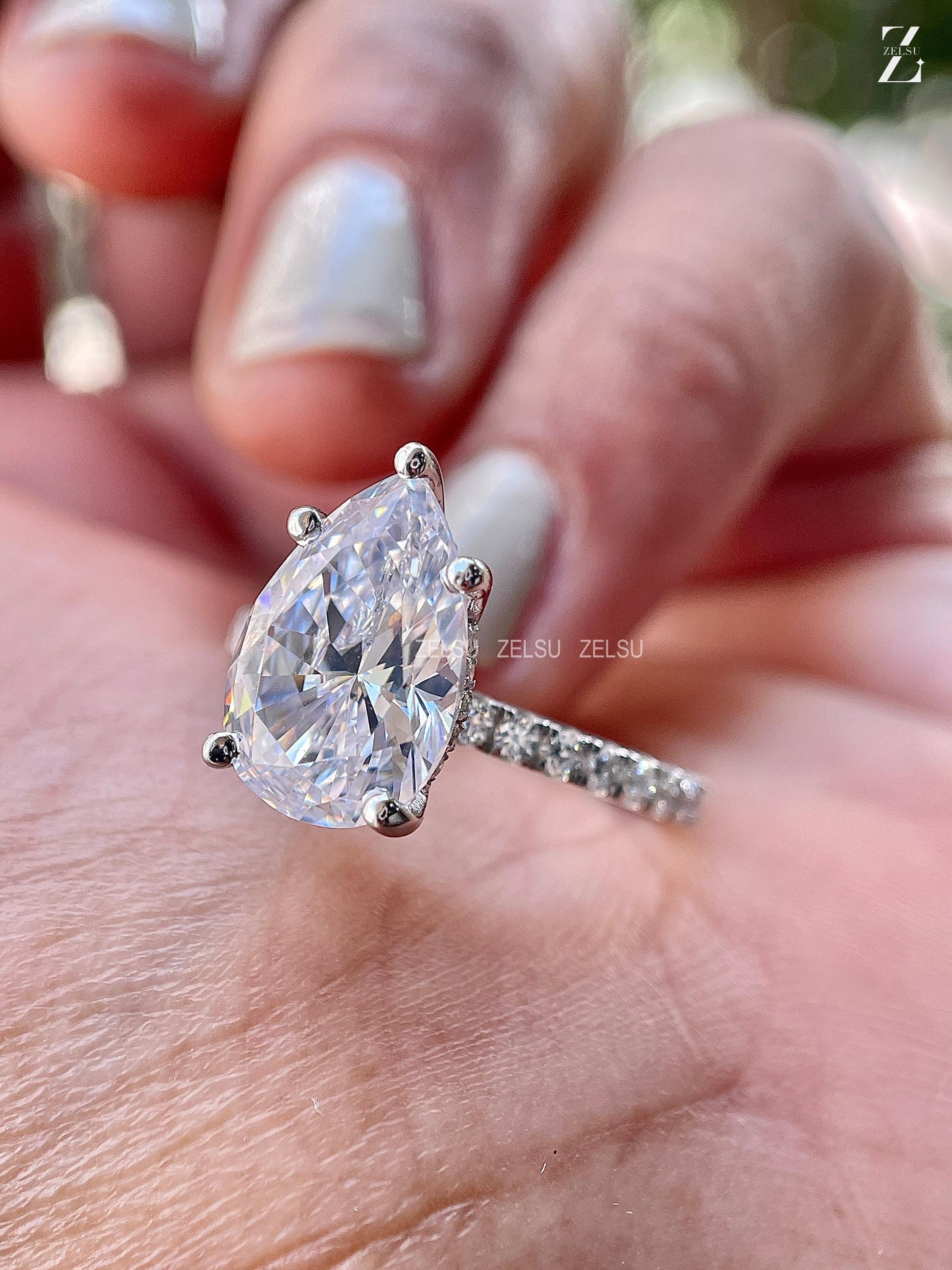 3.0 CT Pear Cut CVD Engagement Ring Pear Lab Diamond Ring Hidden Halo Ring White Gold Pave Setting Ring Rounded Prong Ring Valentine Gift, Christmas Gift, Claw Prong Set Ring, Bridal Ring, Anniversary Gift, Ring for Women, White/Yellow/Rose Gold Lab Diamond Ring, Solitaire Ring, Pear Lab Created Diamond Ring, Proposal Ring, CVD Jewelry, Lab-Grown Diamond Jewelry By Zelsu Diamond, Handmade Fine Jewelry for Women, Artisan Jewelry By Zelsu Diamond