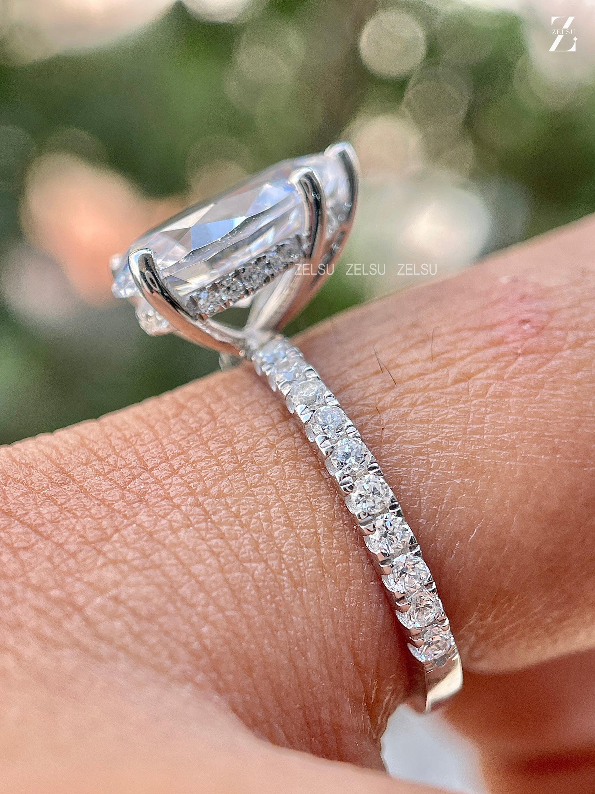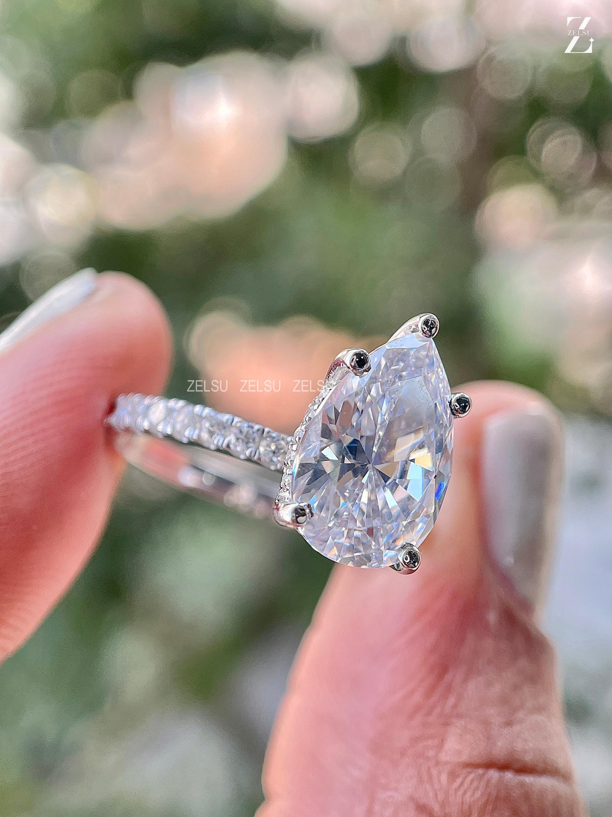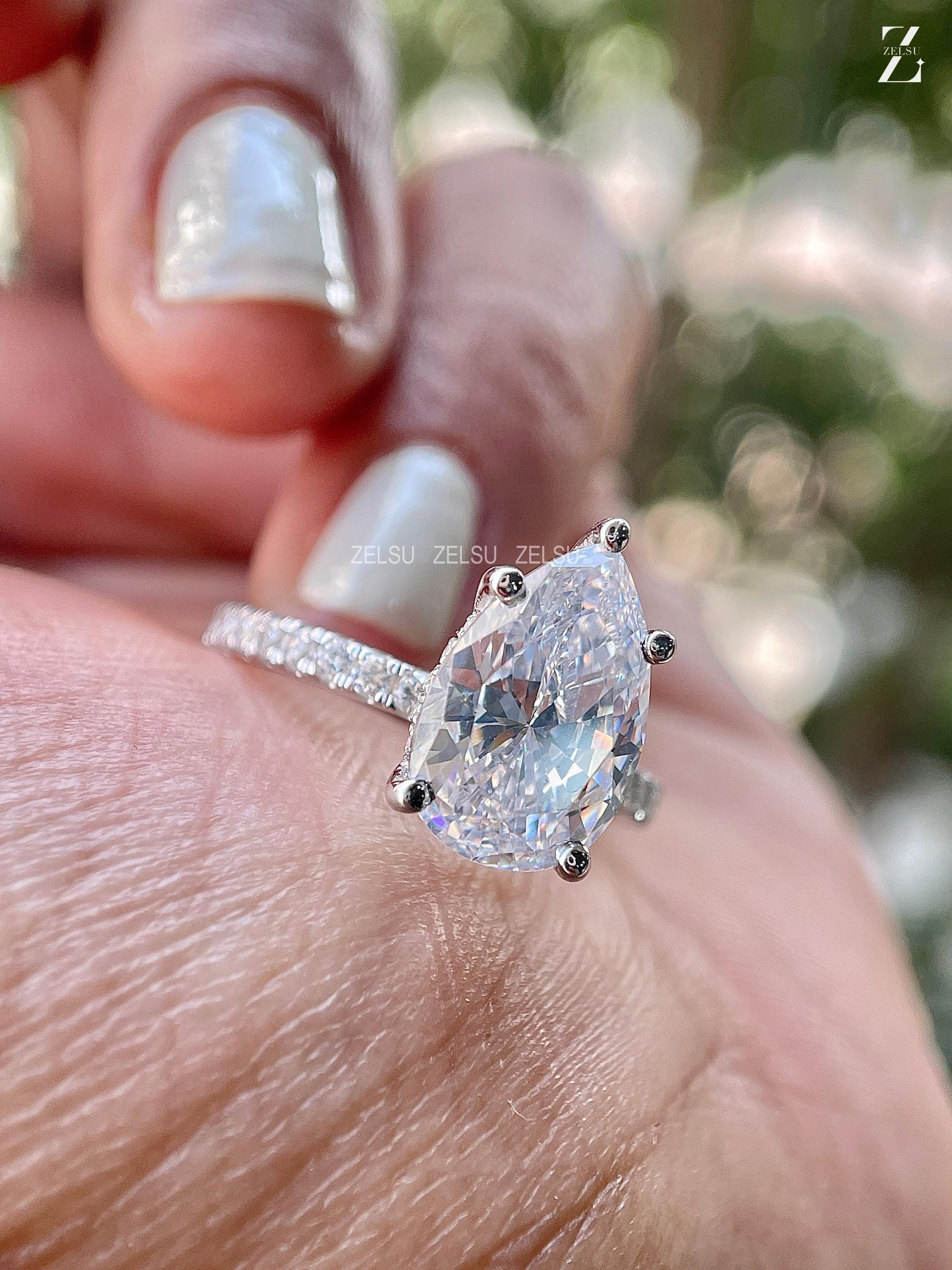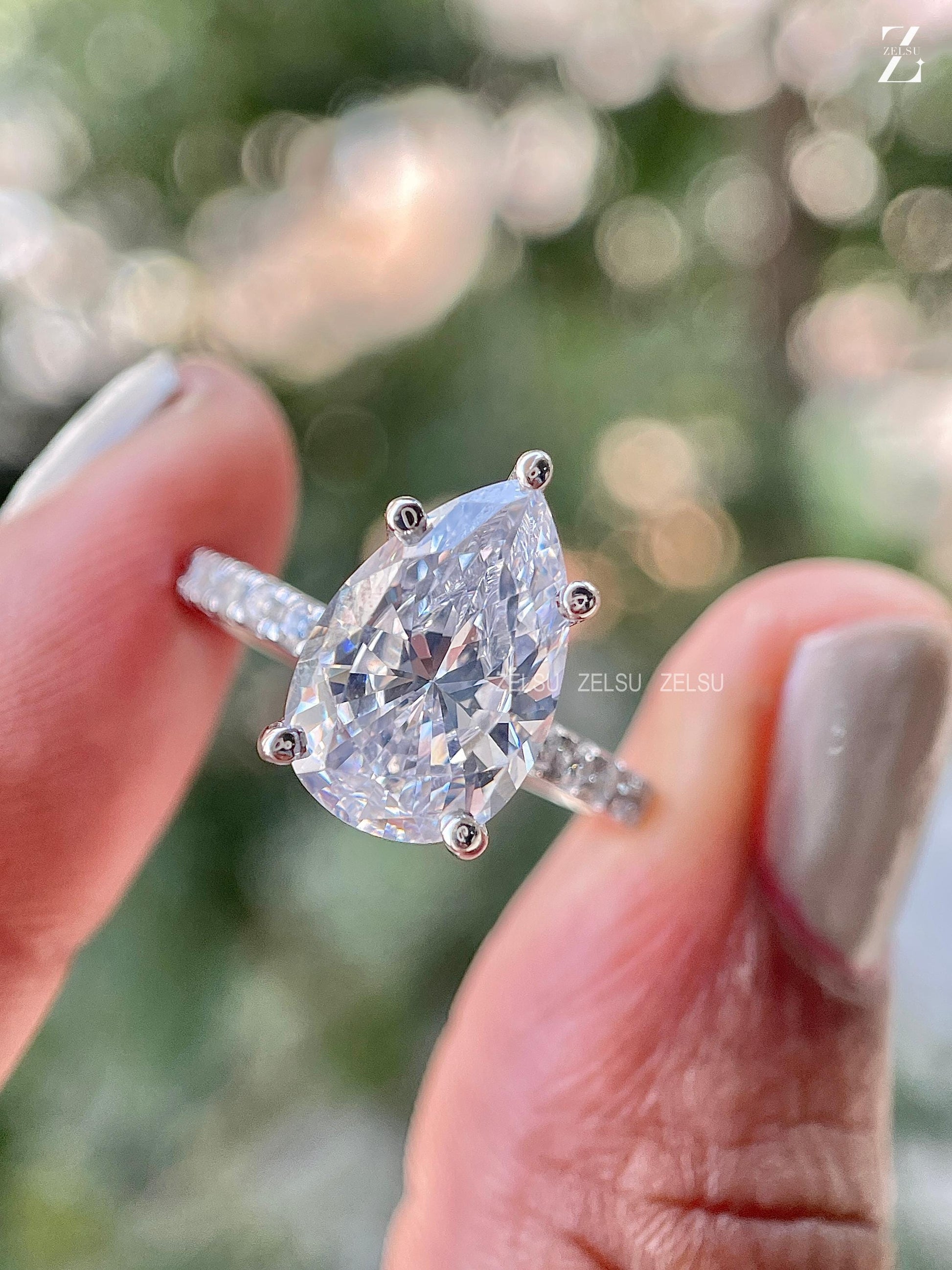 3.0 CT Pear Cut CVD Engagement Ring Pear Lab Diamond Ring Hidden Halo Ring White Gold Pave Setting Ring Rounded Prong Ring Valentine Gift, Christmas Gift, Claw Prong Set Ring, Bridal Ring, Anniversary Gift, Ring for Women, White/Yellow/Rose Gold Lab Diamond Ring, Solitaire Ring, Pear Lab Created Diamond Ring, Proposal Ring, CVD Jewelry, Lab-Grown Diamond Jewelry By Zelsu Diamond, Handmade Fine Jewelry for Women, Artisan Jewelry By Zelsu Diamond
