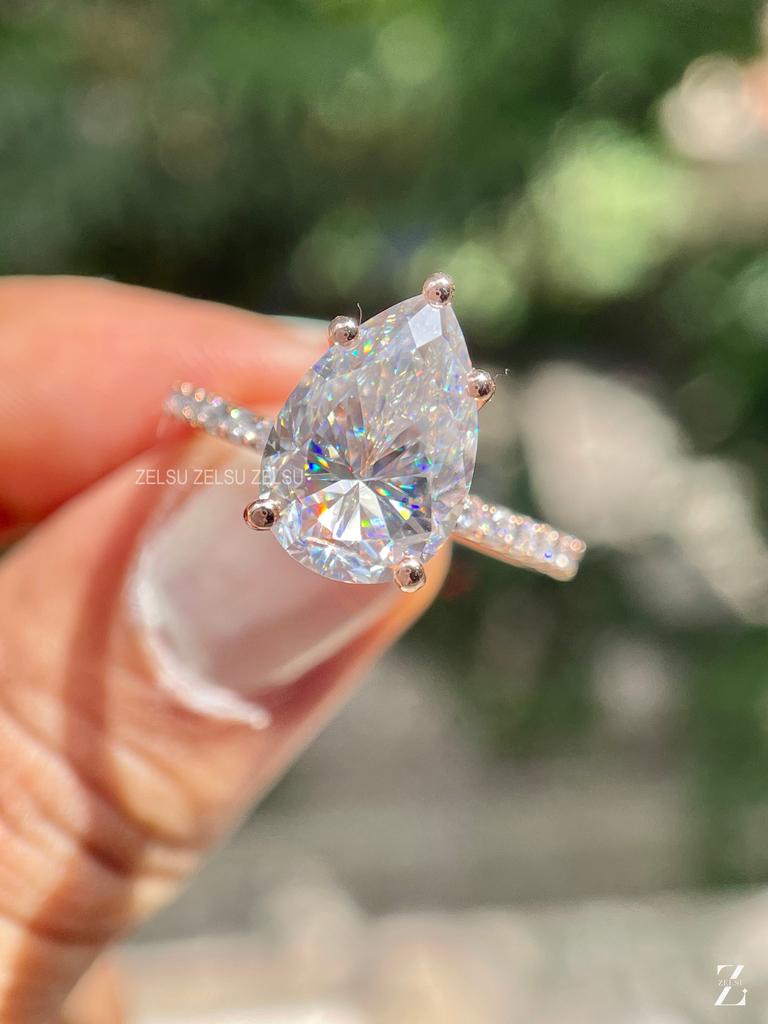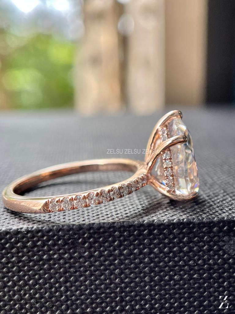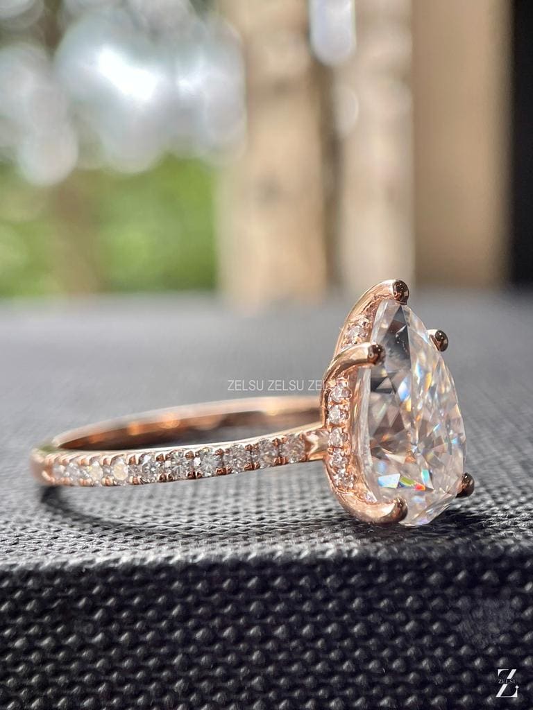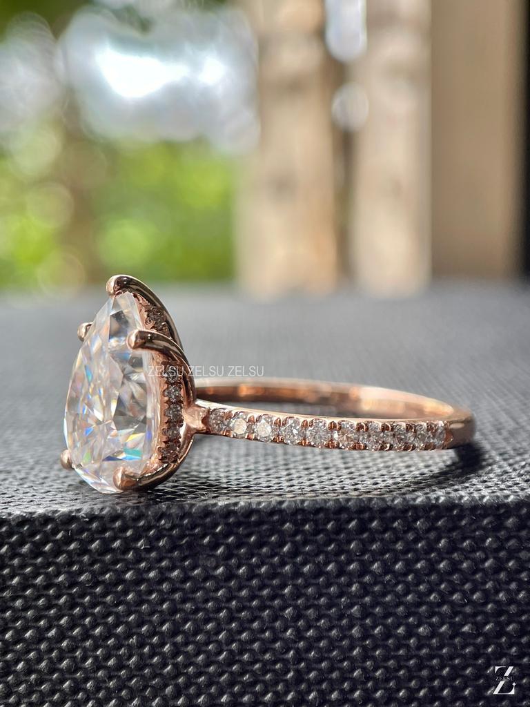 3 Carat Pear Lab Grown Diamond Ring, Pear Shaped Engagement Ring, 3 CT Pear Cut Hidden Halo Ring, White Gold, Platinum,Pave Set Wedding Ring, 3ct pear cut ring, hidden halo, pear shaped ring, 3ct lab diamond ring, pear shaped, 3 carat pear cut, 3 carat pear diamond, lab created diamond, pear cut diamond, pear diamond ring, 3 carat diamond ring, 3 carat engagement, lab grown diamond,Lab-Grown Diamond Jewelry By Zelsu Diamond, Handmade Fine Jewelry for Women, Artisan Jewelry By Zelsu Diamond