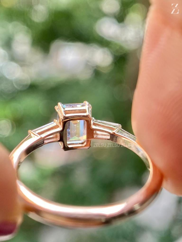 1.20 Carat IGI Certified E Color VVS2 Clarity Emerald Cut Three Stone Lab Grown Diamond Engagement Ring, Side Baguettes 14k Rose Gold, emerald cut diamond, three stone ring, wedding band, 14k white gold, diamond ring, engagement, engagement ring, cvd diamond, lab grown, lab grown diamond, fine jewelry, gold ring, wedding ring,Lab-Grown Diamond Jewelry By Zelsu Diamond, Handmade Fine Jewelry for Women, Artisan Jewelry By Zelsu Diamond