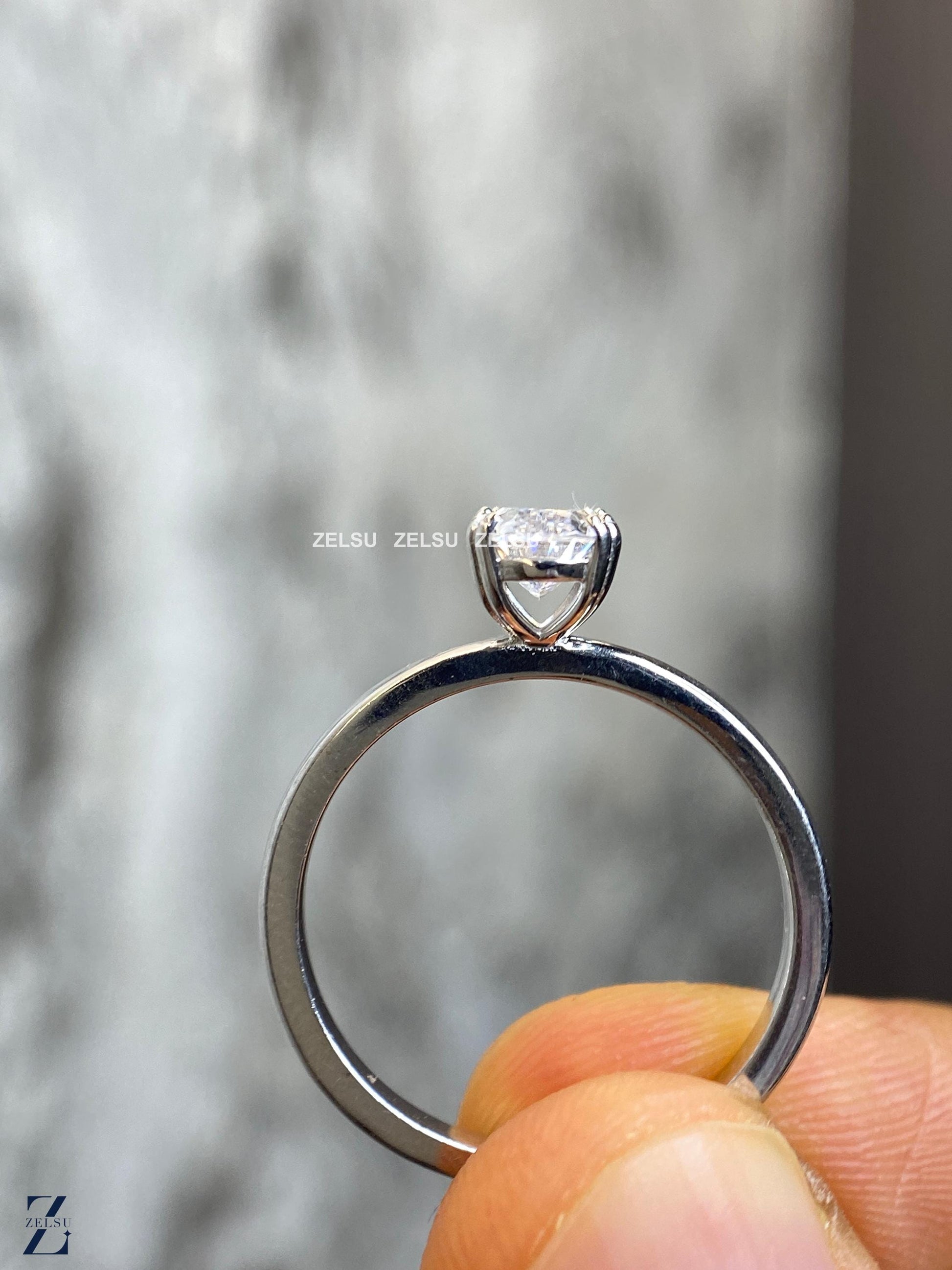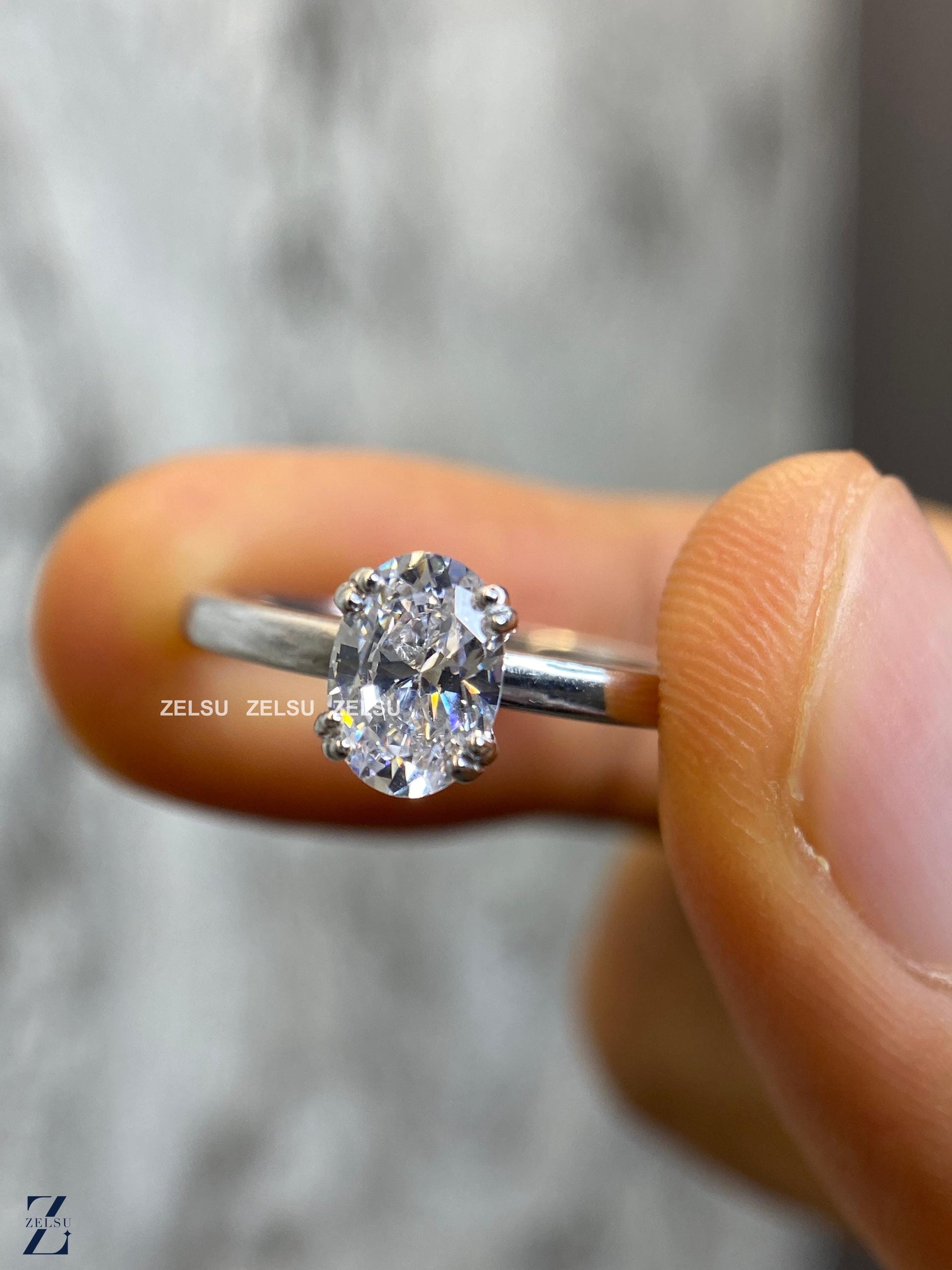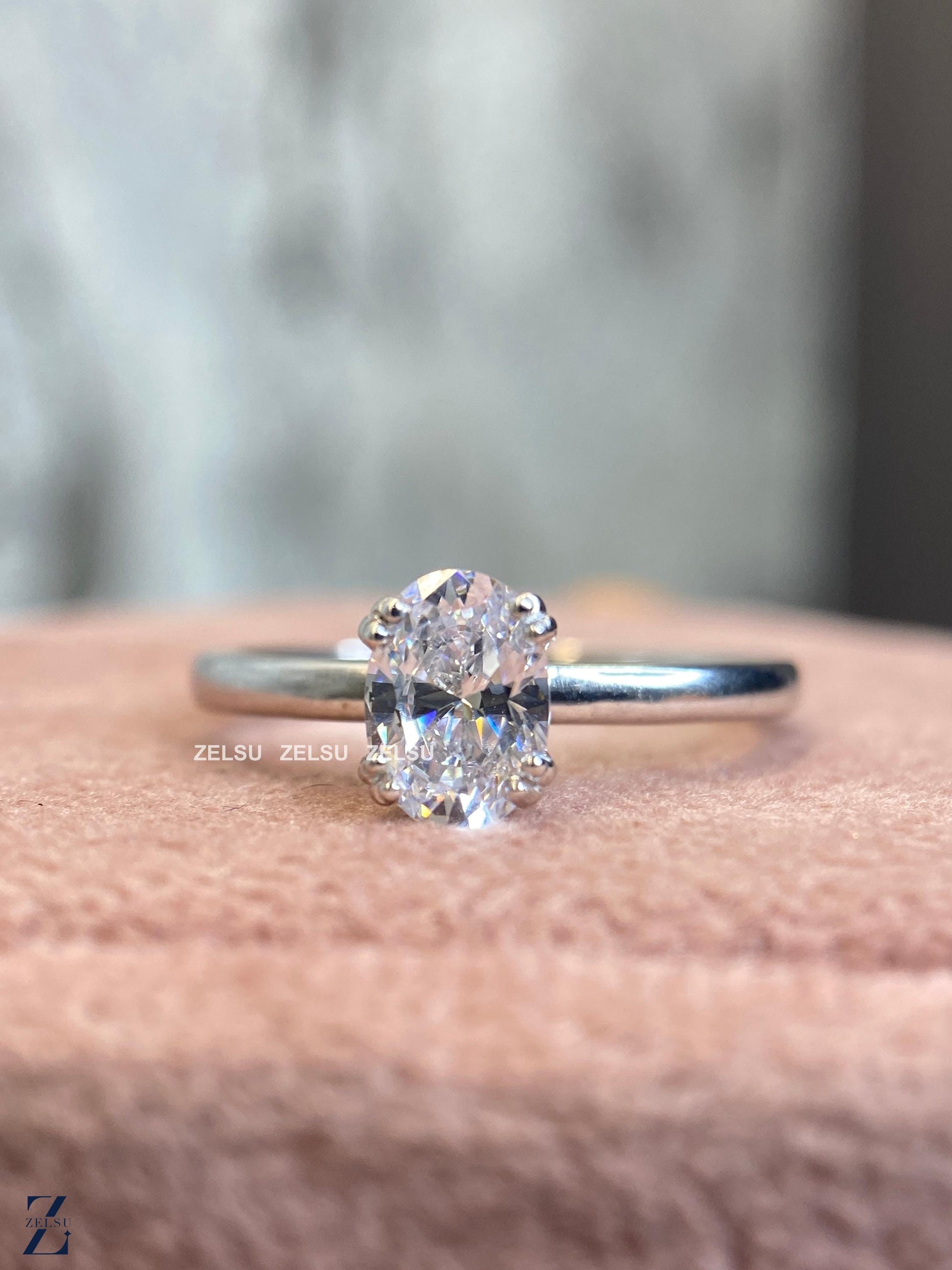 1.00 Ct Oval Diamond Engagement Ring/ Oval Lab Grown Diamond Ring/ 10K White Gold Oval Diamond Double Prong Ring/ Oval CVD Diamond Ring