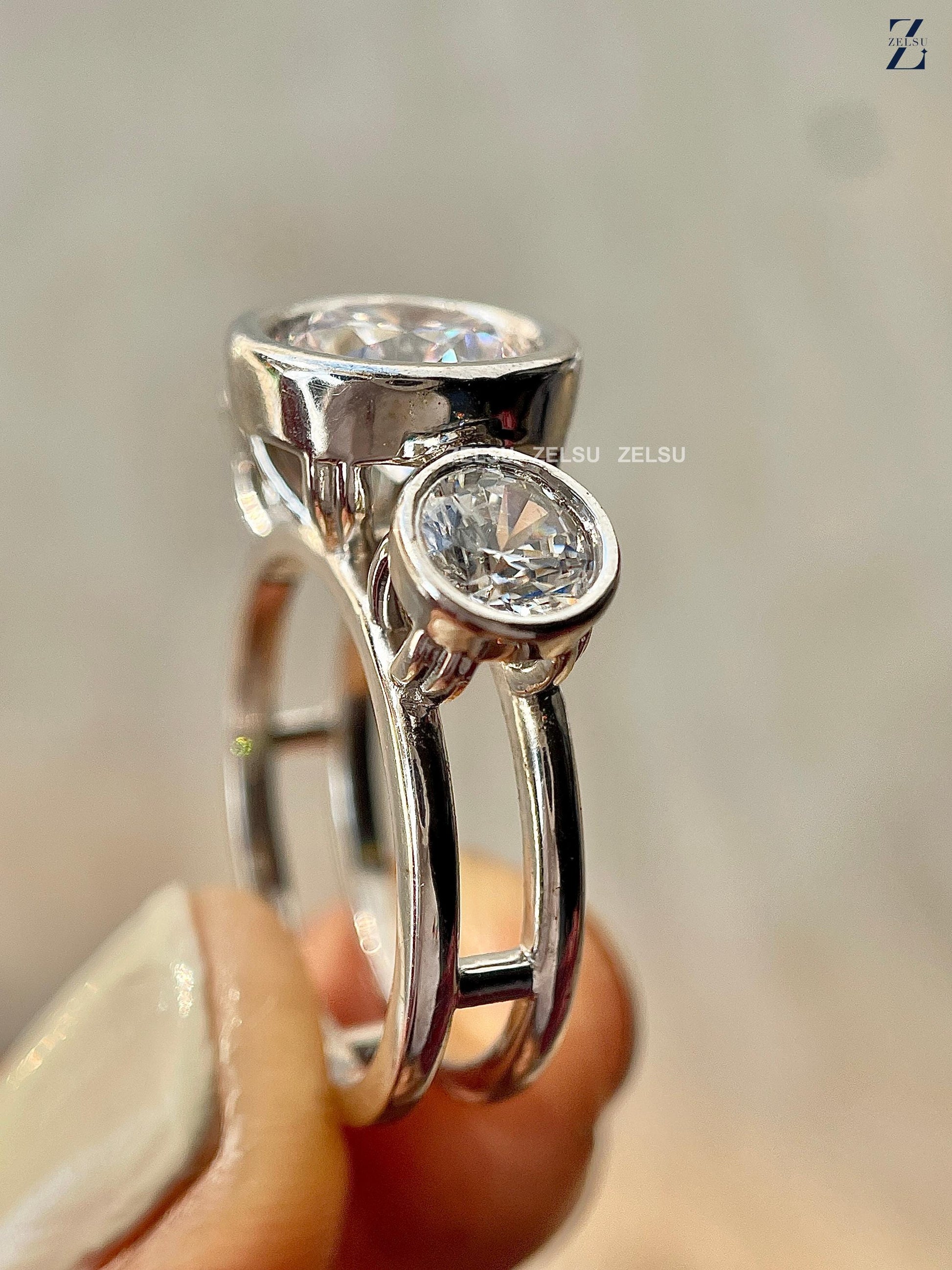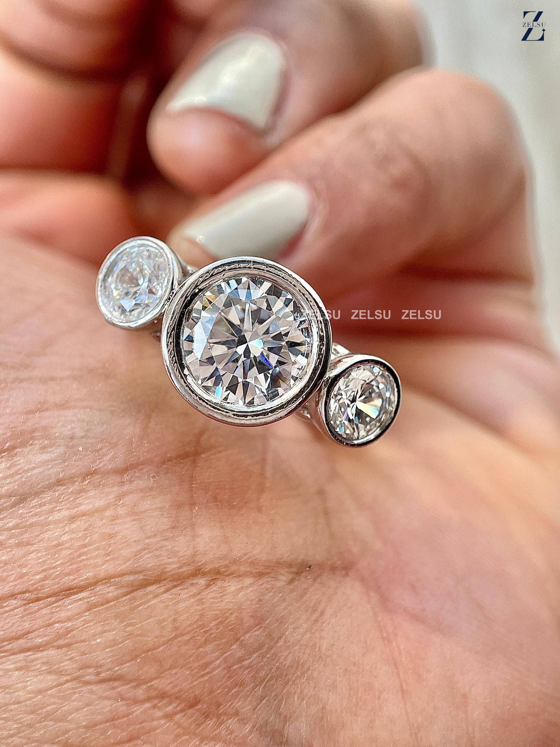 1.30 CT Three Stone Ring, Round Cut Bezel Lab Grown Engagement Ring, 14K White Gold Ring, Lab Diamond Ring Anniversary Gift, Bezel Set Ring, Round Cut Diamond, Round Cut Ring, Three Stone Ring, Bezel Set, Bridal Ring, Lab Grown Ring, Engagement Ring, Wedding Ring, Trilogy Ring, Handmade Jewelry, Zelsu Diamond, White Gold Ring, Lab-Grown Diamond Jewelry By Zelsu Diamond, Handmade Fine Jewelry for Women, Artisan Jewelry By Zelsu Diamond