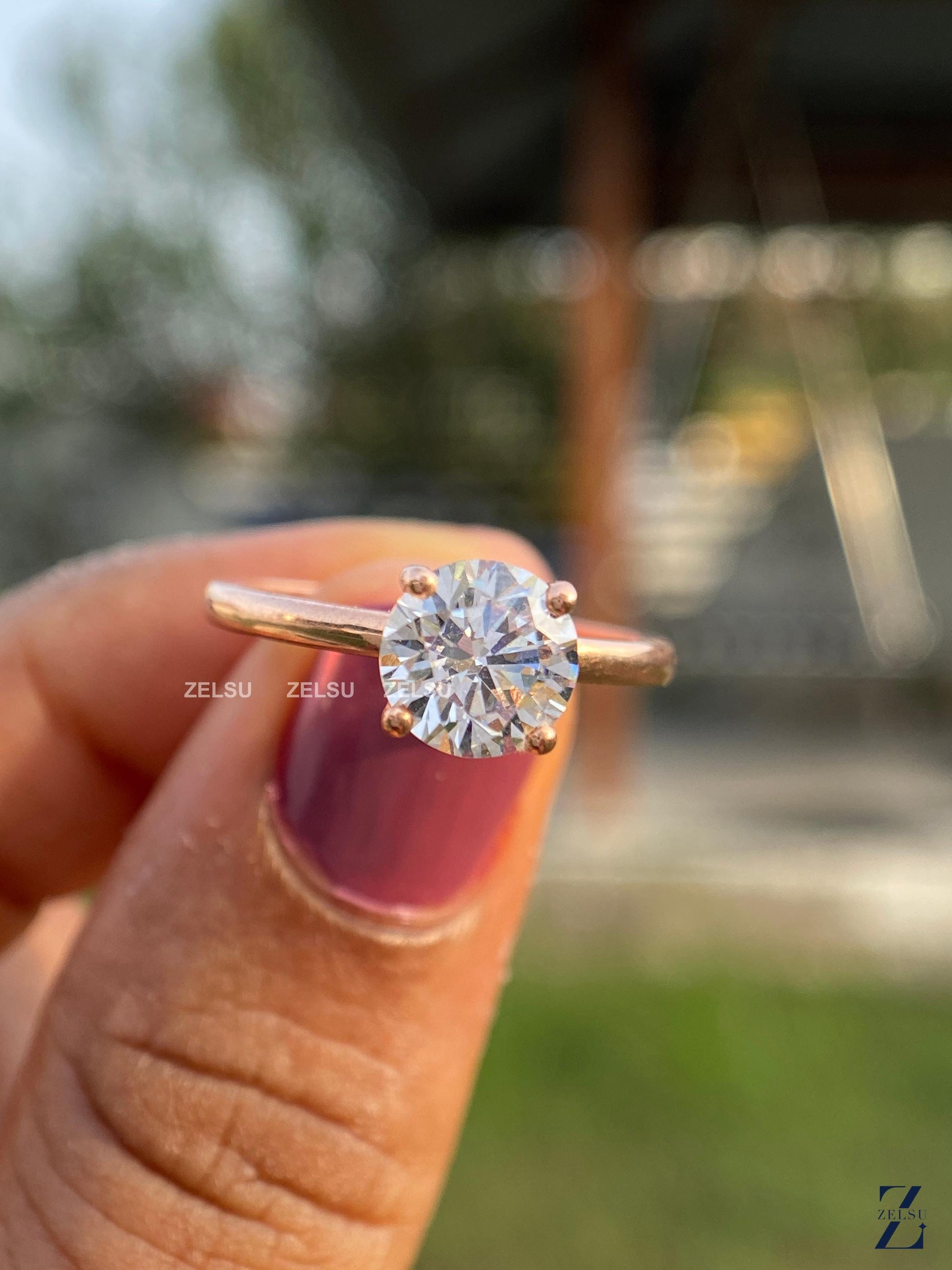 2.00 Carat Round Lab Grown Diamond Ring E Color IGI Certified Ring /Round Diamond Thin Engagement Ring/Dainty Ring 14K/ VVS Solitaire Ring, solitaire lab grown, IGI certified ring, lab created ring, 2 carat round ring, 2 carat diamond, 2 carat lab diamond, engagment ring, diamond ring, lab diamond ring, F VS1 DIAMOND, 14K diamond ring, lab grown ring, 2 ct diamond, Lab-Grown Diamond Jewelry By Zelsu Diamond, Handmade Fine Jewelry for Women, Artisan Jewelry By Zelsu Diamond