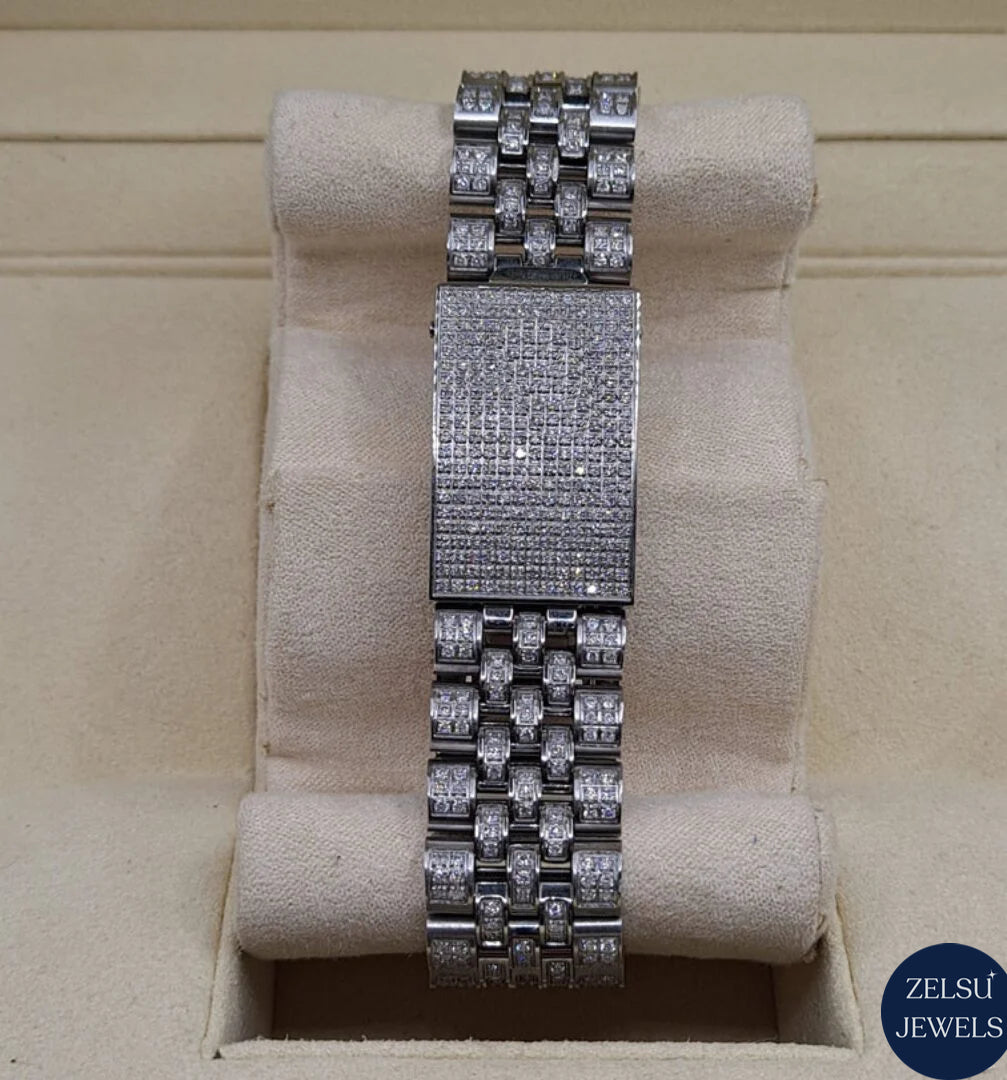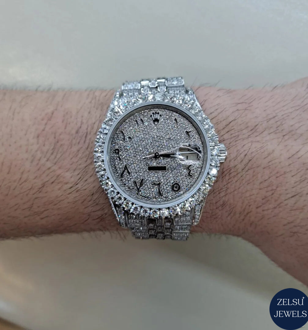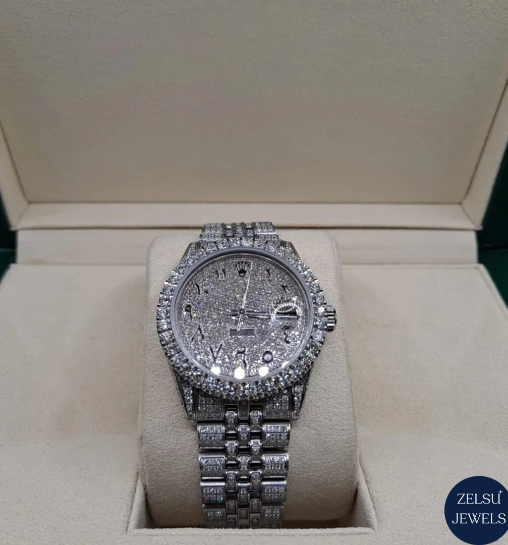 41mm Bustdown Automatic Movement Watch with Studded Diamond iced out for unparalleled luxury and style.