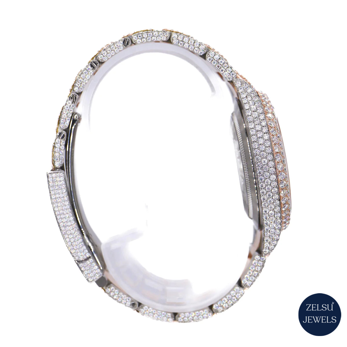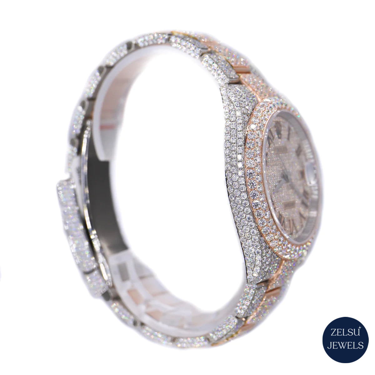 Datejust 41mm Custom Pave Roman Numeral Dial, Two-Tone Oyster Band. Studded DiamondsFully Iced Out for a luxurious statement.