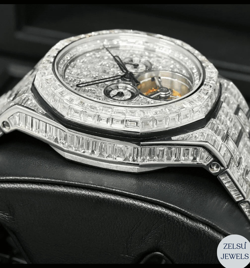 42mm Audemars Piguet Offshore Tourbillon Full Iced Emerald Cut Automatic Movement Watch.