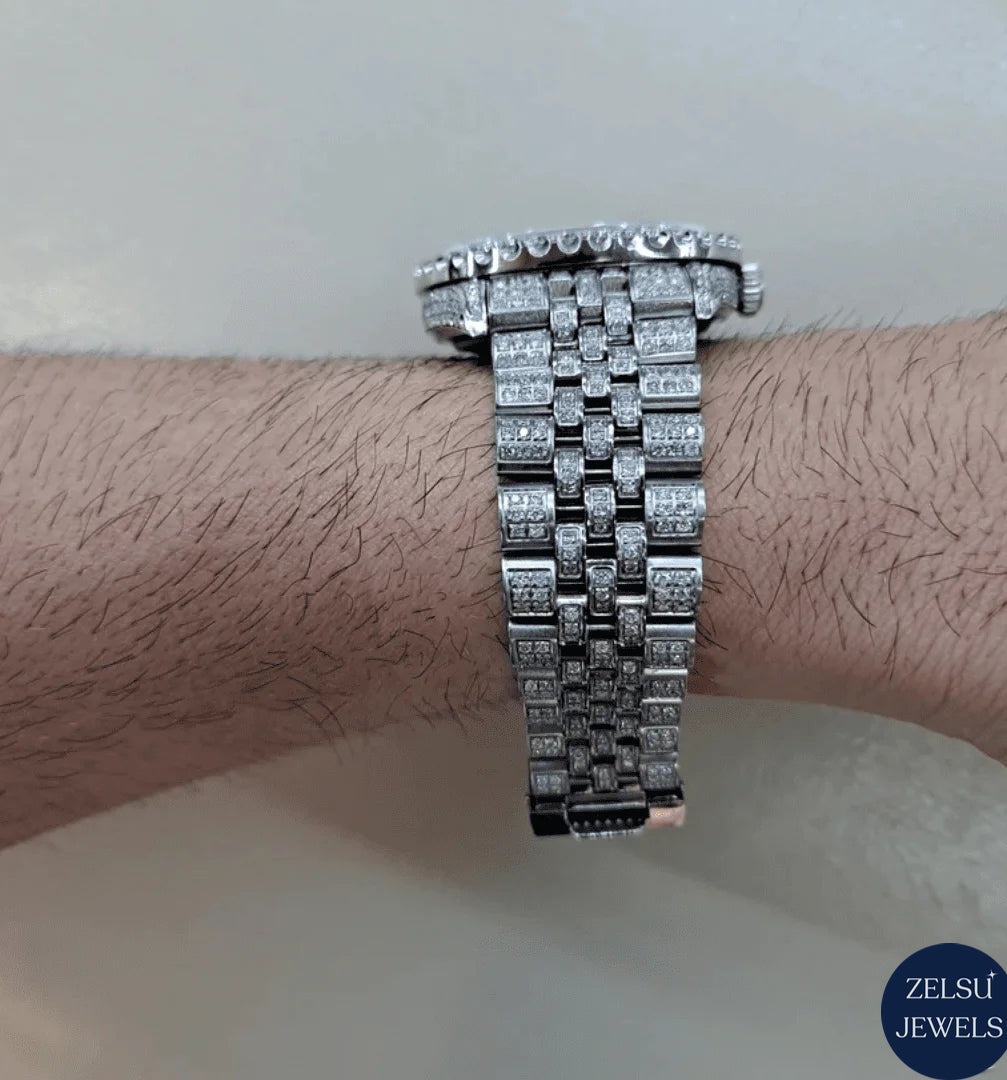 41mm Bustdown Automatic Movement Watch with Studded Diamond iced out for unparalleled luxury & style.