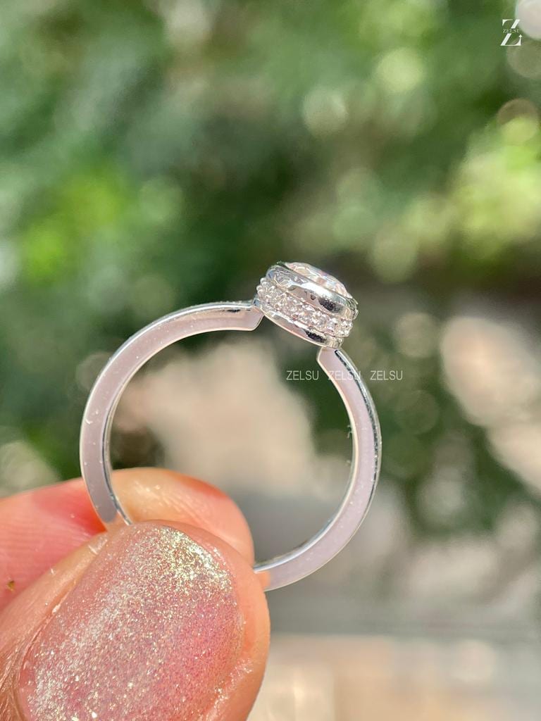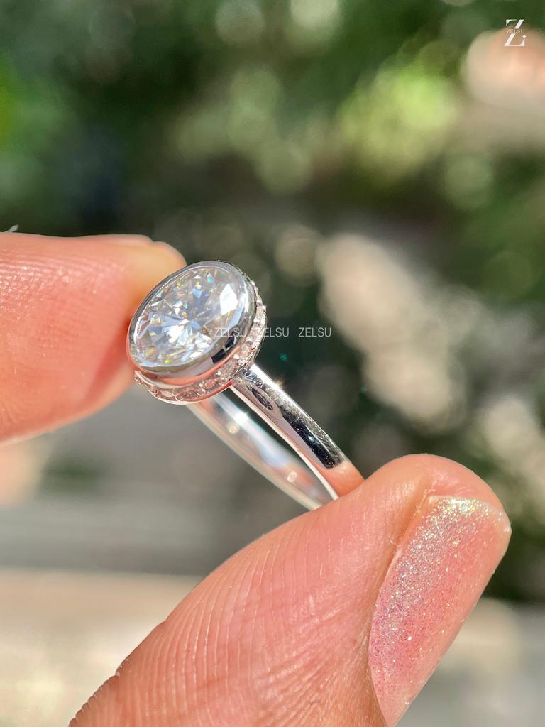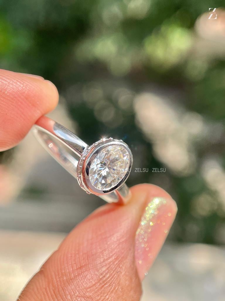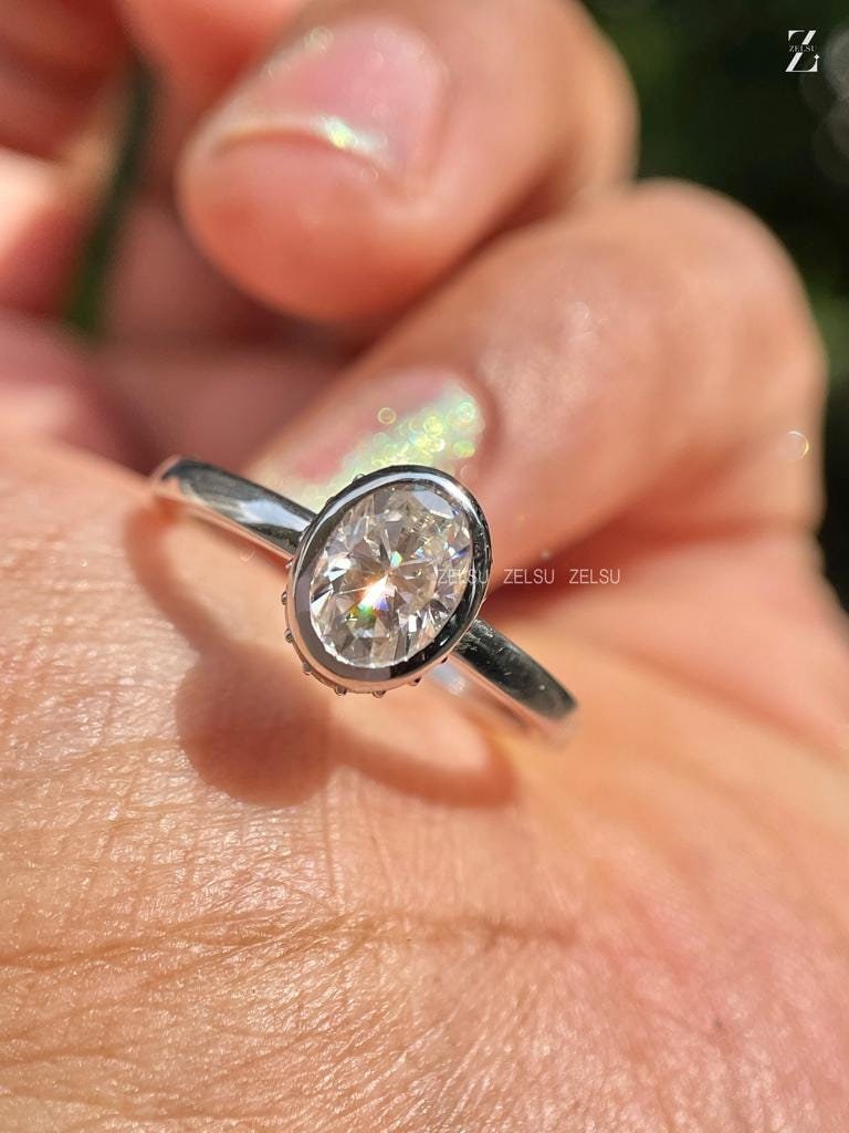 0.50 CT Oval Bezel Set Lab Grown Diamond Ring, F/VS Oval Cut IGI Certified Diamond, Hidden Halo Ring, 14K Gold Oval Ring For Her, Wedding Ring, oval cvd diamond, hidden halo, oval lab diamond, oval diamond, oval diamond ring, 0.50 carat oval ring, lab diamond ring, lab grown diamond, oval engagement ring, oval shape ring, white gold, Handmade Fine Jewelry for Women, Artisan Jewelry By Zelsu Diamond