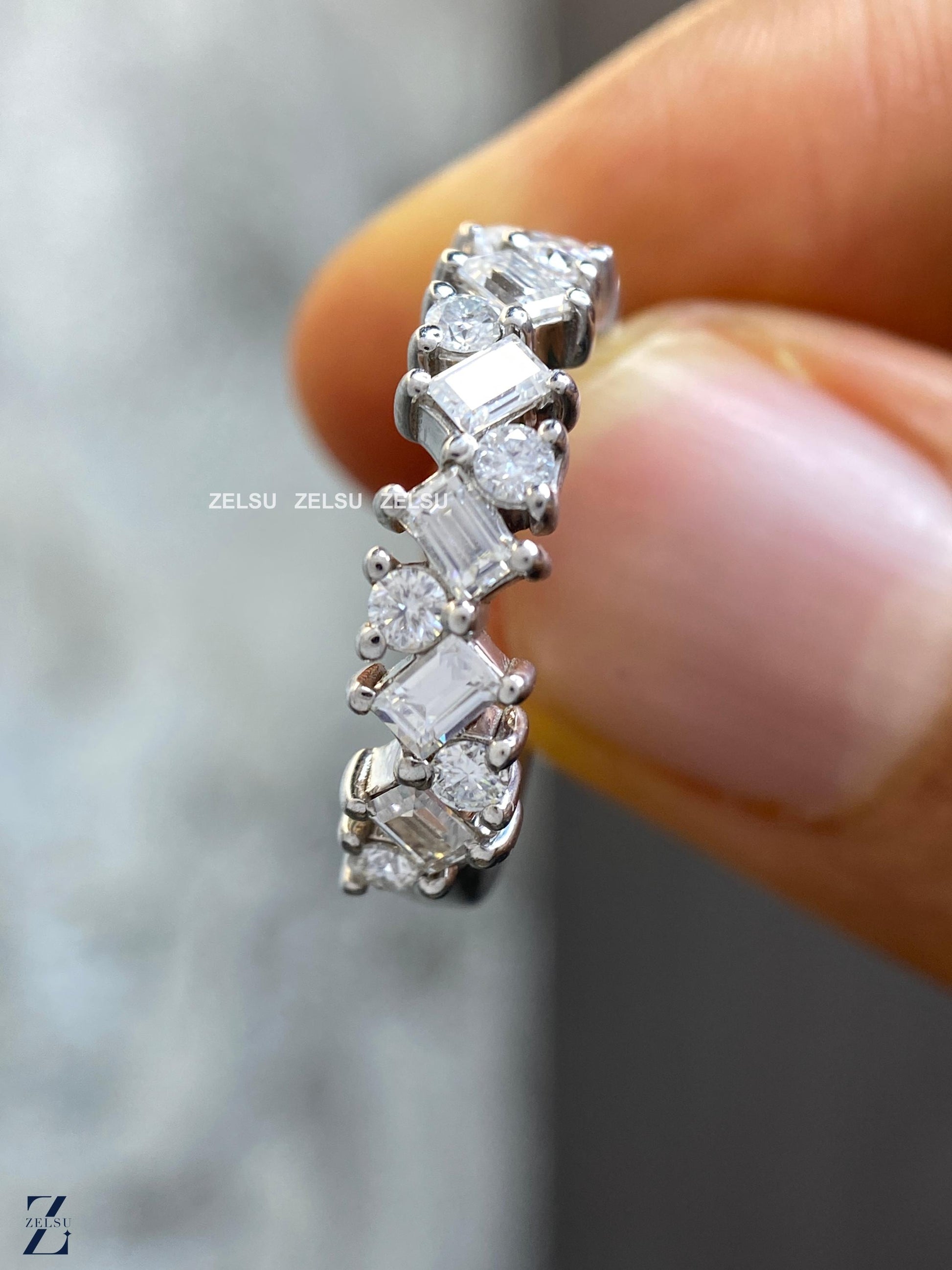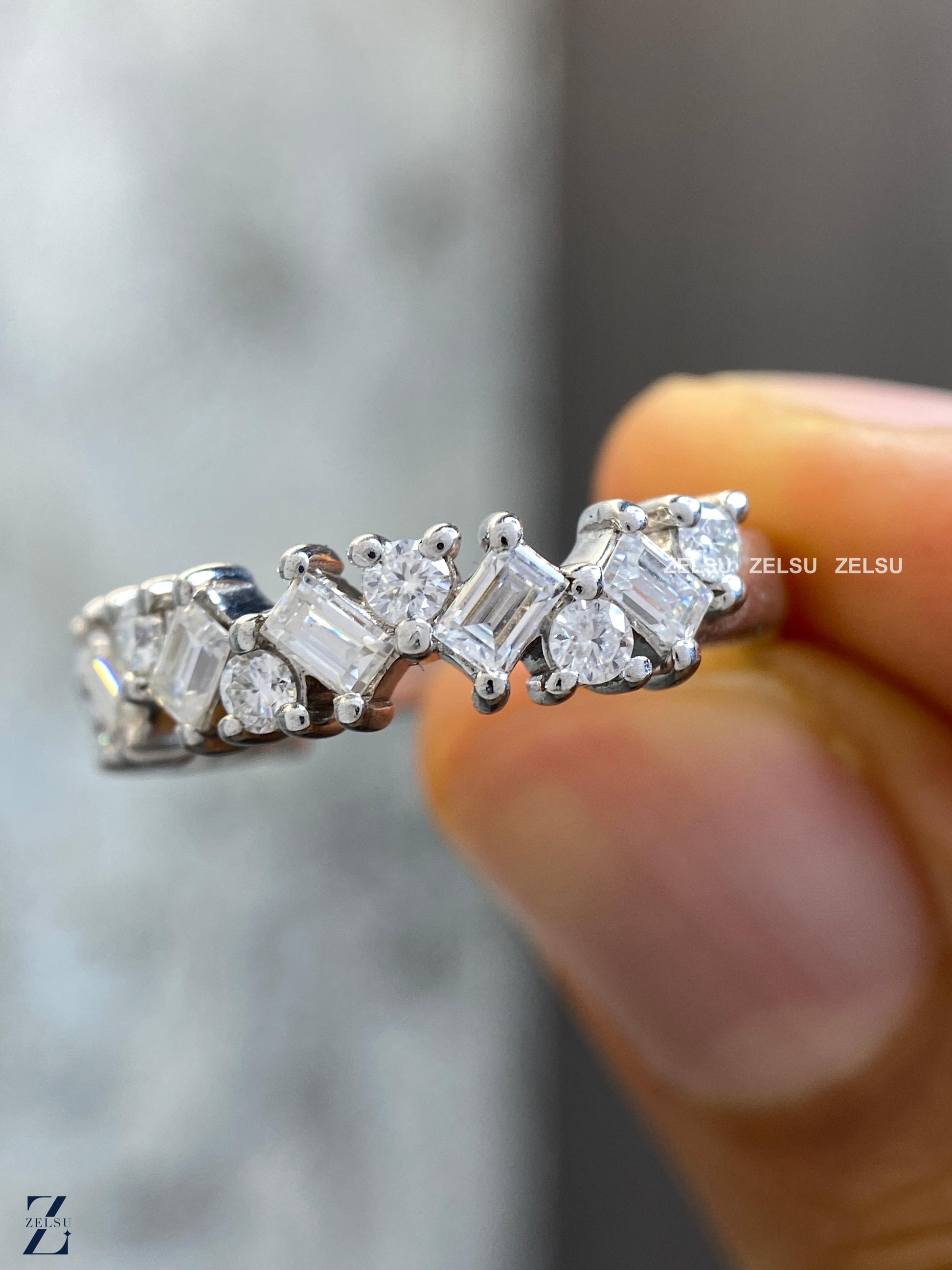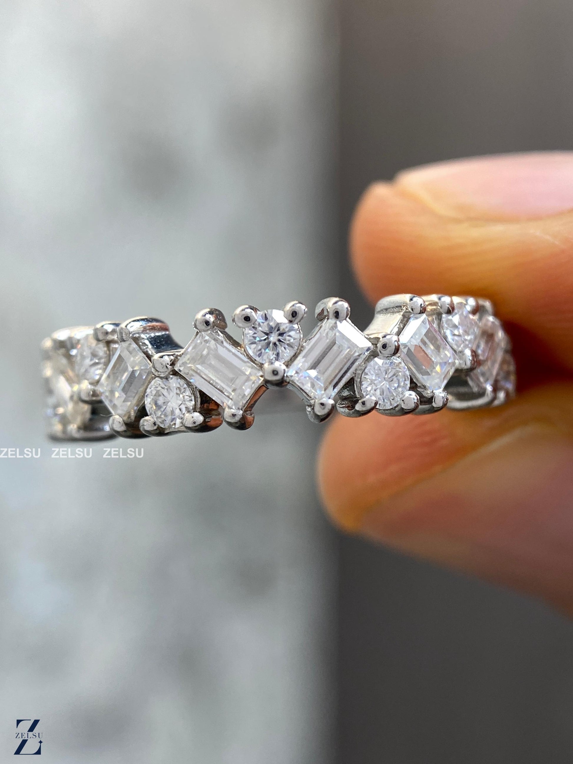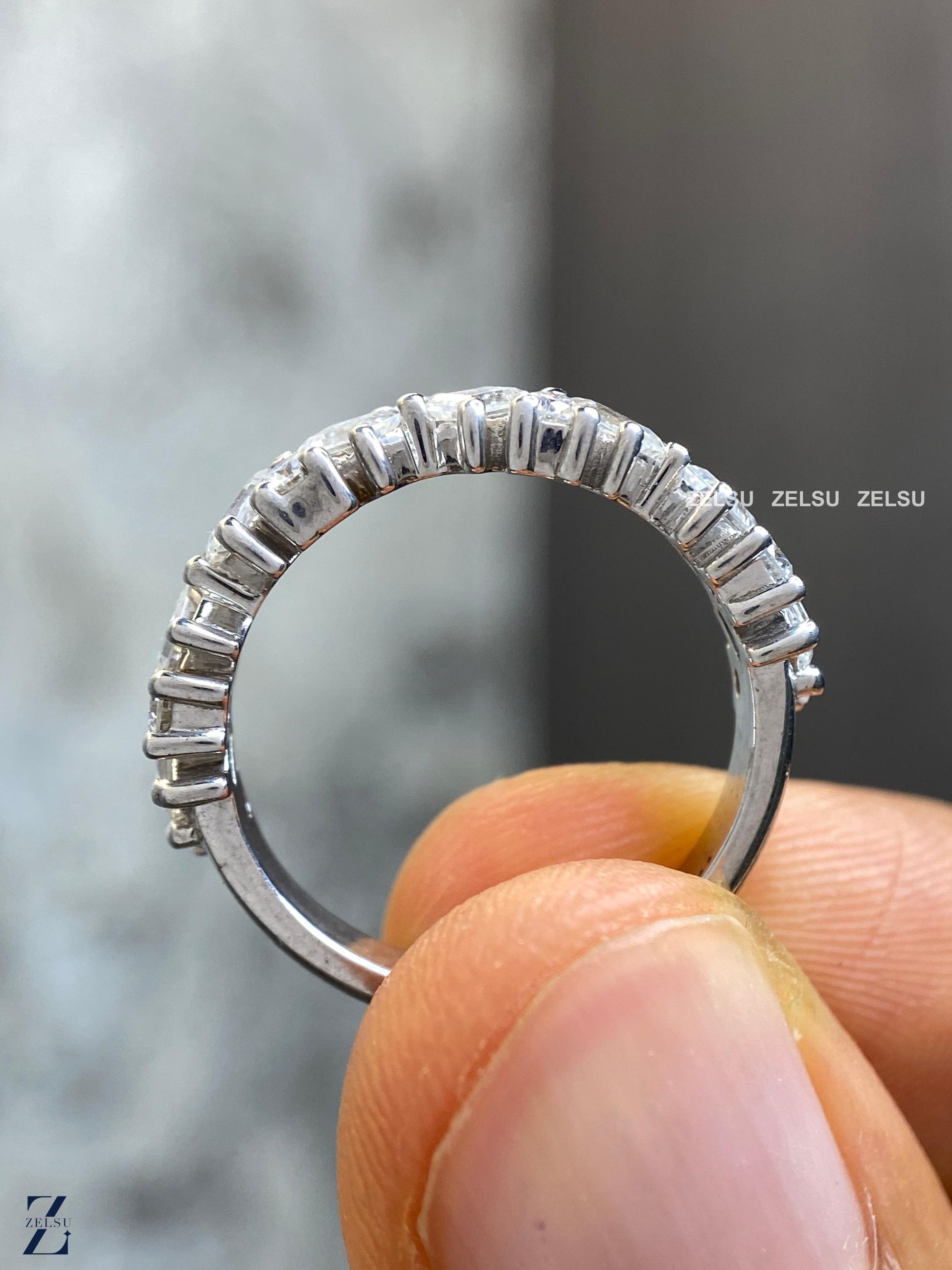 1.02 CTW Baguette Cut Colorless Moissanite Half Eternity Baguette Cut Wedding Stackable Band, Bridal Dainty anniversary Gift ring for women