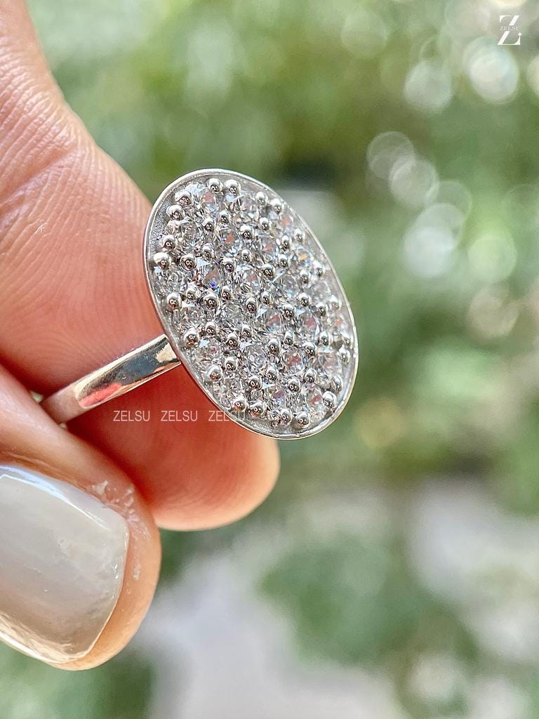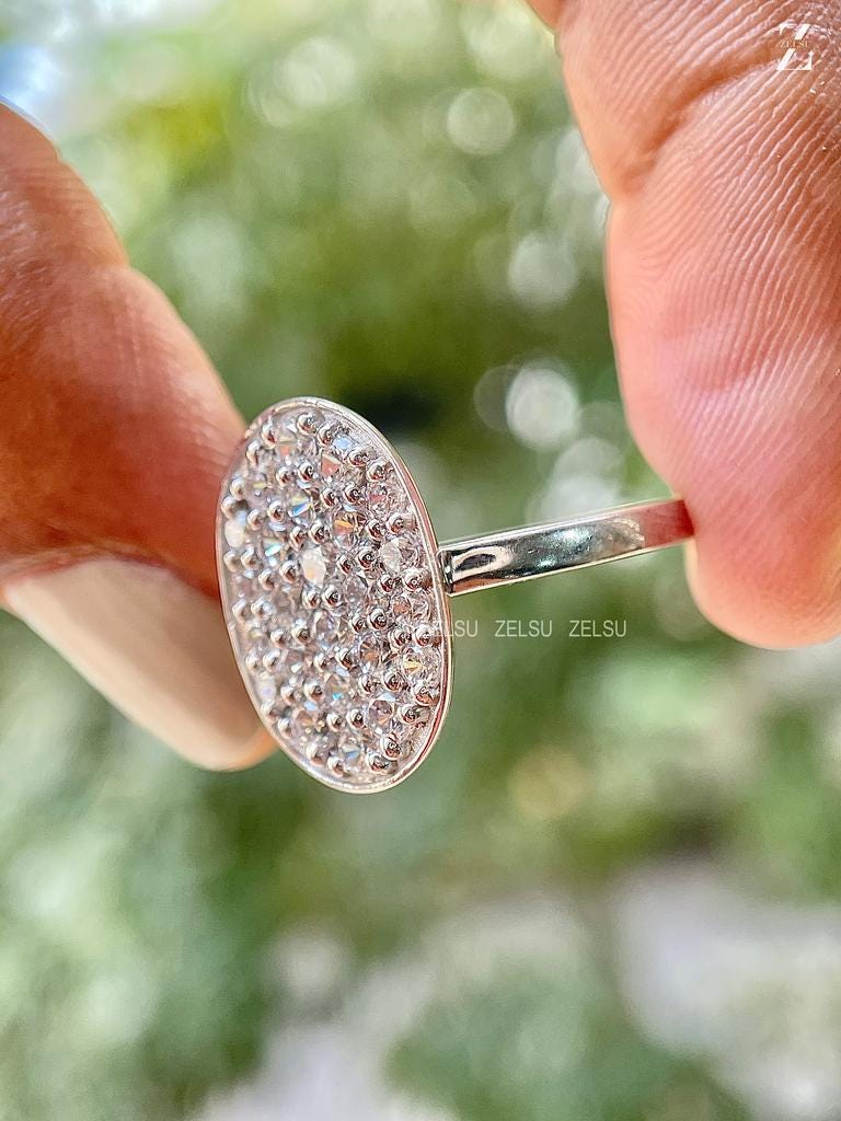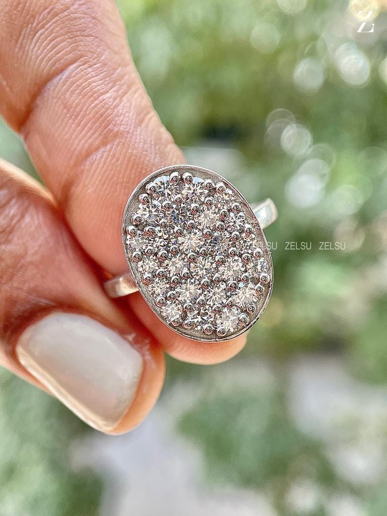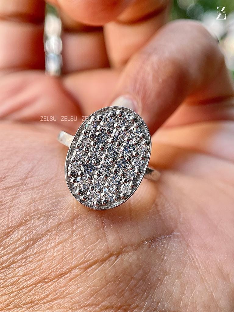 1.40 CT Round Cut EF/VS Lab Grown Diamond Oval Engagement Ring, Bezel Set, Cluster Ring, Celebrity Wedding Ring, Anniversary Gift for Her