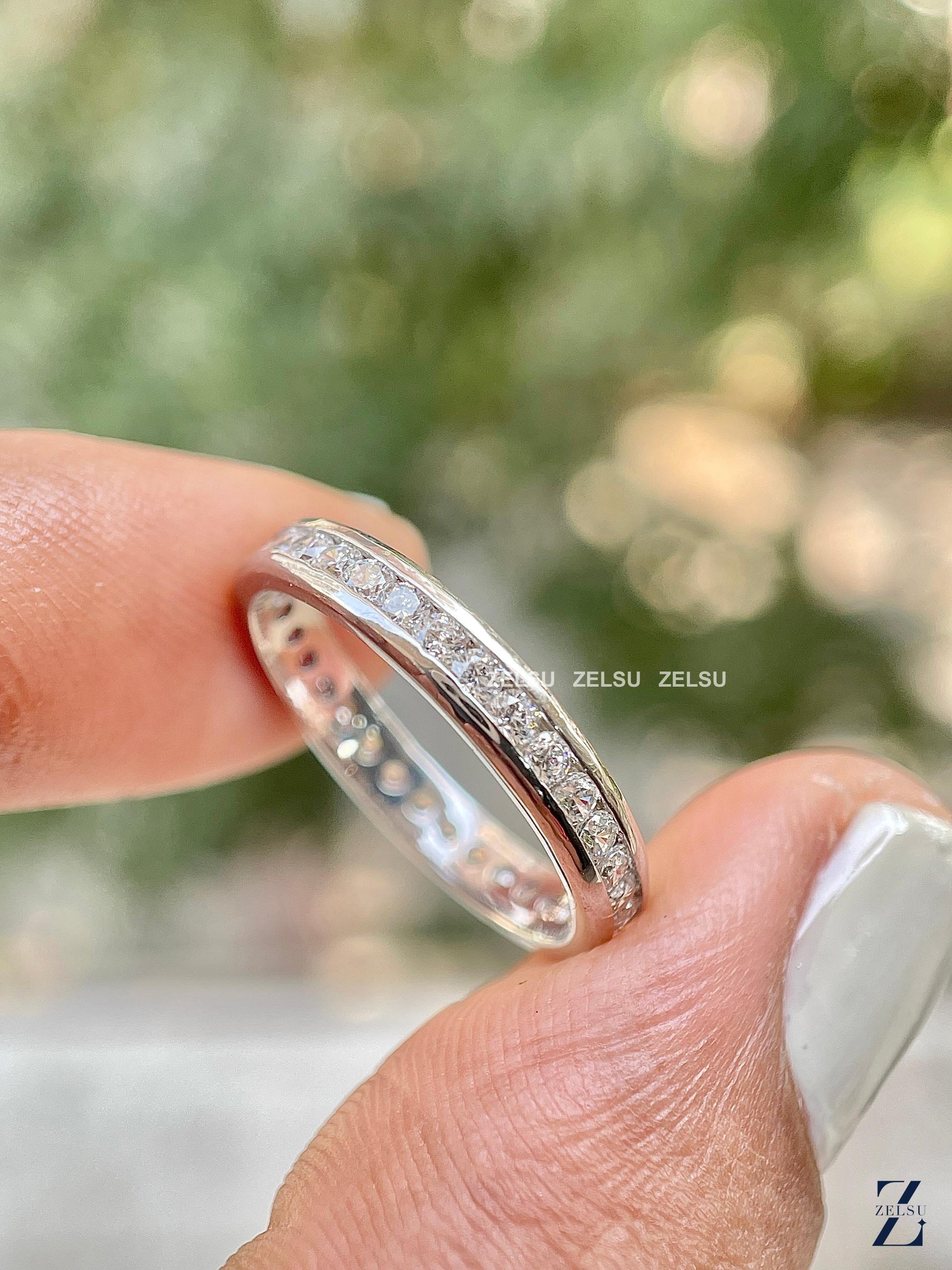 bubble prong band, cvd diamond band, diamond wedding band, eternity band, floating bubble band, full eternity band, lab created diamond, lab grown diamond, matching band, minimalist band, round diamond band, single prong band, Lab-Grown Diamond Jewelry By Zelsu Diamond, Handmade Fine Jewelry for Women, Artisan Jewelry By Zelsu Diamond