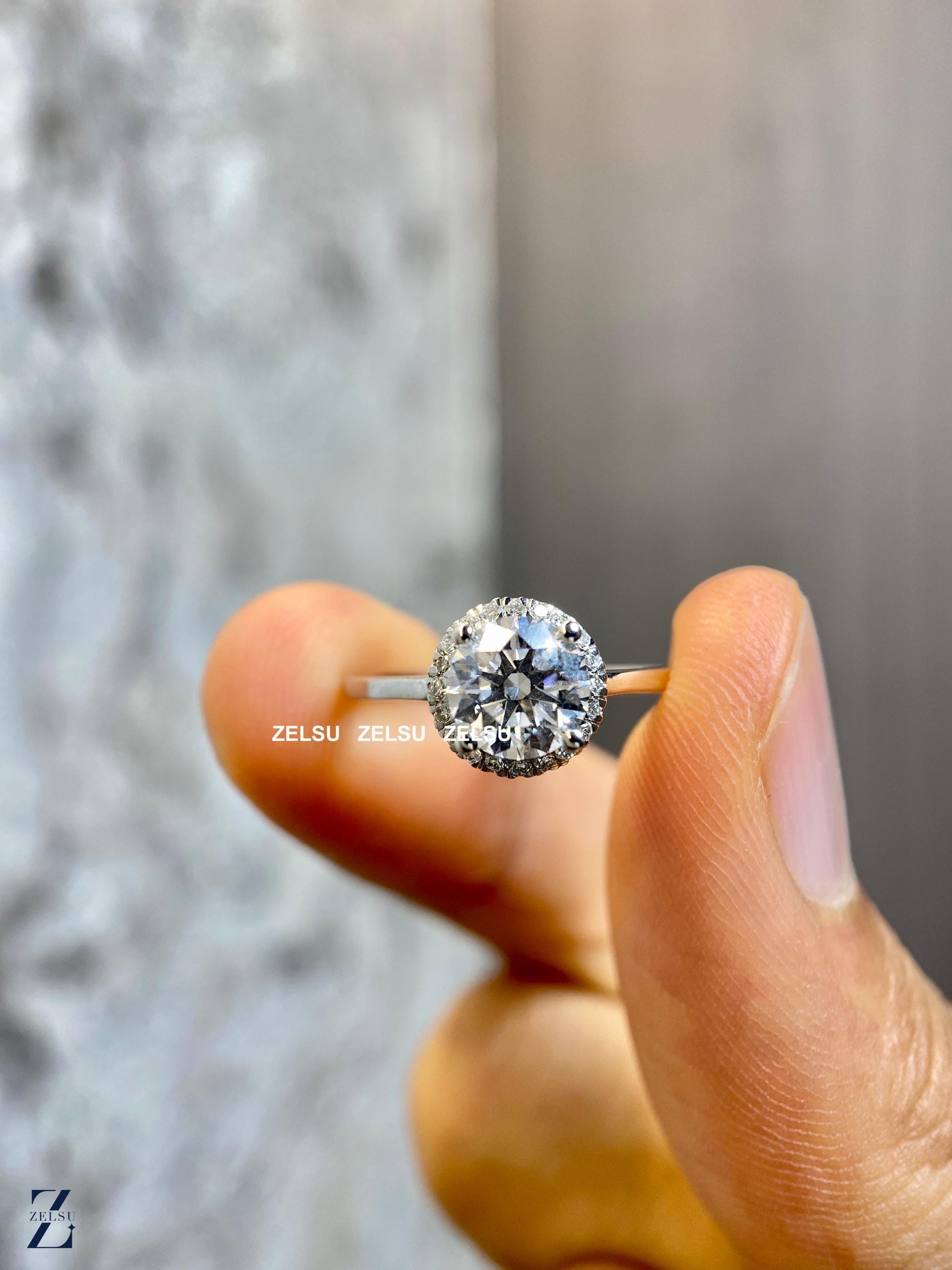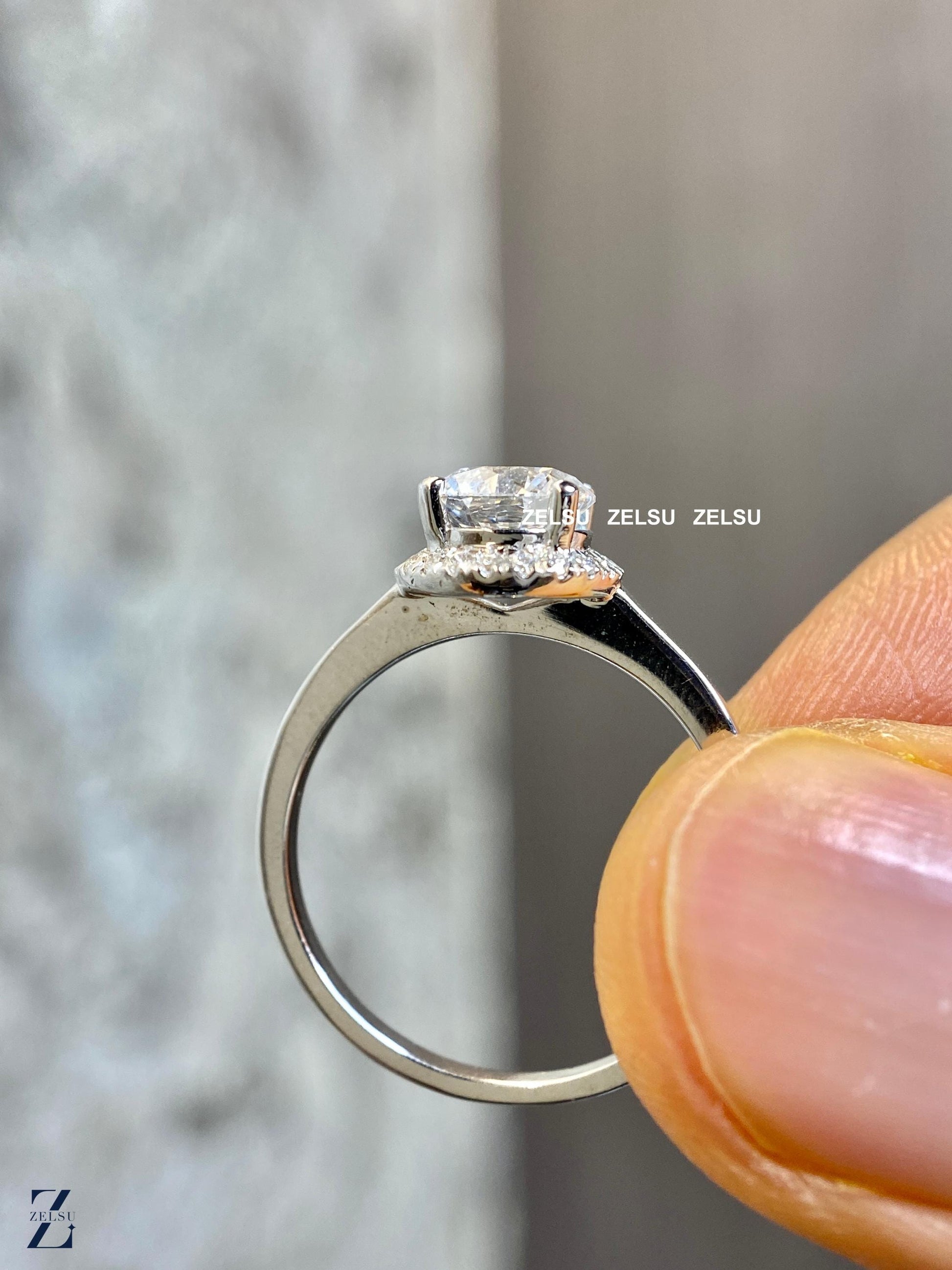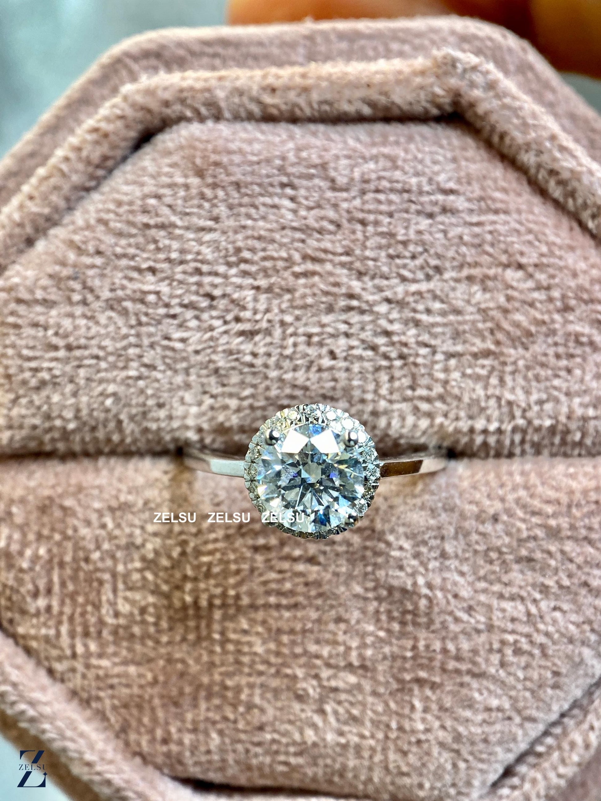 1.0 CT Round Lab Created Diamond Ring, Halo Engagement Ring, EF/VVS Lab Grown Diamond Ring, Anniversary Gifts, Diamond Wedding Ring for Her, halo ring, lab grown diamond, ring for women, anniversary gifts, cathedral setting, cvd diamond, engagement ring, halloween jewelry, wedding ring, lab created diamond, round cut diamond, round diamond ring , Handmade Fine Jewelry for Women, Artisan Jewelry By Zelsu Diamond