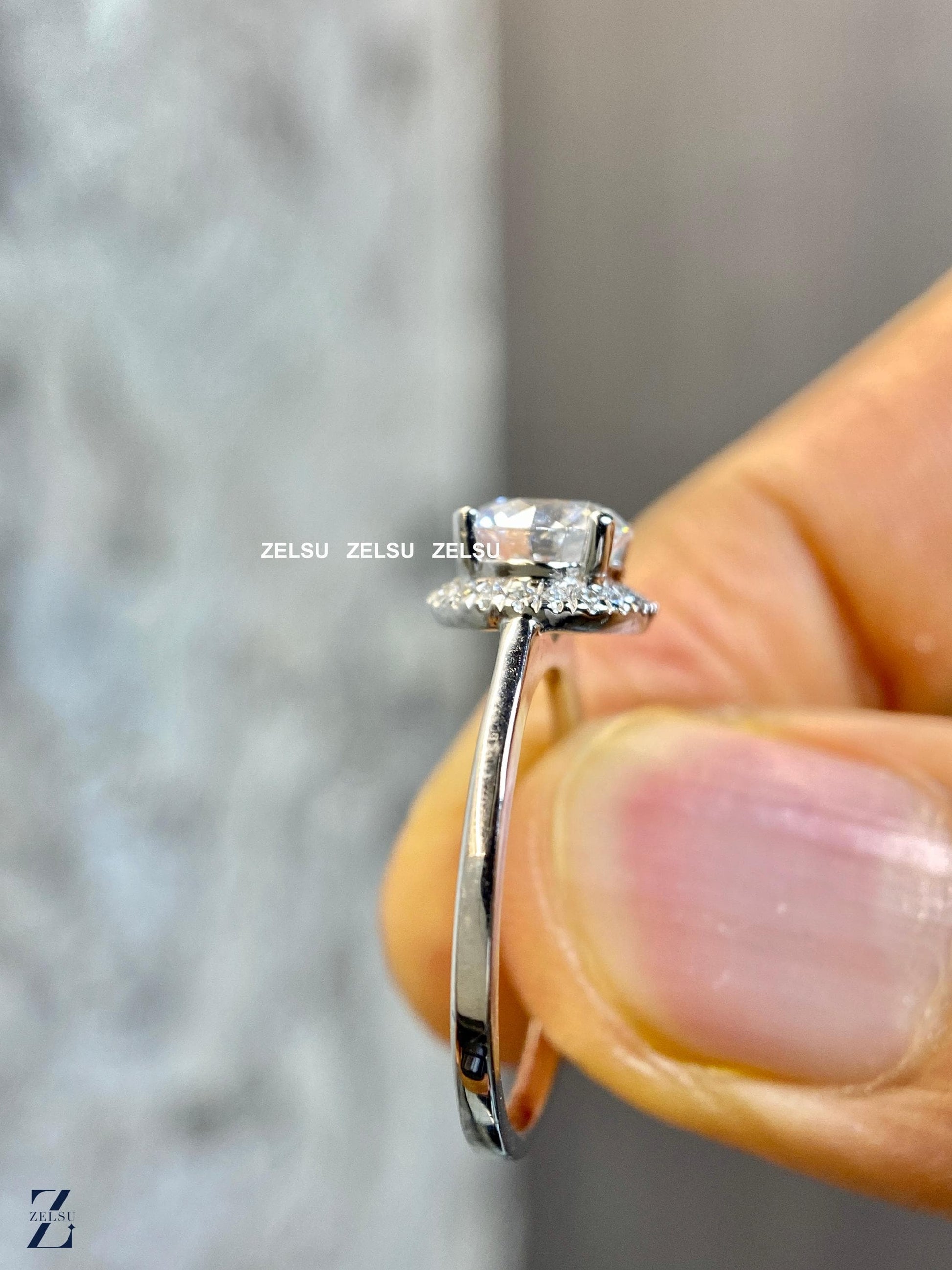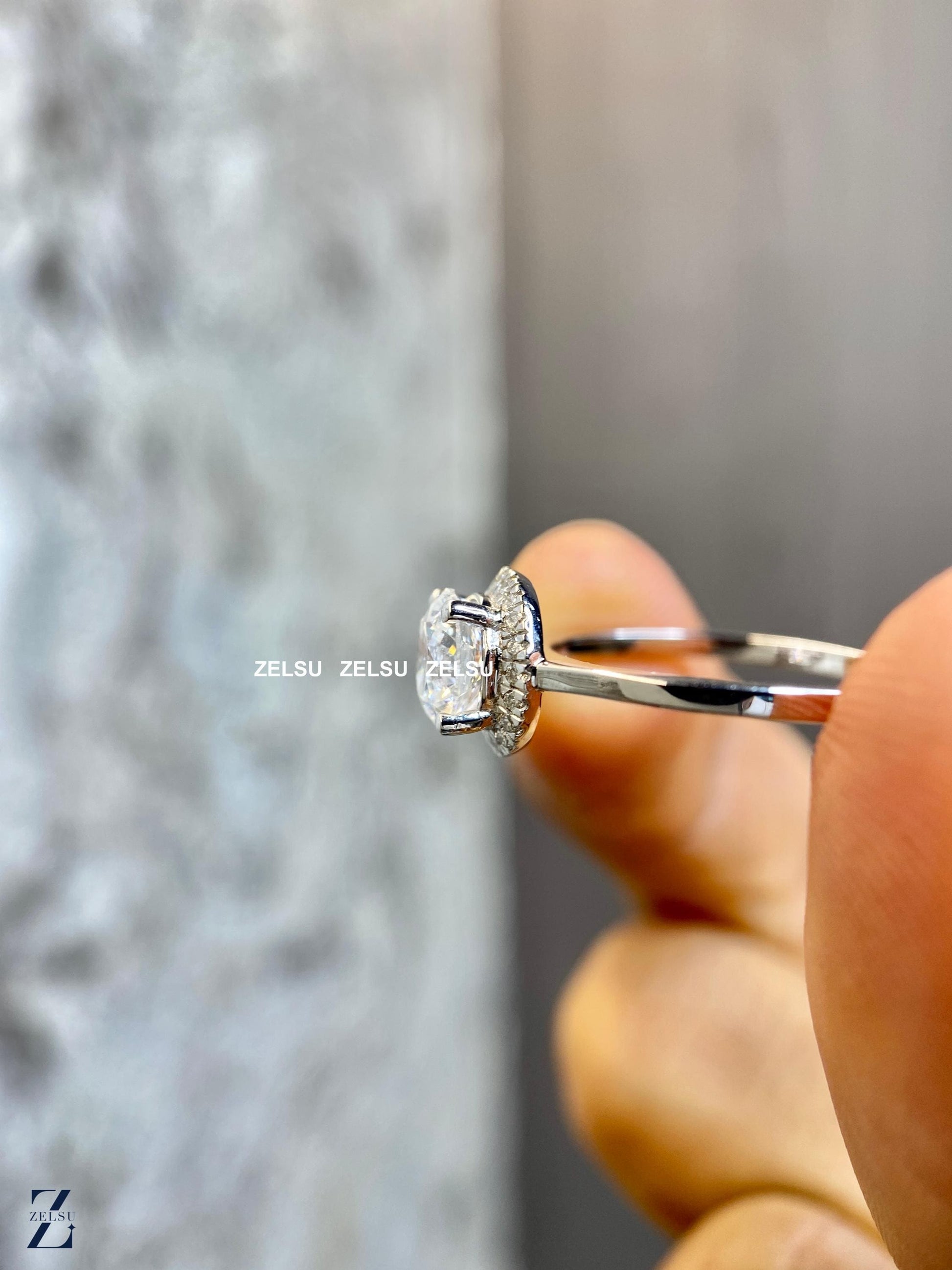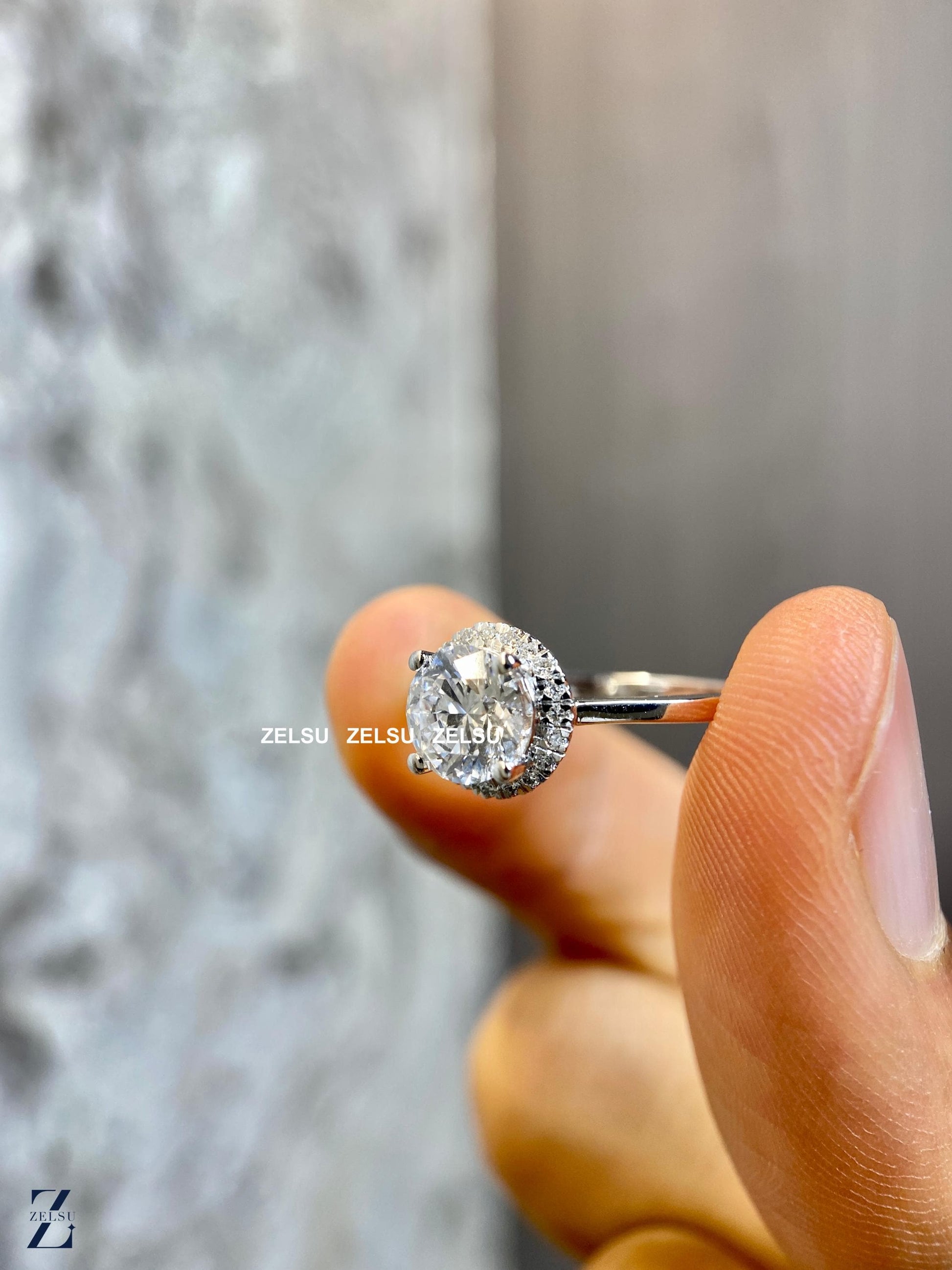 1.0 CT Round Lab Created Diamond Ring, Halo Engagement Ring, EF/VVS Lab Grown Diamond Ring, Anniversary Gifts, Diamond Wedding Ring for Her, halo ring, lab grown diamond, ring for women, anniversary gifts, cathedral setting, cvd diamond, engagement ring, halloween jewelry, wedding ring, lab created diamond, round cut diamond, round diamond ring , Handmade Fine Jewelry for Women, Artisan Jewelry By Zelsu Diamond