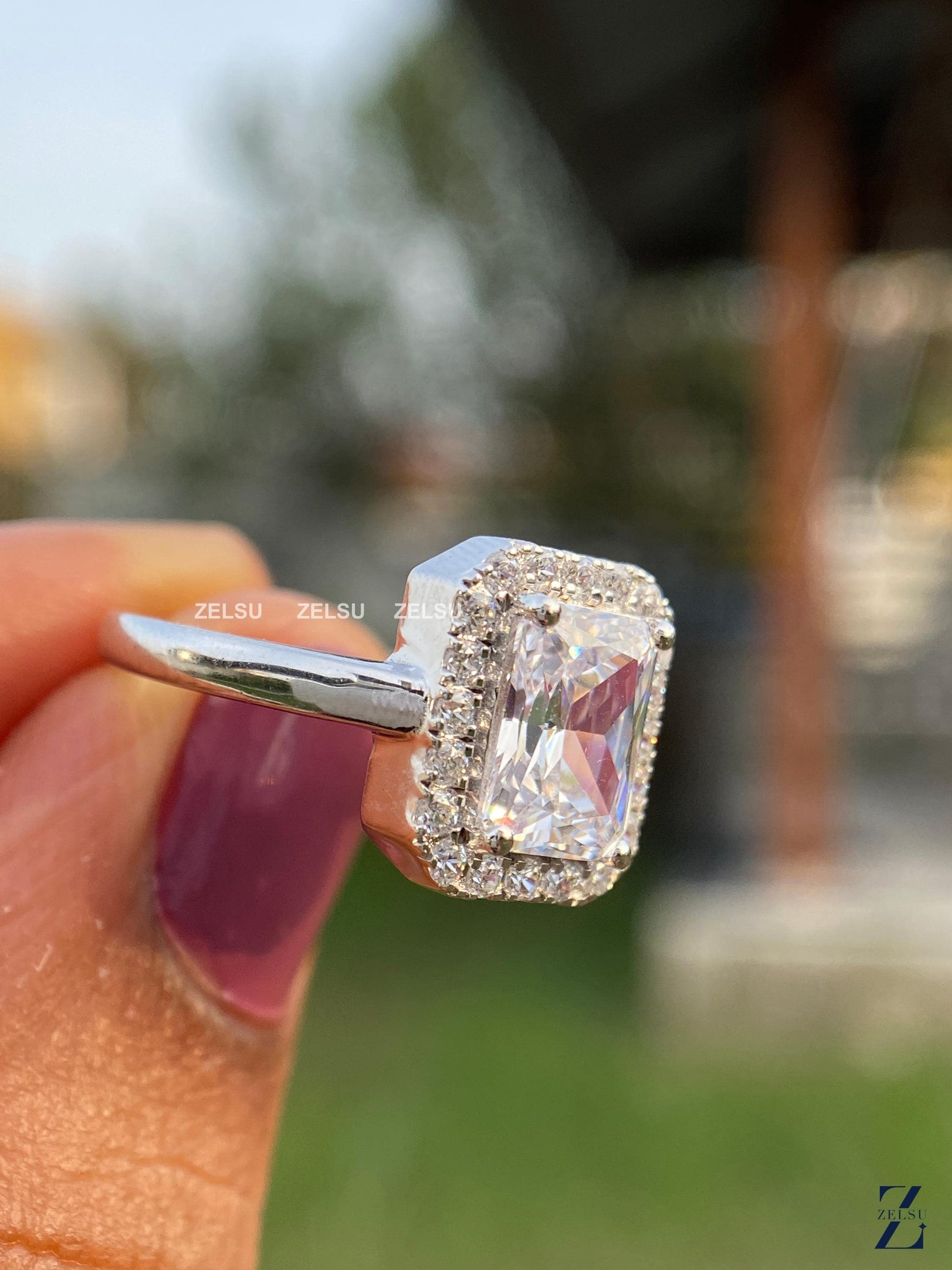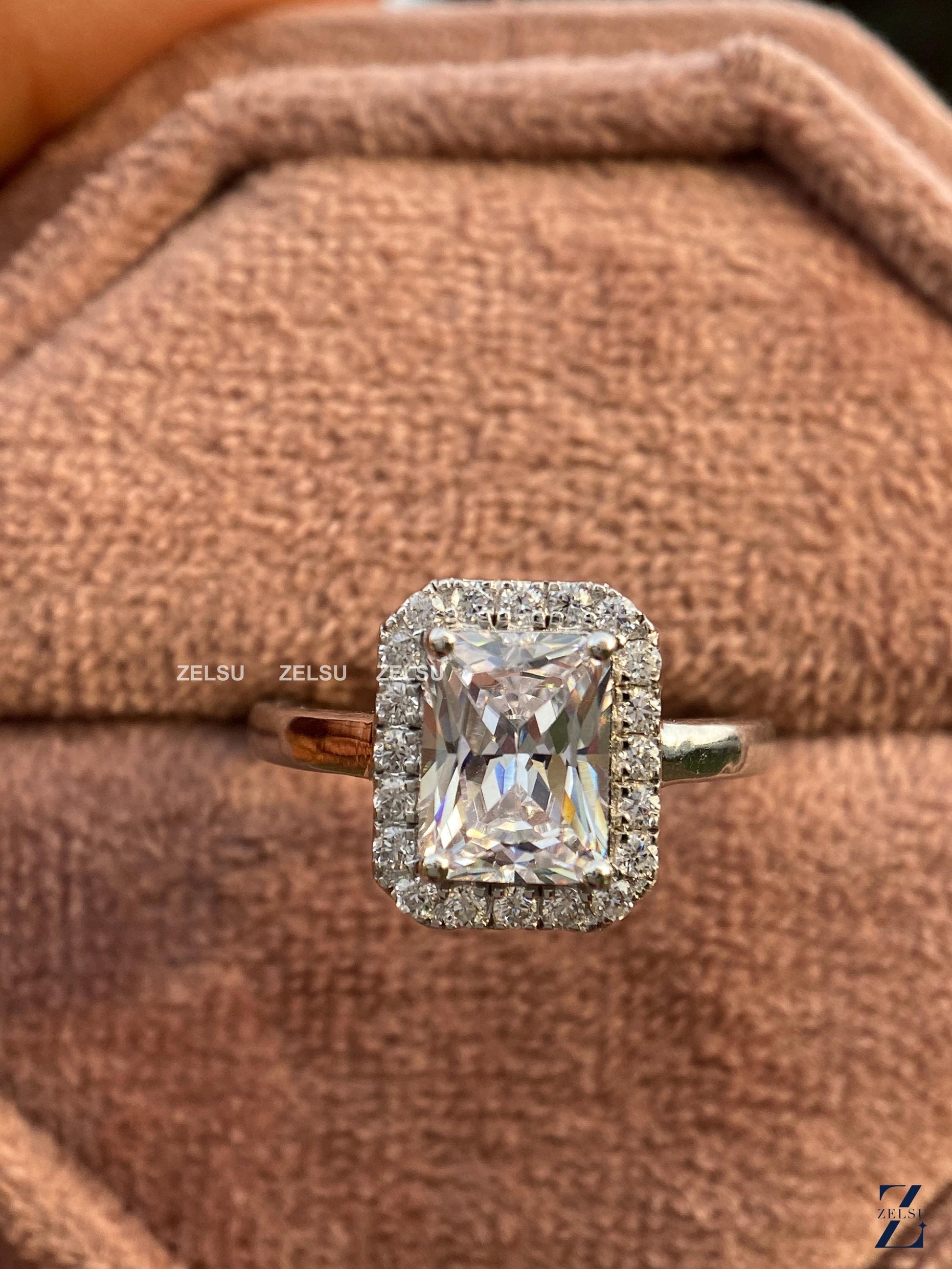 1 CT Radiant Cut Lab Grown Diamond Halo Ring, Elegant Engagement Ring , Halo Setting, Stunning Bridal Jewelry, Ideal Wedding Gift for Her, zelsudiamond, radiant cut ring, lab grown diamond, halo ring, 1ct diamond, engagement ring, bridal jewelry, wedding band, diamond ring, propose ring, anniversary gift, luxury ring, handmade ring,Lab-Grown Diamond Jewelry By Zelsu Diamond, Handmade Fine Jewelry for Women, Artisan Jewelry By Zelsu Diamond